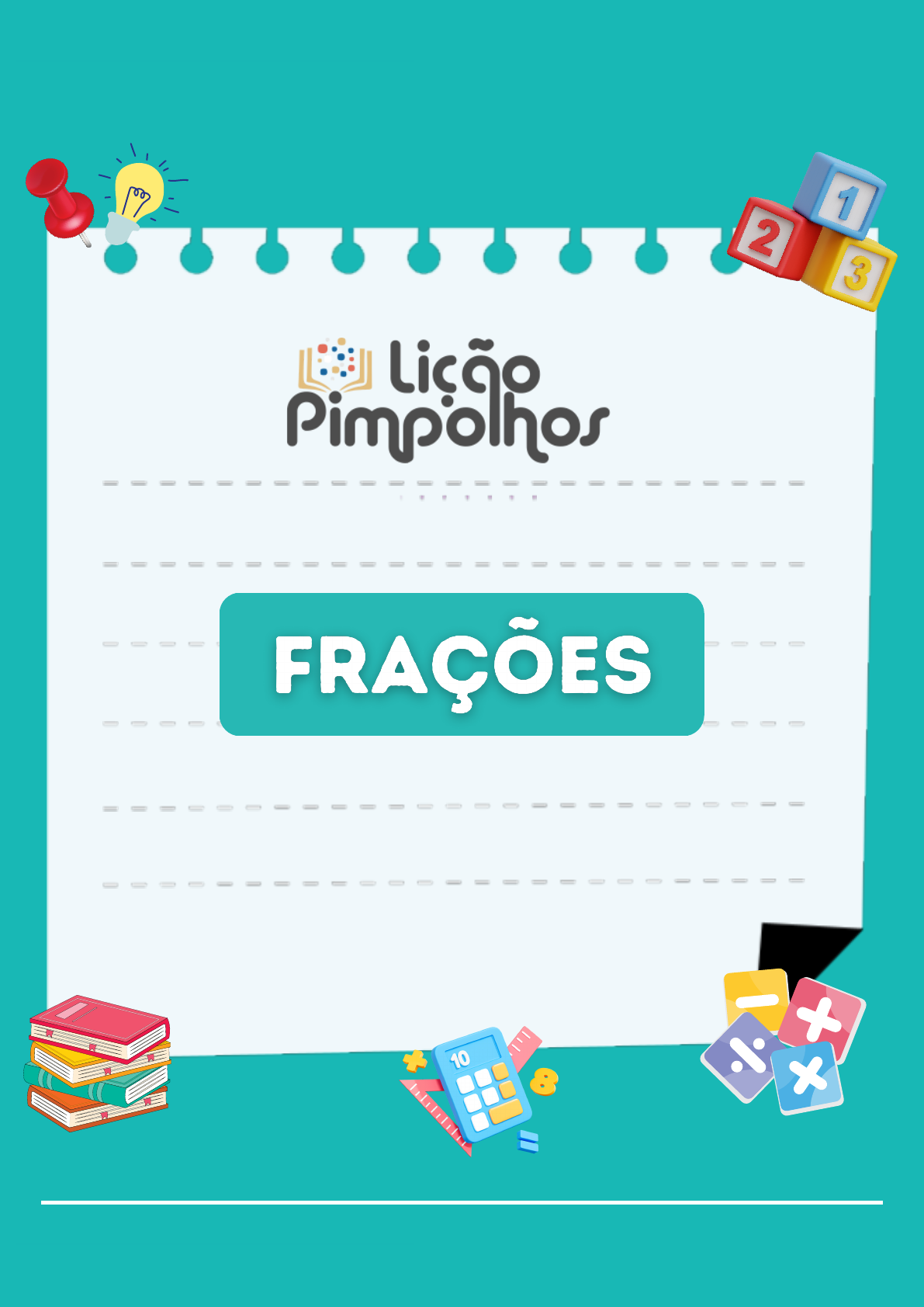 <p>L</p><p>Todos os Direitos Reservados | Copyright © 2024</p><p>Gabarito</p><p>MATEMÁTICA</p><p>LEIA COM ATENÇÃO:</p><p>Todos os direitos autorais pertencem à Sousa Marketing Digital</p><p>LTDA - CNPJ - 46.941.473/0001-94.</p><p>AVISOS E INSTRUÇÕES:</p><p>O que posso fazer:</p><p>O que não posso fazer:</p><p>TERMOS DE USO: --------- Uso pessoal. Você pode baixar/imprimir o</p><p>arquivo quantas vezes desejar para seu uso pessoal.</p><p>(Casa/Escola)</p><p>Os materiais do SMD estão sob a proteção dos Direitos Autorais</p><p>previstos na Lei n° 9.610/1998, tais como estão dispostos nos art. 28 e</p><p>art. 29 da referida lei, sendo expressamente proibida a distribuição</p><p>(inclusive a venda), a transmissão e a reprodução não autorizadas</p><p>pelo autor dos materiais que você está recebendo, podendo acarretar</p><p>o crime previsto no art. 184 do Código Penal.</p><p>Não é permitido revender ou compartilhar este produto.-</p><p>Todas as vendas são finais.</p><p>DIVIRTAM-SE</p><p>Identificar frações em situações</p><p>cotidianas.</p><p>Representar uma parte de um todo</p><p>usando frações unitárias em divisões</p><p>iguais.</p><p>Explorar, calcular e representar frações comuns em</p><p>quantidades discretas e contínuas.</p><p>FRAÇÕES</p><p>Objetivos:</p><p>As crianças serão incentivadas a observar e reconhecer</p><p>frações em contextos do dia a dia, como receitas culinárias e</p><p>divisão de objetos. Serão apresentadas frações unitárias</p><p>paraque possam compreender como uma unidade pode ser</p><p>dividida em partes iguais. Através de</p><p>atividades práticas, os pequenos irão</p><p>explorar frações comuns em diferentes</p><p>contextos e aprender a calculá-las.</p><p>NOME: TURMA:</p><p>PROFESSOR(A): DATA:</p><p>1</p><p>3</p><p>2</p><p>3</p><p>3</p><p>6</p><p>6</p><p>6</p><p>4</p><p>5</p><p>FRAÇÕES</p><p>Exemplos:</p><p>Uma fração é um número usado para representar</p><p>parcelas de um valor inteiro que foi dividido em</p><p>partes iguais.</p><p>3</p><p>8</p><p>NOME: TURMA:</p><p>PROFESSOR(A): DATA:</p><p>vamos praticar?</p><p>Identifique as frações abaixo:</p><p>3</p><p>4</p><p>2</p><p>5</p><p>1</p><p>2</p><p>2</p><p>3</p><p>3</p><p>10</p><p>1</p><p>1</p><p>NOME: TURMA:</p><p>PROFESSOR(A): DATA:</p><p>vamos praticar?</p><p>Identifique as frações abaixo:</p><p>4</p><p>5</p><p>5</p><p>5</p><p>1</p><p>5</p><p>7</p><p>11</p><p>3</p><p>1</p><p>4</p><p>NOME: TURMA:</p><p>PROFESSOR(A): DATA:</p><p>vamos praticar?</p><p>Ligue as frações as suas representações correspondentes.</p><p>2/6</p><p>1/4</p><p>1/6</p><p>2/4</p><p>NOME: TURMA:</p><p>PROFESSOR(A): DATA:</p><p>vamos praticar?</p><p>Ligue as frações as suas representações correspondentes.</p><p>2/7</p><p>5/8</p><p>2/10</p><p>1/9</p><p>NOME: TURMA:</p><p>PROFESSOR(A): DATA:</p><p>1</p><p>4</p><p>4</p><p>8</p><p>3</p><p>4</p><p>1</p><p>2</p><p>6</p><p>4</p><p>6</p><p>8</p><p>2</p><p>6</p><p>vamos praticar?</p><p>Pinte as partes de acordo com cada fração:</p><p>12</p><p>12</p><p>1</p><p>5</p><p>NOME: TURMA:</p><p>PROFESSOR(A): DATA:</p><p>Denominador</p><p>fração</p><p>Denominador Leitura</p><p>O número na parte superior é o numerador, que indica quantas</p><p>partes do todo são consideradas. O número na parte inferior é o</p><p>denominador, que mostra em quantas partes o todo foi dividido.</p><p>Numerador</p><p>2</p><p>3</p><p>4</p><p>5</p><p>6</p><p>7</p><p>8</p><p>9</p><p>10</p><p>11</p><p>12</p><p>100</p><p>meio</p><p>terço</p><p>quarto</p><p>quinto</p><p>sexto</p><p>sétimo</p><p>oitavo</p><p>nono</p><p>décimo</p><p>onze avos</p><p>doze avos</p><p>1000</p><p>centésimo</p><p>milésimo</p><p>NOME: TURMA:</p><p>PROFESSOR(A): DATA:</p><p>fração</p><p>Escreva os números na forma de frações.</p><p>a) Dois terços:</p><p>b) Um nono:</p><p>c) três quartos:</p><p>d) seis oitavos:</p><p>i) Nove doze avos:</p><p>j) Cinco décimos:</p><p>e) Um sexto:</p><p>f) Dois sétimos:</p><p>g) Quatro nonos:</p><p>h) Um meio:</p><p>k) Oito onze avos:</p><p>l) Sete treze avos:</p><p>m) Sete milésimos:</p><p>n) Quatro centésimos:</p><p>o) Um vigésimo:</p><p>p) Três trigésimos:</p><p>2</p><p>3</p><p>1</p><p>9</p><p>3</p><p>4</p><p>6</p><p>8</p><p>1</p><p>6</p><p>2</p><p>7</p><p>4</p><p>9</p><p>9</p><p>12</p><p>5</p><p>10</p><p>8</p><p>11</p><p>7</p><p>13</p><p>7</p><p>1000</p><p>4</p><p>100</p><p>1</p><p>20</p><p>3</p><p>30</p><p>1</p><p>2</p><p>NOME: TURMA:</p><p>c) Qual fração da pizza representa o total de pedaços que</p><p>ambos comeram juntos?</p><p>3</p><p>10</p><p>5</p><p>11</p><p>6</p><p>7</p><p>Lucas comeu = =</p><p>Ambos comeram =</p><p>4</p><p>8</p><p>PROFESSOR(A): DATA:</p><p>fração</p><p>Uma pizza foi dividida em 8 pedaços iguais. Ana comeu três</p><p>pedaços, e Lucas comeu quatro pedaços.</p><p>a) Qual fração da pizza corresponde aos pedaços que Ana</p><p>comeu? E os pedaços que Lucas comeu?</p><p>b) Quantos pedaços de pizza eles comeram ao todo? Faça o</p><p>cálculo.</p><p>d) Utilize um desenho para representar as frações abaixo:</p><p>Ana comeu 3</p><p>8</p><p>= 4</p><p>8</p><p>1</p><p>2</p><p>Ana e Lucas comeram, ao todo, 7 pedaços de pizza.</p><p>3 + 4 = 7 pedaços</p><p>7</p><p>8</p><p>NOME: TURMA:</p><p>b) 7 ovos de uma dúzia?</p><p>c) 4 meses de um ano?</p><p>d) 2 maçãs de meia dúzia?</p><p>e) 14 anos de um século?</p><p>PROFESSOR(A): DATA:</p><p>fração</p><p>1) Qual fração corresponde a:</p><p>a) 5 dias de uma semana?</p><p>2) Escreva como se lê as frações:</p><p>a) 5</p><p>10</p><p>b) 7</p><p>20</p><p>c) 8</p><p>100</p><p>d) 4</p><p>1000</p><p>2</p><p>6</p><p>5</p><p>7</p><p>7</p><p>12</p><p>4</p><p>12</p><p>2</p><p>6</p><p>14</p><p>100</p><p>cinco décimos</p><p>sete vigésimos</p><p>oito centésimos</p><p>quatro milésimos</p><p>TURMA:</p><p>Fração correspondente:</p><p>Numerador:</p><p>Denominador:</p><p>Leitura:</p><p>Fração correspondente:</p><p>Numerador:</p><p>Denominador:</p><p>Leitura:</p><p>Fração