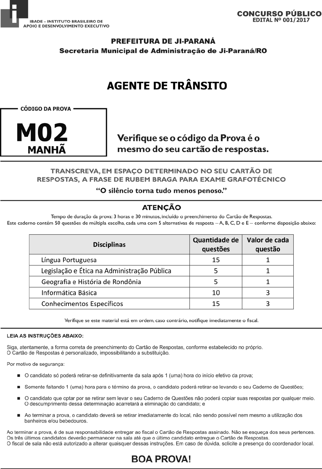 T www.pciconcursos.com.br 02 LÍNGUA PORTUGUESA Questão 01 A) B) C) D) E) Questão 02 A) B) C) D) E) www.pciconcursos.com.br 03 Questão 03 A) B) C) D) E) Questão 04 A) B) C) D) E) Questão 05 A) B) C) D) E) Questão 06 A) B) C) D) E) Questão 07 A) B) C) D) E) Questão 08 A) B) C) D) E) Questão 09 A) B) C) D) E) Questão 10 A) B) C) D) E) www.pciconcursos.com.br 04 Questão 11 A) B) C) D) E) Questão 12 A) B) C) D) E) Questão 13 A) B) C) D) E) Questão 14 A) B) C) D) E) Questão 15 A) B) C) D) E) LEGISLAÇÃO E ÉTICA NA ADMINISTRAÇÃO PÚBLICA Questão 16 A) B) C) D) E) Questão 17 A) B) C) D) E) www.pciconcursos.com.br 05 Questão 18 A) B) C) D) E) Questão 19 A) B) C) D) E) Questão 20 A) B) C) D) E) GEOGRAFIA E HISTÓRIA DE RONDÔNIA Questão 21 A) B) C) D) E) Questão 22 A) B) C) D) E) www.pciconcursos.com.br 06 Questão 23 A) B) C) D) E) Questão 24 A) B) C) D) E) Questão 25 A) B) C) D) E) INFORMÁTICA BÁSICA Questão 26 A) B) C) D) E) Questão 27 A) B) C) D) E) Questão 28 A) B) C) D) E) www.pciconcursos.com.br 07 Questão 29 A) B) C) D) E) Questão 30 A) B) C) D) E) Questão 31 A) B) C) D) E) Questão 32 A) B) C) D) E) Questão 33 A) B) C) D) E) Questão 34 A) B) C) D) E) www.pciconcursos.com.br 08 Questão 35 A) B) C) D) E) CONHECIMENTOS ESPECÍFICOS Questão 36 A) B) C) D) E) Questão 37 A) B) C) D) E) Questão 38 A) B) C) D) E) Questão 39 A) B) C) D) E) Questão 40 A) B) C) D) E) Questão 41 A) B) C) D) E) www.pciconcursos.com.br 09 Questão 42 A) B) C) D) E) Questão 43 A) B) C) D) E) Questão 44 A) B) C) D) E) Questão 45 A) B) C) D) E) Questão 46 A) B) C) D) E) Questão 47 A) B) C) D) E) www.pciconcursos.com.br 10 Questão 48 A) B) C) D) E) Questão 49 A) B) C) D) E) Questão 50 A) B) C) D) E) www.pciconcursos.com.br