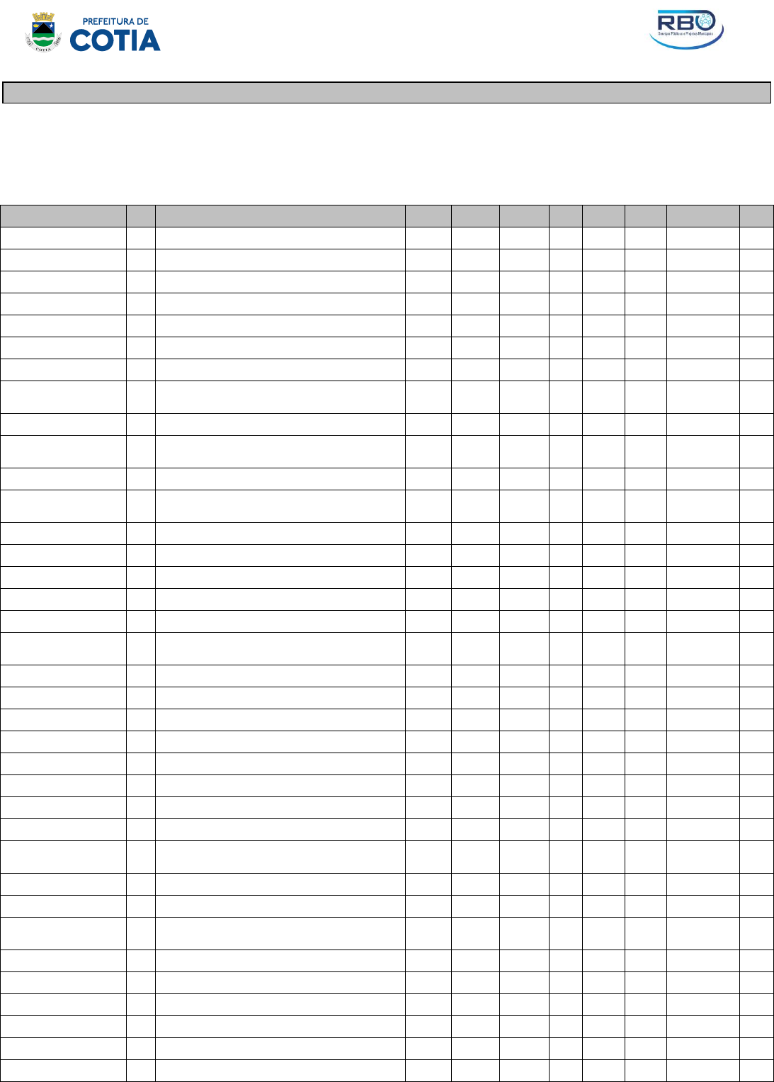 <p>MUNICÍPIO DE COTIA/SP</p><p>CONCURSO PÚBLICO - EDITAL Nº 02/2024</p><p>1</p><p>EDITAL DE CLASSIFICAÇÃO FINAL I – CARGO SECRETÁRIO DE ESCOLA</p><p>O Prefeito do Município de Cotia/SP, usando de suas atribuições legais, após o prazo recursal, torna público o EDITAL DE</p><p>CLASSIFICAÇÃO FINAL I referente ao cargo de Secretário de Escola do Concurso Público n° 02/2024, conforme segue:</p><p>RELAÇÃO DE CANDIDATOS CLASSIFICADOS – AMPLA CONCORRÊNCIA</p><p>CARGO CL NOME DO CANDIDATO INSC NF NPP I CE CG DN DF</p><p>Secretário de Escola 1 ALINE APARECIDA DE ALMEIDA VAMPRE 53427 172,00 100,00 Não 40,00 32,00 08/08/1987 Não</p><p>Secretário de Escola 2 FELIPE COUTINHO CARDOSO 56558 172,00 100,00 Não 40,00 32,00 08/06/2001 Não</p><p>Secretário de Escola 3 JULIS APARECIDA DA SILVA SIMÃO 46495 168,00 100,00 Não 42,00 26,00 19/05/1992 Não</p><p>Secretário de Escola 4 HELENA LIYOKO SOKABE 56920 168,00 100,00 Não 36,00 32,00 05/05/1978 Não</p><p>Secretário de Escola 5 JEFFERSON BORGES DE BRITO 40013 168,00 100,00 Não 36,00 32,00 20/07/1988 Não</p><p>Secretário de Escola 6 ISAIAS LOPES PINTO 47773 165,00 99,00 Não 40,00 26,00 27/09/1982 Não</p><p>Secretário de Escola 7 JULIANA RIBEIRO 55443 165,00 99,00 Não 40,00 26,00 28/10/1986 Não</p><p>Secretário de Escola 8</p><p>VANESSA SCATENA PERPÉTUO DE</p><p>CARVALHO</p><p>44336 164,00 100,00 Não 42,00 22,00 16/06/1980 Não</p><p>Secretário de Escola 9 ISAQUE LIMA DA SILVA NASCIMENTO 41459 164,00 100,00 Não 40,00 24,00 14/08/1995 Não</p><p>Secretário de Escola 10</p><p>ALEXANDRE EXPEDITO DE ALMEIDA</p><p>GONÇALVES</p><p>40428 164,00 100,00 Não 38,00 26,00 06/10/1991 Não</p><p>Secretário de Escola 11 CARLOS ROBERTO DE ALMEIDA JÚNIOR 52773 164,00 100,00 Não 36,00 28,00 30/05/2006 Não</p><p>Secretário de Escola 12</p><p>GABRIELA CRISTINA CASSOLA SANTOS</p><p>GUANAZ</p><p>57841 164,00 100,00 Não 34,00 30,00 01/06/1992 Não</p><p>Secretário de Escola 13 PEDRO GUILHERME SILVA DE LISBOA 49324 162,00 98,00 Não 38,00 26,00 28/12/2005 Não</p><p>Secretário de Escola 14 NICOLAS KUKLIK CAMPANA 51361 162,00 100,00 Não 32,00 30,00 19/03/2005 Não</p><p>Secretário de Escola 15 GUSTAVO RIBEIRO LIMA 44200 160,00 98,00 Não 38,00 24,00 28/11/2005 Não</p><p>Secretário de Escola 16 REGIANE DA SILVA LISBÔA 41616 160,00 100,00 Não 36,00 24,00 19/02/1991 Não</p><p>Secretário de Escola 17 RAQUEL HELOISE DA SILVA SILVEIRA 56321 160,00 100,00 Não 36,00 24,00 03/01/2000 Não</p><p>Secretário de Escola 18 YURI ALEXANDRE BARBOSA RODRIGUES 44383 160,00 100,00 Não 34,00 26,00 04/10/2000 Não</p><p>Secretário de Escola 19 MARIANE FARIA GASPAR 47466 160,00 100,00 Não 32,00 28,00 13/02/2002 Não</p><p>Secretário de Escola 20 AUGUSTO SOUSA SANTOS 52615 159,00 95,00 Não 32,00 32,00 31/12/1986 Não</p><p>Secretário de Escola 21 VITOR GONÇALVES DE ARAUJO 57990 158,00 98,00 Não 32,00 28,00 03/02/2000 Não</p><p>Secretário de Escola 22 FERNANDA GOMES FERREIRA BRAZ 48604 156,00 98,00 Não 34,00 24,00 19/10/1979 Não</p><p>Secretário de Escola 23 NICOLE MARQUEZIM DE OLIVEIRA 40686 156,00 100,00 Não 34,00 22,00 08/09/1994 Não</p><p>Secretário de Escola 24 KAIQUE PAULO LOPES 40574 156,00 100,00 Não 32,00 24,00 14/11/1997 Não</p><p>Secretário de Escola 25 GUSTAVO TOLEDO 46978 152,00 98,00 Não 32,00 22,00 03/10/1996 Não</p><p>Secretário de Escola 26 PATRICIA PEREIRA SILVA 45170 150,00 96,00 Não 32,00 22,00 20/03/1986 Não</p><p>Secretário de Escola 27</p><p>DANIEL RONCAGLIA CORREIA DOS</p><p>SANTOS</p><p>52480 149,00 75,00 Não 42,00 32,00 29/07/1981 Não</p><p>Secretário de Escola 28 LUCIANA MONTEIRO MENDONÇA 44801 140,00 70,00 Não 42,00 28,00 03/06/1981 Não</p><p>Secretário de Escola 29 MARCIA DANIELE DE LIMA TAMBURI 47971 140,00 76,00 Não 40,00 24,00 30/05/1983 Não</p><p>Secretário de Escola 30</p><p>RODRIGO APARECIDO DOS SANTOS</p><p>OLIVEIRA</p><p>54495 139,00 75,00 Não 42,00 22,00 29/09/1982 Não</p><p>Secretário de Escola 31 JOSIANE PEREIRA DE MELO 46831 138,00 74,00 Não 40,00 24,00 19/03/1985 Não</p><p>Secretário de Escola 32 NUNO JOSÉ DE SOUZA WUST 49344 136,00 74,00 Não 38,00 24,00 24/01/1984 Não</p><p>Secretário de Escola 33 GABRIEL GONÇALVES NERIS 46750 136,00 74,00 Não 34,00 28,00 21/01/1997 Não</p><p>Secretário de Escola 34 LUCILEIDE RODRIGUES GOMES TADEI 47610 134,00 74,00 Não 38,00 22,00 14/07/1971 Não</p><p>Secretário de Escola 35 ANGELA CRISTINA SERGIO TEIXEIRA 47832 134,00 74,00 Não 34,00 26,00 22/06/1968 Não</p><p>Secretário de Escola 36 DURVAL DE OLIVEIRA 50730 132,00 72,00 Sim 34,00 26,00 23/02/1953 Não</p><p>MUNICÍPIO DE COTIA/SP</p><p>CONCURSO PÚBLICO - EDITAL Nº 02/2024</p><p>2</p><p>CARGO CL NOME DO CANDIDATO INSC NF NPP I CE CG DN DF</p><p>Secretário de Escola 37 ERIC DE OLIVEIRA GABRIEL 55426 132,00 74,00 Não 34,00 24,00 03/02/1985 Não</p><p>Secretário de Escola 38 LUCIANA KELLY DE MELLO SOARES 46748 130,00 68,00 Não 36,00 26,00 03/08/1993 Não</p><p>Secretário de Escola 39 SAMUEL ALBUQUERQUE DE OLIVEIRA 42425 130,00 72,00 Não 36,00 22,00 10/07/1997 Não</p><p>Secretário de Escola 40 LUCIANO PEREIRA ROCHA 56007 130,00 72,00 Não 34,00 24,00 05/03/1979 Não</p><p>Secretário de Escola 41 TATIANA DE JESUS DOMINGUES TOMITA 52873 130,00 74,00 Não 32,00 24,00 30/11/1988 Não</p><p>Secretário de Escola 42 MONIQUE DOS SANTOS SILVA 41441 129,00 75,00 Não 32,00 22,00 08/03/2002 Não</p><p>Secretário de Escola 43</p><p>KARINA DO NASCIMENTO RAYMUNDO</p><p>SANTOS</p><p>48545 118,00 56,00 Não 34,00 28,00 19/09/1989 Não</p><p>Secretário de Escola 44</p><p>LETICIA MACEDO GONÇALVES DOS</p><p>SANTOS</p><p>50386 106,00 50,00 Não 34,00 22,00 12/09/2001 Não</p><p>NF = Nota Final / NPP = Nota Prova Prática / I = Idoso / CE = Nota de Conhecimentos Específicos/ CG = Nota da Prova Objetiva de</p><p>Conhecimentos Gerais / DN = Data de Nascimento / DF = Pessoa com deficiência</p><p>NÃO HOUVE CANDIDATOS CLASSIFICADOS NA CONCORRÊNCIA DAS VAGAS PARA AS PESSO