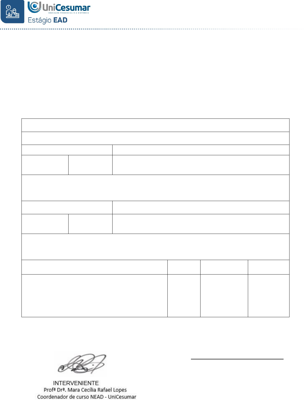 <p>FICHA DE FREQUÊNCIA E AVALIAÇÃO CURSO DE LICENCIATURA EM EDUCAÇÃO FÍSICA</p><p>ESTÁGIO SUPERVISIONADO III: ENSINO MÉDIO</p><p>Acadêmico(a): Inserir o nome do estudante</p><p>Instituição Escolar: Inserir o nome da escola</p><p>RA: inserir o número do RA</p><p>Nome completo Professor(a) Regente: inserir o nome completo do professor regente</p><p>Turno: ( ) matutino ( ) vespertino ( ) noturno</p><p>*Essa ficha deve ser preenchida por você aluno e assinada pelo professor que o acompanhou em seu estágio.</p><p>*As informações devem ser digitadas e a assinatura do professor e diretor à caneta.</p><p>FICHA DE FREQUÊNCIA – OBSERVAÇÃO/PARTICIPAÇÃO (08 HORAS)</p><p>O(A) estudante acima citado(a) cumpriu a Carga Horária total prevista.</p><p>Período</p><p>Ass. Professor regente</p><p>De DD/MM/AA</p><p>A DD/MM/AA</p><p>FICHA DE FREQUÊNCIA – REGÊNCIA (04 HORAS)</p><p>Período</p><p>Ass. professor regente</p><p>De DD/MM/AA</p><p>A DD/MM/AA</p><p>FICHA DE AVALIAÇÃO DO(A) ESTAGIÁRIO(A) – REGÊNCIA</p><p>De modo geral, o(a) aluno(a)</p><p>Não atendeu</p><p>Atendeu Parcialmente</p><p>Atendeu com êxito</p><p>Desempenhou conscientemente as tarefas estabelecidas pelo professor regente para as aulas,</p><p>considerando: organização, comprometimento, planejamento e didática.</p><p>A avaliação do professor deverá ser feito à caneta, marcando um X.</p><p>Assinatura e carimbo do Diretor(a)</p><p>FICHA DE FREQUÊNCIA E AVALIAÇÃO CURSO DE LICENCIATURA EM EDUCAÇÃO FÍSICA</p><p>ESTÁGIO SUPERVISIONADO III: ENSINO FUNDAMENTAL II</p><p>Acadêmico(a): Inserir o nome do estudante</p><p>Instituição Escolar: Inserir o nome da escola</p><p>RA: inserir o número do RA</p><p>Nome completo Professor(a) Regente: inserir o nome completo do professor regente</p><p>Turno: ( ) matutino ( ) vespertino ( ) noturno</p><p>*Essa ficha deve ser preenchida por você aluno e assinada pelo professor que o acompanhou em seu estágio.</p><p>*As informações devem ser digitadas e a assinatura do professor e diretor à caneta.</p><p>FICHA DE FREQUÊNCIA – OBSERVAÇÃO/PARTICIPAÇÃO (08 HORAS)</p><p>O(A) estudante acima citado(a) cumpriu a Carga Horária total prevista.</p><p>Período</p><p>Ass. Professor regente</p><p>De DD/MM/AA</p><p>A DD/MM/AA</p><p>FICHA DE FREQUÊNCIA – REGÊNCIA (04 HORAS)</p><p>Período</p><p>Ass. professor regente</p><p>De DD/MM/AA</p><p>A DD/MM/AA</p><p>FICHA DE AVALIAÇÃO DO(A) ESTAGIÁRIO(A) – REGÊNCIA</p><p>De modo geral, o(a) aluno(a)</p><p>Não atendeu</p><p>Atendeu Parcialmente</p><p>Atendeu com êxito</p><p>Desempenhou conscientemente as tarefas estabelecidas pelo professor regente para as aulas,</p><p>considerando: organização, comprometimento, planejamento e didática.</p><p>A avaliação do professor deverá ser feito à caneta, marcando um X.</p><p>Assinatura e carimbo do Diretor(a)</p><p>image1.jpeg</p><p>image3.jpeg</p><p>image2.jpeg</p>