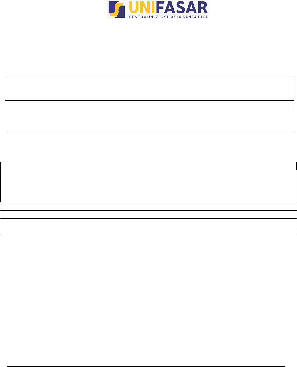 <p>UNIFASAR</p><p>PRÉ PROJETO</p><p>CURSO DE ENFERMAGEM UNIFASAR</p><p>PRE PROJETO - TCC</p><p>CURSO DE ENFERMAGEM</p><p>Ano: Semestre:</p><p>Período: Oitavo Disciplina: TCC I</p><p>P R É - P R O J E T O - P E S Q U I S A</p><p>IDENTIFICAÇÃO</p><p>Tema/Área de interesse da pesquisa; definição genérica do que se pretende pesquisar:</p><p>Disciplina: TCC I</p><p>Professor(a): Daniele Baldino</p><p>Curso: Enfermagem</p><p>Discente:</p><p>1- RESUMO ESTRUTURADO (200 palavras, contendo introdução com a justificativa</p><p>do estudo, objetivo principal, metodologia com o tipo de estudo previsto,</p><p>resultados esperados):</p><p>2 – INTRODUÇÃO (Elaborar 03 parágrafos, com citação indireta – Pesquisar no</p><p>mínimo dois autores diferentes):</p><p>3- PROBLEMA (Elaborar uma pergunta norteadora, ou seja, a sua intenção de</p><p>pesquisa, problematização, tendo em vista o seu objetivo geral - recorte mais</p><p>específico, questão não resolvida e que é objeto de investigação):</p><p>4- HIPÓTESE (Elaborar 04 parágrafos - Pesquisar no mínimo três autores diferentes:</p><p>Resposta provável ao problema formulado, indagações a serem verificadas na</p><p>investigação, afirmações provisórias a respeito de um determinado problema. Para</p><p>formulação da hipótese: deve ter conceitos claros; deve ser específica; não deve se</p><p>basear em valores morais; deve ter como base uma teoria que a sustente):</p><p>5 – OBJETIVOS</p><p>5.1.Geral (Definir um objetivo geral):</p><p>5.2.Específicos: (Definir três objetivos específicos)</p><p>6 – JUSTIFICATIVA E RELEVÂNCIA CIENTÍFICA (Pesquisar no mínimo dois autores</p><p>diferentes: Elaborar dois parágrafos com citação indireta</p><p>justificando/demonstrando a relevância do seu estudo. Qual a relevância? O que</p><p>justifica o estudo?)</p><p>Este estudo se justifica, a partir de (colocar o autor e o ano), ao afirmar que...</p>