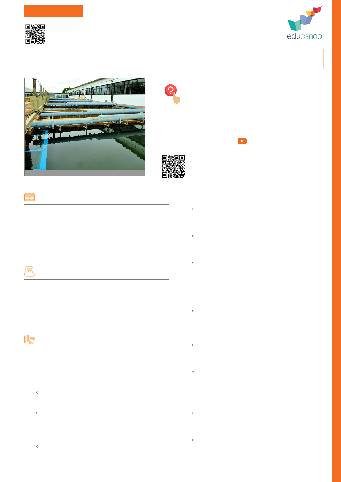 <p>Química</p><p>Q16 - Estação de Tratamento de Água</p><p>© Copyright - Este material foi desenvolvido por Educando by Worldfund, única e exclusivamente para aplicação e uso em conformidade com as regras e regulamentos do Projeto STEM Brasil,</p><p>sendo vedada sua utilização para quaisquer outras finalidades. É proibida toda e qualquer reprodução ou publicação, eletrônica ou impressa, total ou parcial, deste material sem prévia e expressa</p><p>autorização da Educando by Worldfund. Qualquer uso não autorizado será considerado como violação das leis de direitos autorais correspondentes e estará sujeito à aplicação das sanções legais</p><p>cabíveis.</p><p>Welber Merlin Cardoso - 06/09/2021 STEM Brasil www.educando.org</p><p>Fev Mar Abr Mai Jun Jul Ago Set Out Nov Dez</p><p>1 2 3 4 5 6 7 8 9 10 11 12 13 14 15 16 17 18 19 20 21 22 23 24 25 26 27 28 29 30 31</p><p>Estação de tratamento de água. Pixabay/Ag. Brasília</p><p>De onde vem a água que consumimos e</p><p>por quais processos ela passa até</p><p>chegar em nossas casas?</p><p>Profissões Relacionadas</p><p>Químicos; Químicos Ambientais; Engenheiros</p><p>Químicos; Engenheiros Ambientais; Engenheiros</p><p>Sanitaristas.</p><p>Introdução</p><p>Quando nos referimos à situação do saneamento no Brasil,</p><p>precisamos analisar dados de consumo e de perda. Pesquisas</p><p>indicam que a cada 100 litros de água coletada e tratada, 63</p><p>litros são consumidos. O restante (37%) é perdido em ligações</p><p>clandestinas, vazamentos e problemas com a tubulação.</p><p>Quando falamos de água, 82,5% dos brasileiros são atendidos</p><p>com abastecimento de água tratada. Enquanto apenas 48,6%</p><p>dos brasileiros são atendidos por coleta de esgoto.</p><p>Informações Adicionais</p><p>Tão importante quanto o tratamento de água é o tratamento</p><p>do esgoto. Quando não tratado, gera problemas de</p><p>abastecimento, saúde pública e impactos ambientais</p><p>negativos. Estudos mostram que para cada R$1,00 investido</p><p>em tratamento de esgoto, R$4,00 são economizados em</p><p>tratamento de doenças decorrentes de contaminações de</p><p>água.</p><p>Atividade Prática</p><p>Os grupos devem simular o funcionamento de uma estação</p><p>de tratamento de água (ETA) usando garrafas de Polietileno</p><p>tereftalato (PET).</p><p>Etapa I - Preparação da água a ser tratada:</p><p>Coletar porções de terra, folhas, pedras, areia e</p><p>cascalho e misturá-las com água em um recipiente</p><p>de 2 litros e deixar a amostra descansar por 3 minutos;</p><p>Analisar quais compostos estão boiando, quais ficaram</p><p>no fundo do recipiente e a cor da amostra de água.</p><p>Etapa II - Construção da estação de tratamento:</p><p>Recomenda-se que os grupos pesquisem etapas como</p><p>de captação, gradeamento, coagulação e floculação,</p><p>decantação, filtração e cloração com antecedência;</p><p>Cortar a primeira garrafa ao meio e na parte inferior</p><p>colocar, com cuidado, metade da água suja na primeira</p><p>garrafa e adicionar 5 mL de água sanitária e misturar</p><p>com uma colher;</p><p>Na segunda garrafa, cortada ao meio e utilizando a</p><p>parte inferior, instalar um sistema de gradeamento,</p><p>colocando uma tela ou peneira para barrar partículas</p><p>maiores como folhas e grãos de terra;</p><p>Na terceira garrafa, também cortada ao meio e</p><p>utilizando a parte inferior, adicionar a 50 mL de solução</p><p>de sulfato de alumínio Al2(SO4)3 10% (m/m) - 10 g de</p><p>sulfato de alumínio em 100 mL de água. Agitar</p><p>constantemente a água para a floculação. Depois de</p><p>do sulfato de alumínio ser dissolvido (desaparecer na</p><p>água), aguardar cerca de 5 minutos;</p><p>Na quarta garrafa, também cortada ao meio e também</p><p>utilizando a parte inferior, ocorrerá o processo de</p><p>decantação. Pode-se adicionar uma solução 6 mg/L de</p><p>amido de milho nesta etapa para auxiliar a floculação.</p><p>Deixar descansar por mais 5 minutos;</p><p>Após a decantação, coletar a água da região mais</p><p>limpa, ou seja, da superfície do recipiente, despejando</p><p>na próxima garrafa sem que os resíduos do fundo</p><p>passem;</p><p>Antes da finalização do processo, construir um filtro,</p><p>utilizando a parte superior de uma garrafa cortada, e</p><p>colocando algodão, areia, carvão e cascalho para a</p><p>retirada de partículas finas e deixar escoar para a</p><p>útlima garrafa. Caso não haja esses materiais pode-se</p><p>utilizar um filtro de café;</p><p>Na última etapa (pós-cloração), utilizar uma garrafa</p><p>cortada ao meio e usando a parte inferior da</p><p>mesma, adicionar 2 mL de água sanitária e conferir o</p><p>pH;</p><p>Comparar amostras de cada etapa.</p><p>Química</p><p>Q16 - Estação de Tratamento de Água</p><p>© Copyright - Este material foi desenvolvido por Educando by Worldfund, única e exclusivamente para aplicação e uso em conformidade com as regras e regulamentos do Projeto STEM Brasil,</p><p>sendo vedada sua utilização para quaisquer outras finalidades. É proibida toda e qualquer reprodução ou publicação, eletrônica ou impressa, total ou parcial, deste material sem prévia e expressa</p><p>autorização da Educando by Worldfund. Qualquer uso não autorizado será considerado como violação das leis de direitos autorais correspondentes e estará sujeito à aplicação das sanções legais</p><p>cabíveis.</p><p>Welber Merlin Cardoso - 06/09/2021 STEM Brasil www.educando.org</p><p>Habilidades</p><p>Compreender a importância da água para a vida em</p><p>diferentes ambientes em termos de suas propriedades</p><p>químicas, físicas e biológicas, identificando fatos que</p><p>causam perturbações em seu ciclo;</p><p>Avaliar propostas de alcance individual ou coletivo,</p><p>identificando aquelas que visam à preservação e a</p><p>implementação da saúde individual, coletiva ou do</p><p>m