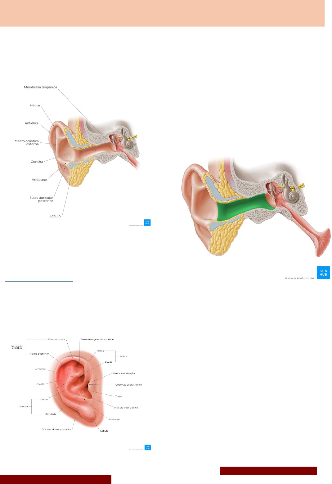 <p>ANATOMIA, FISIOLOGIA E HISTOLOGIA DO SISTEMA AUDITIVO, GUSTATIVO E OLFATIVO</p><p>Sistema Auditivo</p><p>A orelha (ouvido) é dividida em três partes; a orelha externa, a orelha média e a orelha interna.</p><p>Orelha externa:</p><p>Anatomia:</p><p>O pavilhão auditivo, o meato acústico externo e a membrana timpânica são as estruturas que compõem a orelha externa (ouvido externo), cuja única função é conduzir as ondas sonoras para a orelha média (ouvido médio) ,depois de transformá-las em pressão acústica.</p><p>Pavilhão Auricular (Aurícula):</p><p>· As estruturas grandes, carnudas e de formato estranho na lateral de nossas cabeças são chamados de pavilhão auricular.</p><p>· Consiste em cartilagem elástica, pele, ligamentos e por músculos extrínsecos e intrínsecos da orelha.</p><p>· Função: conduzir as ondas sonoras para o meato acústico externo</p><p>Meato acústico externo:</p><p>· Canal que se estende do pavilhão até a membrana timpânica (2-3cm de extensão)</p><p>· Possui glândulas ceruminosas que produzem a cera do ouvido.</p><p>· Seu interior é constituído por ossos pequenos (estribo, bigorna, martelo)</p><p>Membrana timpânica:</p><p>· Localizada na extremidade do meato acústico externo</p><p>· Fina membrana que vibra em resposta às ondas sonoras</p><p>· Transmite as ondas sonoras para a orelha média (ouvido médio)</p><p>A orelha externa possui dois componentes principais: a aurícula e o meato acústico externo.</p><p>Anatomia da orelha média:</p><p>· Separada da orelha externa pela membrana timpânica</p><p>· É uma cavidade preenchida por ar</p><p>· Localização: parte petrosa do osso temporal</p><p>A tuba faringotimpânica (trompa auditiva) conecta a orelha média (ouvido médio) à nasofaringe, enquanto o antro mastóideo a conecta às células mastóideas.</p><p>A orelha média (ouvido médio) contém:</p><p>· os ossículos auditivos (ossículos da orelha) – ESTRIBO, BIGORNA E MARTELO</p><p>· tendões dos músculos estapédio</p><p>·  tensor do tímpano, o nervo da corda do tímpano e o plexo timpânico.</p><p>Anatomia da orelha interna:</p><p>a orelha interna contém o órgão da audição e equilíbrio (órgão vestíbulococlear)</p><p>· consiste em um labirinto ósseo e um labirinto membranoso.</p><p>Labirinto ósseo:</p><p>· forma cavidades ósseas ocas no interior do osso temporal</p><p>Labirinto membranoso:</p><p>· É o sistema interno de ductos e sacos preenchidos por líquido</p><p>Funções da orelha interna:</p><p>· age como um transdutor, transformando a energia mecânica das ondas sonoras em impulsos neurais (parte coclear da orelha interna)</p><p>· tem um importante papel na manutenção do equilíbrio (parte vestibular da orelha interna e canais semicirculares)</p><p>HISTOLOGIA DA ORELHA</p><p>A orelha é um órgão sensorial complexo, responsável pela audição e pelo equilíbrio. Ela é dividida em três partes: a orelha externa, a orelha média e a orelha interna.</p><p>Cóclea:</p><p>· abriga o órgão espiral, um labirinto membranoso complexo e células ciliadas que atuam como receptores auditivos.</p><p>Órgão espiral (de Corti):</p><p>· Função Principal: Órgão receptor da audição, converte estímulos auditivos em impulsos elétricos.</p><p>· Localização: Dentro do ducto coclear do canal coclear, sobre a membrana basilar.</p><p>· Composição:</p><p>· Células Ciliadas:</p><p>· Três fileiras de células ciliadas externas.</p><p>· Uma fileira de células ciliadas internas.</p><p>· Projeções apicais chamadas estereocílios envolvidas pela membrana tectória.</p><p>· Membrana Tectória:</p><p>· Recobre a crista longitudinal (listra de Hensen).</p><p>· Anchora-se às células limitantes internas e externas.</p><p>· Mecanismo de Ação:</p><p>· Movimento da perilinfa desloca a membrana basilar.</p><p>· Deslocamento relativo entre as membranas basilar e tectória curva os estereocílios.</p><p>· Curvatura dos estereocílios despolariza as células ciliadas.</p><p>· Liberação de neurotransmissores (glutamato) transmite informação ao nervo coclear.</p><p>· Células de Suporte:</p><p>· Externas para Internas:</p><p>· Células de Claudius.</p><p>· Células limitantes externas (células de Hensen).</p><p>· Células falangiais externas (células de Deiters).</p><p>· Células dos pilares.</p><p>· Células falangiais internas.</p><p>· Células limitantes internas.</p><p>· Função: Suporte às porções basolaterais das células ciliadas.</p><p>· Estruturas Adicionais:</p><p>· Túnel Interno:</p><p>· Cavidade entre os complexos de células ciliadas externas e internas.</p><p>· Formado por células epiteliais pilares internas e externas arqueadas.</p><p>SISTEMA GUSTATIVO</p><p>Interação com Estímulos:</p><p>· Seres vivos percebem, processam e integram estímulos diariamente.</p><p>· Receptores sensitivos gerais e especiais estão espalhados pelo corpo.</p><p>Funções da Língua:</p><p>· Percepção Gustativa: Detecta sabores na cavidade oral.</p><p>· Mastigação e Deglutição: Auxilia na trituração e passagem do alimento.</p><p>· Fala: Essencial para a articulação das palavras.</p><p>Terminologia Associada:</p><p>· Prefixo/Sufixo “Glosso”: Relacionado à língua.</p><p>· Glossofaríngeo: Músculo que vai da língua à faringe.</p><p>· Hioglosso: Músculo que vai do osso hioide à língua.</p><p>Anatomia:</p><p>· Órgão muscular rosado que se localiza dentro da cavidade oral</p><p>· Se mantém úmida pelos produtos das glândulas salivares maiores e menores – facilita a deglutição, a fala e a percepção gustativa.</p><p>· Tamanho médio: 10 cm de comprimento</p><p>A língua pode ser dividida em três partes:</p><p>· A ponta ou ápice da língua é a sua porção mais anterior e mais móvel.</p><p>· O corpo da língua possui uma superfície dorsal (superior) rugosa que fica em contato com o palato e é repleta de 