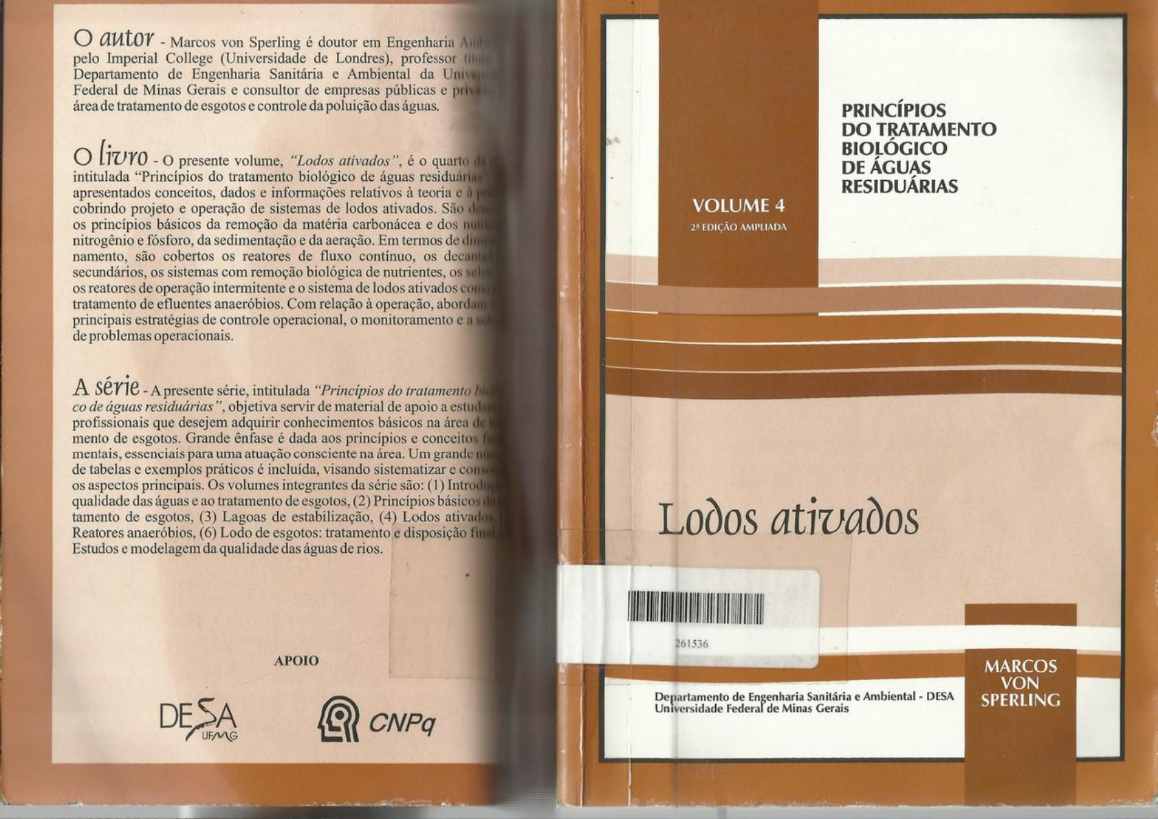 <p>O autor Marcos von Sperling é doutor em Engenharia pelo Imperial College (Universidade de Londres), professor Departamento de Engenharia Sanitária e Ambiental da Federal de Minas Gerais e consultor de empresas públicas e área de tratamento de esgotos e controle da poluição das PRINCÍPIOS DO TRATAMENTO O o presente volume, "Lodos é o quarto BIOLÓGICO DE ÁGUAS intitulada "Princípios do tratamento biológico de águas residuária apresentados conceitos, dados e informações relativos à teoria e RESIDUÁRIAS cobrindo projeto e operação de sistemas de lodos ativados. São VOLUME 4 os princípios básicos da remoção da matéria carbonácea e dos EDIÇÃO AMPLIADA nitrogênio e fósforo, da sedimentação e da aeração. Em termos de di namento, são cobertos os reatores de fluxo contínuo, os secundários, os sistemas com remoção biológica de nutrientes, os os reatores de operação intermitente e o sistema de lodos ativados tratamento de efluentes anaeróbios. Com relação à operação, abordar principais estratégias de controle operacional, o monitoramento e a de problemas operacionais. A série A presente série, intitulada do tratamento de águas objetiva servir de material de apoio a profissionais que desejem adquirir conhecimentos básicos na área de mento de esgotos. Grande ênfase é dada aos princípios e conceitos mentais, essenciais para uma atuação consciente na área. Um grande de tabelas e exemplos práticos é incluída, visando sistematizar e con os aspectos principais. Os volumes integrantes da série são: (1) qualidade das águas e ao tratamento de esgotos, (2) Princípios básicos tamento de esgotos, (3) Lagoas de estabilização, (4) Lodos Lodos ativados Reatores anaeróbios, (6) Lodo de esgotos: tratamento e disposição Estudos e modelagem da qualidade das águas de rios. 261536 APOIO MARCOS VON Departamento de Engenharia Sanitária e Ambiental DESA SPERLING DE Universidade Federal de Minas Gerais CNPq</p><p>Copyright 1997, 2002 by Marcos von Sperling Este livro não pode ser reproduzido por qualquer meio sem autorização escrita do autor. Impressão: Imprensa Universitária da UFMG (31) 3409-5153 FAPEMIG / UFLA / PRPG Impresso no Brasil Edital: 004/2009 edição (1997): 1500 exemplares Processo SHA impressão revisada (2000): 1000 exemplares edição (2002): 1500 exemplares Programa: reimpressão (2005) : 1500 exemplares Ingularia reimpressão (2008) : 1000 exemplares 4" reimpressão (2009) : 1000 exemplares Ficha catalográfica von Sperling, Marcos B928v Lodos ativados / Marcos von Sperling. 2.ed. - Belo Horizonte: De- partamento de Engenharia Sanitária e Ambiental; Universidade Federal de Minas Gerais; 1997. 428 p. - (Princípios do tratamento biológico de águas residuárias; v.4) 1. Águas residuárias - Tratamento biológico. I. Título. CDU: 628 CDD: 620.85 ISBN: 85-7041-129-4 Departamento de Engenharia Sanitária e Ambiental - UFMG Av. Contorno, 842 7° andar Belo Horizonte - MG Como solicitar o livro: Editora UFMG Telefax: (31) 3409-4657 e-mail: - www.editora.ufmg.br</p><p>Prefácio da Segunda Edição Cinco anos já se passaram desde a primeira edição. Neste período, o processo de lodos ativados experimentou avanços na direção de se integrar como pós-tratamento a um sistema composto por reatores anaeróbios. A presente edição busca retratar o conhecimento adquirido até o momento com esta configuração, apresentando, como usual, fundamentos, critérios e exemplos de dimensionamento. Na segunda impres- são do livro (ano 2000), foram também feitas alterações e atualizações nos tópicos de dimensionamento de decantadores secundários e de reatores por batelada. Esta edição revisada, ampliada e atualizada reflete, portanto, os últimos avanços no setor, de interesse direto para a aplicação do processo de lodos ativados em nossas condi- ções. o presente volume passa a contar ainda com um importante ponto de apoio, relacionado ao Volume 6 (Lodo de esgotos: tratamento e disposição final) desta série, lançado em 2001, e de interesse direto e integrado a este volume de lodos ativados. Finalmente, volto a reiterar os mesmos agradecimentos às pessoas e instituições que, desde a primeira edição, vêm contribuindo com a presente obra, particularmente o Departamento de Engenharia Sanitária e Ambiental da UFMG. Marcos von Sperling Maio de 2002 Prefácio da Primeira Edição o presente volume é o quarto da série intitulada "Princípios do tratamento biológico de águas residuárias". A conceituação básica da série foi apresentada no prefácio do primeiro volume. Neste, foi ressaltada a importância dedicada nesta série aos fundamentos e conceitos, por acreditar que, sem eles, o profissional não poderá exercer a prática de uma forma totalmente consciente, independente e crítica. Pelo esforço dedicado aos aspectos didáticos, acredita-se que esta série tenha como primeiro público os estudantes de cursos de extensão e pós-graduação. No entanto, volume de informações apresentado pode ser útil também a profissionais da área de Engenharia Sanitária e Ambiental, que desejarem ser introduzidos nos aspectos básicos do tratamento de esgotos.</p><p>volumes iniciais da série centraram-se nos aspectos introdutórios e funda- SUMÁRIO o tratamento de esgotos. A partir do terceiro volume, passam a ser abor- emas de tratamento específicos. o terceiro volume relaciona-se às lagoas ização. Os volumes subsequentes deverão enfocar os seguintes sistemas ento: reatores anaeróbios, sistemas aeróbios com biofilmes, sistemas de no solo, tratamento primário e tratamento do lodo. CAPÍTULO 1 sente volume enfoca o sistema de tratamento de esgotos pelo processo de Introdução ados. São apresentados conceitos, dados e informações relativos à teoria e à 1. Introdução 11 obrindo projeto e operação. São descritos os princípios básicos da remoção e dos nutrientes nitrogênio e fósforo, da sedimen