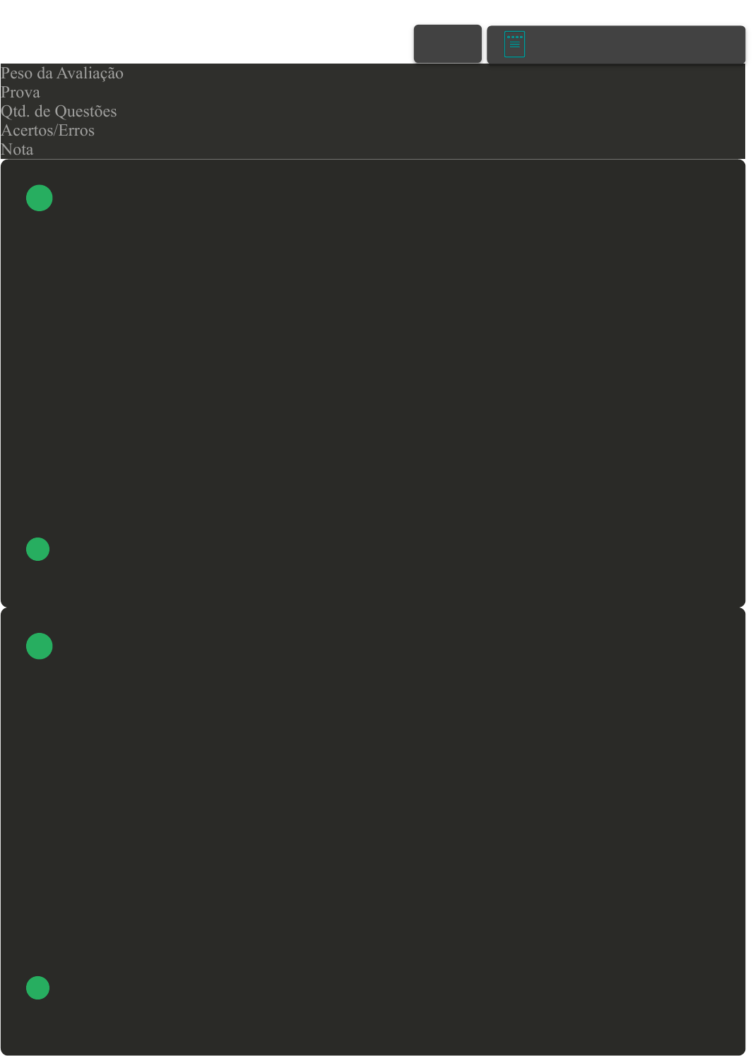 <p>Prova Impressa</p><p>GABARITO | Avaliação I - Individual (Cod.:988512)</p><p>Peso da Avaliação 2,00</p><p>Prova 85595099</p><p>Qtd. de Questões 10</p><p>Acertos/Erros 8/2</p><p>Nota 8,00</p><p>A qualidade dos instrumentos utilizados é fundamental para o desenvolvimento de qualquer programa</p><p>de intervenção.</p><p>Assinale a alternativa CORRETA que justifica o motivo disso:</p><p>A A qualidade do equipamento é necessária para aquecer o mercado.</p><p>B A qualidade de um teste é um aspecto decisivo na sustentabilidade.</p><p>C A qualidade do equipamento, por si só, garante a qualidade do teste.</p><p>D A qualidade de um teste é um aspecto decisivo no processo avaliativo como um todo.</p><p>No que concerne ao teste dos 12 minutos, temos várias questões associadas.</p><p>Sobre esse tema, assinale a alternativa CORRETA:</p><p>A Permite analisar exclusivamente atletas.</p><p>B Permite analisar exclusivamente o IMC dos estudantes.</p><p>C Permite extrair dados como altura, circunferência abdominal e peso.</p><p>D Permite, a partir da distância percorrida, estimar o consumo máximo de oxigênio de um</p><p>indivíduo.</p><p>VOLTAR</p><p>A+ Alterar modo de visualização</p><p>1</p><p>2</p><p>01/10/2024, 12:37 Avaliação I - Individual</p><p>about:blank 1/5</p><p>Para atingir os objetivos das medidas e avaliação na Educação Física é preciso planejar. Essa</p><p>etapa consiste na previsão inteligente e bem calculada de todas as etapas do trabalho, de modo a</p><p>tornar as medidas e avaliações seguras, econômicas e eficientes. Com relação ao planejamento e aos</p><p>objetivos, assinale a alternativa INCORRETA:</p><p>A</p><p>Os objetivos das medidas e da avaliação também são importantes para evitar lesões do</p><p>aluno/atleta, ao escolher corretamente qual será a atividade a ser executada, bem como ajustar</p><p>corretamente os aparelhos utilizados, evitando prejuízos à saúde do indivíduo.</p><p>B O que será avaliado, para que serão utilizadas as informações, quais os meios de avaliação e</p><p>como será feita a análise dos dados são algumas das questões a serem inseridas no planejamento.</p><p>C</p><p>Acompanhar o progresso do indivíduo, auxiliar o indivíduo na escolha de uma atividade física,</p><p>desenvolver pesquisas na área da educação física e desenvolver programas de promoção da saúde</p><p>na escola são elementos que se deve considerar na elaboração dos objetivos.</p><p>D As duas fases iniciais importantes para a realização do planejamento são: conhecer o local e</p><p>estabelecer os objetivos desejados.</p><p>Um dos aspectos mais importantes na prescrição do exercício físico é o controle da intensidade</p><p>adequada do esforço. Para tanto, a utilização de testes físicos apresenta-se como uma ferramenta</p><p>importante para avaliar o condicionamento físico e para fornecer medidas de referência para</p><p>prescrição de exercícios. Por isso, a escolha do teste físico deve ser feita com cautela para que ela</p><p>represente medidas reais. Os testes podem ser realizados tanto em laboratório como em campo, ou</p><p>seja, no local da própria prática desportiva. Nesse sentido, o profissional de Educação Física precisa</p><p>conhecer as vantagens e as desvantagens de cada uma dessas opções para escolher qual teste é o mais</p><p>adequado para atender seus objetivos. Nesse contexto, sobre a principal vantagem do teste realizado</p><p>no ambiente laboratorial, assinale a alternativa CORRETA:</p><p>A Teste realizado no local do próprio treinamento do sujeito.</p><p>B Para realização do teste, é necessário contar com pessoas e equipamentos altamente</p><p>especializados.</p><p>C Maior controle das variáveis analisadas.</p><p>D Permite a avaliação simultânea de vários sujeitos.</p><p>O teste é um instrumento, procedimento ou técnica usada para se obter uma informação. É por meio</p><p>dos testes que são determinados os valores numéricos das medidas.</p><p>De que forma os testes podem ocorrer?</p><p>A Escrita, Protocolo ou Performance.</p><p>B Escrita, Observação ou Performance.</p><p>3</p><p>4</p><p>5</p><p>01/10/2024, 12:37 Avaliação I - Individual</p><p>about:blank 2/5</p><p>C Escrita, Observação ou Exame de sangue.</p><p>D Escrita, Observação ou Classe Social.</p><p>Grau de probabilidade com que os escores produzidos pelo instrumento de medida podem predizer</p><p>estatisticamente o atributo que se pretende avaliar.</p><p>Sobre esse tipo de Teste de Validade, assinale a alternativa CORRETA:</p><p>A Validade preditiva.</p><p>B Validade corrente.</p><p>C Validade de constructo.</p><p>D Validade de conteúdo.</p><p>Durante um programa de intervenção ocorrerão modificações no corpo do aluno e esse processo</p><p>pode ser acompanhado por meio de medidas e avaliações. Para tanto, é necessário que o professor</p><p>tenha conhecimento dos conceitos de testar, medir a avaliar. Sobre o exposto, assinale a alternativa</p><p>CORRETA:</p><p>A Medir é um conceito interpretativo e avaliar é um conceito descritivo.</p><p>B</p><p>O sistema de classificação é útil para verificar se o avaliado atinge os resultados esperados</p><p>"normais", ou seja, se o indivíduo obtém os resultados considerados desejados ou ideais (ou se</p><p>está abaixo desse nível) ou se são os resultados apresentados pela minoria da população.</p><p>C Testar significa verificar o desempenho do indivíduo mediante situações previamente</p><p>organizadas, mas não necessariamente padronizadas.</p><p>D</p><p>A ideia de normalidade é ambígua e se relaciona com parâmetros de avaliação por norma ou</p><p>critérios. Dessa forma, o profissional deverá considerar qual tipo de avaliação (norma ou</p><p>critérios) utilizará durante o programa de intervenções que coordena.</p><p>O entendimento da aplicação das medidas e avaliações é de suma importância para o</p><p>profissional de Educação 