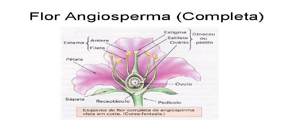 <p>AS ANGIOSPERMAS</p><p>- Representam 70% de todas as espécies.</p><p>- Grande sucesso reprodutivo e adaptativo.</p><p>- São vasculares. Possuem raiz, caule, folhas, FLORES, sementes e FRUTOS.</p><p>- Não necessita de água para que ocorra a fecundação.</p><p>- Suas flores produzem o néctar, uma solução açucarada que atrai animais como</p><p>abelhas, borboletas, formigas, pássaros, morcegos e outros que acabam polinizando-</p><p>as.</p><p>- Da união dos gametas, forma-se o embrião, dentro de uma semente.</p><p>- Após a fecundação, o ovário da flor se desenvolve e transforma em fruto com a</p><p>semente dentro. A semente nutre e protege o embrião.</p><p>- É o grupo de vegetal mais recente e mais abundante da Terra. Esse sucesso da</p><p>dispersão se deve ao fato de que todas as flores possuem ovários, ou seja, produzem</p><p>frutos, uma estrutura que além de proteger a semente, serve como elemento de</p><p>atração para os animais dispersores de semente.</p><p>Flores</p><p>As flores são estruturas responsáveis pela reprodução sexuada nas angiospermas.</p><p>É nelas que ocorrem a fecundação. As partes constituintes de uma flor são:</p><p>a) Pedúnculo -> haste de sustentação que fixa a flor no ramo do caule.</p><p>b) Receptáculo floral -> fica acima do pedúnculo de onde saem as peças florais.</p><p>c) Sépalas -> são folhas modificadas e geralmente verdes. O conjunto de sépalas</p><p>formam o CÁLICE.</p><p>d) Pétalas -> também são folhas modificadas e, muitas vezes, coloridas. O</p><p>conjunto de pétalas formam a COROLA.</p><p>e) Carpelos -> são folhas modificadas formadas basicamente por três estruturas:</p><p>• Estigma: situado na parte superior do carpelo. Em geral, possui um</p><p>liquido pegajoso que contribui para a fixação de grãos de pólen que ali</p><p>chegam transportados por animais ou pelo vento</p><p>• Estilete: tubo que liga o estigma ao ovário.</p><p>• Ovário: parte dilatada e geralmente ovalada que fica na base do carpelo.</p><p>É nessa estrutura que se formam os óvulos.</p><p>f) Estames -> composto pelo filete e antera.</p><p>• Filete: haste que sustenta as anteras.</p><p>• Anteras: onde se formam milhares de grãos de pólen.</p><p>O conjunto de carpelos forma a parte feminina da flor, denominada GINECEU,</p><p>já o conjunto dos estames formam a parte masculina da flor, denominada</p><p>ANDROCEU.</p><p>Reprodução sexuada</p><p>Quando a flor está completamente desenvolvida, no interior das anteras dos</p><p>estames formam-se milhares de grãos de pólen. Ao ser depositado no estigma de um</p><p>carpelo, um grão de pólen pode germinar e emitir o tubo polínico. Esse tubo cresce</p><p>penetrando no estilete do carpelo até alcançar o ovário da flor, levando os gametas</p><p>masculinos ate os óvulos. Cada ovulo maduro (dois ou mais), abriga uma oosfera, que</p><p>é o gameta feminino da planta.</p>