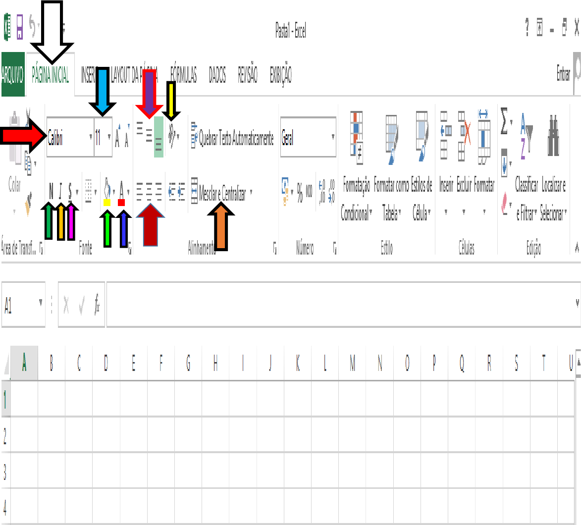 Excel Altera a posição da palavra no sentido horizontal ou diagonal Altera o estilo da letra (fonte) Altera o tamanho da letra Coloca o estilo sublinhado na palavra deixando a letra em destaque com uma linha em baixo Coloca o estilo itálico na palavra deixando a letra em destaque com efeito inclinado Coloca o estilo negrito na palavra deixando a letra em destaque com a cor mais forte cColoca o efeito Ferramenta que faz a união das células, ou seja transformar várias células em uma só. (MESCLAR). Ferramenta para colorir as células. Posiciona o texto na célula MESCLAR 1ª S E L E Ç Ã O 2ª M E S C L A R Mesclar: consiste em unir células em uma coluna e ainda centralizar o texto, para isso precisamos selecionar as células que desejamos unir como é mostrado no exemplo ao lado. DEPOIS DE MESCLAR COMO COLORIR AS CELULAS Selecione os dados da tabela; Clique em cor preenchimento; As linhas do Excel são imaginárias, ou seja, se for imprimir uma planilha não aparecerá as divisórias das linhas e das colunas a não ser que colocamos um contorno entre elas da seguinte maneira. · Primeiramente vamos selecionar a planilha; Clique em bordas e escolha qual tipo de contorno você queira, lembrando se quiser personalizar borda clique em mais bordas e terá opção de alterar o estilo do contorno, cor da linha e espessura. / OPÇÃO PARA SELECIONAR O CONTORNO EXTERNO DA BORDA COR DA LINHA OPÇÃO PARA SELECIONAR O CONTORNO INTERNO DA BORDA ESTILO DE LINHA Para alterar o estilo, tamanho, cor e posição da letra selecione a tabela vá até a página inicial e altere o estilo da letra, tamanho, cor e posição como mostra o exemplo da primeira página. Como deixar letras de uma tabela na diagonal Primeiramente selecione as células da tabela 2ª 1ª SELECIONE Digite a palavra e depois selecione a célula, clique em orientação (inclinar texto no sentido anti-horário) como é mostrado pela seta vermelha feito isso clique em centralizar como é mostrado pela seta amarela.S E L E Ç Ã O FÓRMULAS Como calcular o preço total 1. Selecione a célula onde vai ficar localizado o resultado, no caso a célula E3 2. Coloque o sinal de igual (=) porque esse símbolo tem a função de receber formulas. 3. Selecione a célula que corresponde a coluna quantidade (C3) 4. Coloque o símbolo asterisco porque ele corresponde ao sinal de multiplicação. (*) 5. Selecione a célula que corresponde a coluna preço unitário. (D3) 6. Para calcular o total utilize a função soma e selecione as células da coluna. Nesta tabela está pedindo para calcular a diferença entre os meses. Acompanhe a explicação: Primeiramente selecione a célula que você quer que apareça o resultado no caso a célula E3 e coloque o sinal de igual (=) Agora selecione a célula que corresponde ao mês e lembre se: sempre que for fazer uma subtração selecione a célula que corresponde o maior valor, por exemplo selecione a célula C3 Coloque o sinal de subtração (-) Selecione a célula que corresponde o outro mês, por exemplo selecione a célula D3 e pressione o ENTER para fazer o cálculo. Para calcular o gasto total selecione a célula F3 e insere a função media Selecione os meses de agosto e setembro e clique em ok Nessa tabela está pedindo para calcular o INSS que equivale a 8% e o salário líquido de cada funcionário. Para calcular o INSS coloque o sinal de igual (=) na célula que você quer obter o resultado, por exemplo a célula D4 Selecione a célula que corresponde o salário bruto, por exemplo D4 coloque o sinal de multiplicação que é o asterisco (*) e 8%, pressione o ENTER para calcular. Para calcular o salário liquido selecione a célula que você quer obter o resultado coloque o sinal de igual (=) E4 Selecione a célula que corresponde a coluna salário bruto C4 coloque o sinal de subtração (-) e selecione a célula que corresponde a coluna INSS, lembre se sempre pegue o maior valor e subtrai pelo menor valor para dar número positivo. FUNÇÃO SE O “SE” é uma função comparativa, ou seja, serve para comparar um ou mais valores e retornar resultados de acordo com o que foi descrito na fórmula. Exemplo: SE o número for maior que 6 o resultado será “APROVADO”. Nesta tabela está pedindo para analisar se o aluno está aprovado ou reprovado através da média que ele obteve. · Para calcular o total faça a soma das suas notas · Para calcular a diferença faça nota 1 – nota 2 e lembre se sempre selecione o maior valor primeiro para que o resultado não dá negativo. · Para calcular a média utilize a função média e selecione as duas notas. · E pra descobrir o resultado para ver se o aluno está aprovado ou reprovado utilize a função SE como mostra o exemplo abaixo. Teste lógico: clique na média (H3) coloque o sinal de maior (>) e o sinal de igual (=) Valor se verdadeiro: digite a primeira opção (aprovado) Valor se falso: digite a segunda opção (reprovado) FUNÇÃO MÁXIMO E MÍNIMO A função máximo tem o objetivo de analisar células de colunas para lhe dizer qual é o maior valor. No caso dessa tabela está pedindo para analisar qual é maior quantidade de importação, primeiramente teremos que selecionar a célula que desejamos ter resultado, como por exemplo a célula C11 e inserir a função Máx. Agora selecione a coluna importação e pressione o ENTER, exceto o total E para saber qual é menor quantidade de exportação é o mesmo procedimento, basta selecionar a função Min. GRÁFICOS GRÁFICO DE BARRA GRÁFICO DE COLUNAS GRÁFICO DE ÁREA GRÁFICO DE LINHAS GRÁFICO DE COMBINAÇÃO GRÁFICO DE RADAR GRÁFICO DE DISPERSÃO GRÁFICO DE PIZZA Existem vários tipos de gráficos e todos possui o mesmo método de ser inserido. Exemplo: Primeiramente selecione os dados da tabela Agora clique no modelo de gráfico desejado Para modificar a cor das colunas dê dois cliques na coluna desejada e automaticamente aparecerá uma janela na lateral lhe oferecendo as opções d