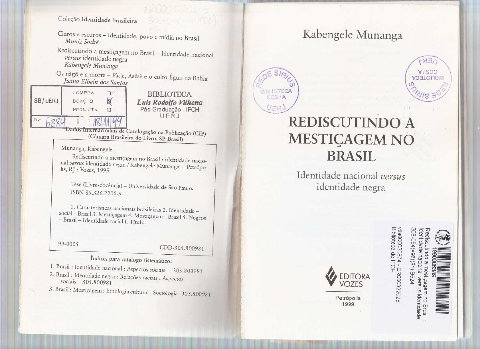 <p>Coleção Identidade brasileira</p><p>Claros e escuros - Identidade, povo e mídia no Brasil</p><p>Muniz Sodré</p><p>Rediscutindo a mestiçagem no Brasil - Identidade nacional</p><p>versus identidade negra</p><p>Kabengele Munanga</p><p>Os nàgã e a morte - Pàde, Àsese e o culto Égun na Bahia</p><p>Juana Elbein dos Santos</p><p>Tese (Livre-docência) - Universidade de São Paulo.</p><p>ISBN 85.326.2208-9</p><p>~4'.~::~"",:-,,,,..</p><p>r:""cl::J1/ "\</p><p>\</p><p>V I S,:)'J.~ í</p><p>~;V'J310118i~»</p><p>-? :-:,>J "</p><p>.-./,y~</p><p>Kabengele Munanga</p><p>Identidade nacionalversus</p><p>identidade negra</p><p>...</p><p>REDISCUTINDO-A</p><p>MESTIÇAGEM NO</p><p>BRASIL</p><p>BIBLIOTECA</p><p>Luis Rodolfo Vilhena</p><p>Pós-Graduação - IFCH</p><p>U E R J</p><p>~·.OMP;:'~À</p><p>PER~,,"UT"</p><p>DOAÇ o</p><p>Munanga, Kabengele</p><p>Rediscutindo a mestiçagem no Brasil: identidade nacio-</p><p>nal versus identidade negraI Kabengele Munanga. _ Petrópo-lis, R] : Vozes, 1999.</p><p>5B/ UERJ</p><p>1. Características nacionais brasileiras 2. Identidade _</p><p>social- Brasil 3. Mestiçagem 4. Mestiçagem - Brasil 5. Negros</p><p>- Brasil - Identidade racial I. Título.</p><p>Índices para catálogo sistemático:</p><p>1. Brasil: Identidade nacional: Aspectos sociais 305.800981</p><p>2. Brasil: Identidade negra: Relações raciais: AspectossocIais 305.800981</p><p>3. Brasil: Mestiçagem : Etnologia cultural: Sociologia 305.1j()()()HI</p><p>99-0005</p><p>CDD-305.800981</p><p>lb EDITORAY VOZES</p><p>Petrópolis</p><p>1999</p><p>UJ.o'Im</p><p>:;uooo</p><p>W</p><p>I\.)</p><p>I\.)o</p><p>I\.)</p><p>U1</p><p>W _.o 0.:;U'f ~ ~ .•: •.•••••</p><p>O .-+ -. _i.~' "-</p><p>U1 Q (Jl g</p><p>-t>.- Ol o .•'"~ o. c ••••/</p><p>Jjmga;</p><p>Q) ::J o. (0-</p><p>:;:::::OlOOC))º_Ol 0-</p><p>.::: g 3 g-I</p><p>UJ ~m ~-</p><p>~Cl,)</p><p>\S~ ~1>?S</p><p>às misturas que sofreram e de</p><p>acordo com as proporções e as qualidades dessas misturas. É</p><p>possível que as instituições criadas pela raça superior possam</p><p>manter a civilização por um certo tempo. Mas, finalmente, ela</p><p>cairá em decadência, porque o sangue que a criou foi dizimado</p><p>pela guerra e adulterado pelo sangue de uma horda estrangeira.</p><p>Eis a essência da filosofia da história de Gobineau. A raça</p><p>suprema entre os homens é a raça ariana, da qual os alemães</p><p>são os representantes modernos mais puros. Todas as civiliza-</p><p>ções resultam das conquistas arianas sobre os povos mais fra-</p><p>cos; começaram todas a declinar quando o sangue ariano di-</p><p>luiu-se por cruzamentos. Os brancos ultrapassam todos os ou-</p><p>tros em beleza física. Os povos que não têm o sangue dos bran-</p><p>cos aproximam-se da beleza, mas não a atingem. De todas as</p><p>misturas raciais, as piores, do ponto de vista da beleza, são as</p><p>formadas pelo casamento de brancos e negros.</p><p>No entanto, a essência da doutrina de Gobineau se encon-</p><p>tra mais na teoria que formulou sobre os efeitos da mistura das</p><p>raças do que na sua teoria sobre a superioridade da raça aria-</p><p>na. Ele estabeleceu que, em todas as partes do mundo, tribos</p><p>na maioria amarelas e negras pareciam ser objeto de uma certa</p><p>43</p><p>f;</p><p>paralisia que as impedia de dar o primeiro passo em direção à</p><p>civilização, independentemente das condições do solo ou do</p><p>clima nas quais se encontravam. Por quê? Elas eram atingidas</p><p>pela impotência e inábeis para vencer as repugnâncias naturais</p><p>que o homem como o animal tem ao cruzamento. Outros gru-</p><p>pos podem vencer essa repugnância até certo ponto; eles fa-</p><p>zem uma guerra de conquista e fundam uma pequena nação,</p><p>que, porém, resta estagnada. Mas certos grupos mais imagina-</p><p>tivos e mais enérgicos conquistam um território mais extenso</p><p>e formam uma nação maior. Assim, enquanto a humanidade</p><p>tem, em todos seus ramos, uma repulsão secreta aos cruza-</p><p>mentos - e não há povo que possa desembaraçar-se inteira-</p><p>mente desse sentimento - os que o conseguem melhor formam</p><p>o que é civilização na nossa espécie.</p><p>A pensar bem, o princípio primordial da teoria de Gobi-</p><p>neau sobre o nascimento da civilização não é absolutamente a</p><p>doutrina da pureza das raças. Pelo contrário, a mistura das</p><p>raças é a condição "sine qua non" do progresso, do estado</p><p>"selvagem" ao estado da cultura. Para entrar na história como</p><p>criadora de um grande Estado, uma raça deve ter não apenas</p><p>energia e inspiração, mas também capacidade para vencer essa</p><p>forte repulsão universal a misturar seu sangue com o sangue</p><p>de uma outra raça.</p><p>Sem dúvida, existe na essência da filosofia de Gobineau</p><p>uma nebulosidade e uma contradição que não escapariam à</p><p>crítica. Ele pode ser considerado como o grande "profeta" da</p><p>pureza de sangue; porém, considera a mistura das raças o fun-</p><p>damento essencial de todas as civilizações. Considera também</p><p>a mistura como a fonte da degenerescência da raça e do decli-</p><p>no da cultura, ao mesmo tempo que afirma ter a mistura pro-</p><p>duzido novas qualidades e fertilizado as capacidades latentes</p><p>das raças envolvidas. As contradições de sua "teoria" apare-</p><p>cem em seus próprios termos metafísicos quando ele coloca</p><p>em oposição a lei de "repulsão" e a lei de "atração". A primei-</p><p>ra se manifesta pela repugnância natural ao cruzamento, re-</p><p>pugnância que tenderia à manutenção da pureza das raças e</p><p>conseqüentemente privaria a civilização de sua força criadora</p><p>44</p><p>e vivificante. A segunda lei, pelo contrário, se traduz pela</p><p>"propensão marcada" que leva as raças ao cruzamento e que</p><p>em conseqüência cria e destrói a civilização. A única possibili-</p><p>dade de concil