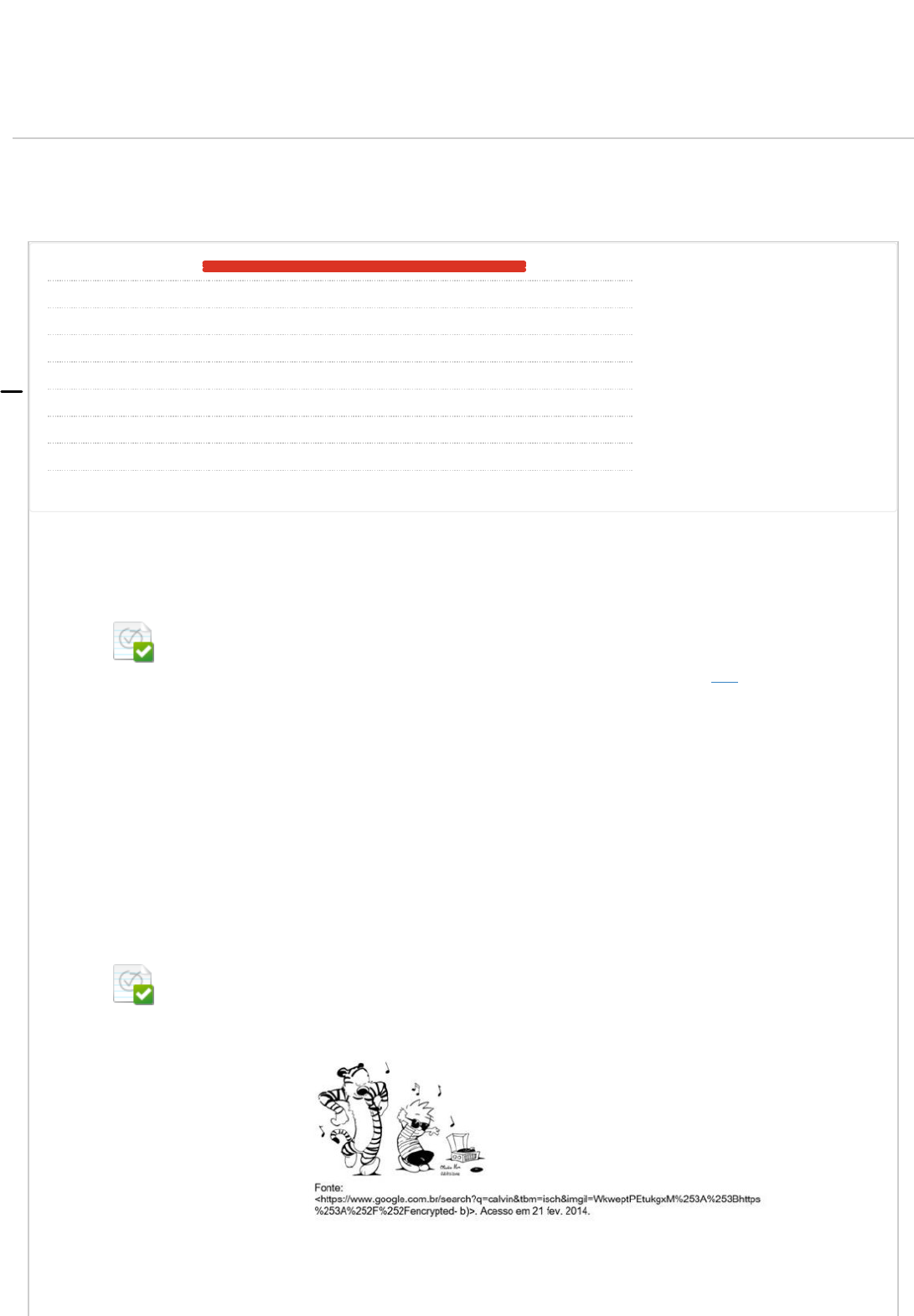 <p>30/09/2024 22:51 Revisar envio do teste: AVALIAÇÃO I – ESTUDOS ...</p><p>https://ava.ead.unip.br/webapps/assessment/review/review.jsp?attempt_id=_107892827_1&course_id=_369579_1&content_id=_4235252_1&return_content=… 1/5</p><p>Revisar envio do teste: AVALIAÇÃO I</p><p>ESTUDOS DISCIPLINARES III 8065-03_SEI_HS_0724_R_20242 CONTEÚDO</p><p>Usuário CASSIA ANDREA TEIXEIRA RODRIGUES VIEIRA</p><p>Curso ESTUDOS DISCIPLINARES III</p><p>Teste AVALIAÇÃO I</p><p>Iniciado 30/09/24 22:39</p><p>Enviado 30/09/24 22:51</p><p>Status Completada</p><p>Resultado da tentativa 9 em 10 pontos</p><p>Tempo decorrido 11 minutos</p><p>Resultados exibidos Respostas enviadas, Perguntas respondidas incorretamente</p><p>Pergunta 1</p><p>Resposta</p><p>Selecionada:</p><p>e.</p><p>O termo hipertexto designa um processo de escrita/leitura não linear e não hierarquizada que</p><p>permite o acesso ilimitado a outros textos de forma instantânea. A leitura hipertextual traz</p><p>novas concepções de texto e leitor. Com base nessa a�rmação, qual a�rmação não condiz</p><p>com essa nova realidade?</p><p>O leitor percorre vários links, em construção textual, de forma linear.</p><p>Pergunta 2</p><p>Resposta</p><p>Selecionada:</p><p>a.</p><p>A linguagem não verbal consiste em sistema único, sem relação com a língua nem com junção</p><p>de sistemas. Assim, qual texto a seguir é formado por sistema não verbal?</p><p>UNIP EAD BIBLIOTECAS MURAL DO ALUNO TUTORIAISCONTEÚDOS ACADÊMICOS</p><p>1 em 1 pontos</p><p>1 em 1 pontos</p><p>http://company.blackboard.com/</p><p>https://ava.ead.unip.br/webapps/blackboard/execute/courseMain?course_id=_369579_1</p><p>https://ava.ead.unip.br/webapps/blackboard/content/listContent.jsp?course_id=_369579_1&content_id=_4230906_1&mode=reset</p><p>https://ava.ead.unip.br/webapps/portal/execute/tabs/tabAction?tab_tab_group_id=_10_1</p><p>https://ava.ead.unip.br/webapps/portal/execute/tabs/tabAction?tab_tab_group_id=_27_1</p><p>https://ava.ead.unip.br/webapps/portal/execute/tabs/tabAction?tab_tab_group_id=_47_1</p><p>https://ava.ead.unip.br/webapps/portal/execute/tabs/tabAction?tab_tab_group_id=_29_1</p><p>https://ava.ead.unip.br/webapps/portal/execute/tabs/tabAction?tab_tab_group_id=_25_1</p><p>https://ava.ead.unip.br/webapps/login/?action=logout</p><p>30/09/2024 22:51 Revisar envio do teste: AVALIAÇÃO I – ESTUDOS ...</p><p>https://ava.ead.unip.br/webapps/assessment/review/review.jsp?attempt_id=_107892827_1&course_id=_369579_1&content_id=_4235252_1&return_content=… 2/5</p><p>Pergunta 3</p><p>Resposta Selecionada: c.</p><p>Leia a tirinha:</p><p>Sobre a tirinha, considere as a�rmações que seguem.</p><p>I- A palavra e a imagem se complementam.</p><p>II- O humor no último quadro é entendido pela interação entre o verbal e a imagem.</p><p>III-. A imagem supera em entendimento.</p><p>IV- A forma animal – coruja – não pode ser substituída por outro bicho para não corromper o</p><p>sentido do texto.</p><p>V- A tirinha é um texto sincrético.</p><p>Está correto o que se a�rma apenas em:</p><p>I, II, IV e V.</p><p>Pergunta 4</p><p>Resposta</p><p>Selecionada:</p><p>c.</p><p>Leia o texto:</p><p>Entre os elementos da linguagem, temos:</p><p>Linguagem não verbal que forma movimento, per�l de rosto com um</p><p>leve sorriso, �ores e folhas desabrochadas.</p><p>1 em 1 pontos</p><p>1 em 1 pontos</p><p>30/09/2024 22:51 Revisar envio do teste: AVALIAÇÃO I – ESTUDOS ...</p><p>https://ava.ead.unip.br/webapps/assessment/review/review.jsp?attempt_id=_107892827_1&course_id=_369579_1&content_id=_4235252_1&return_content=… 3/5</p><p>Pergunta 5</p><p>Resposta</p><p>Selecionada:</p><p>e.</p><p>A linguagem pode ser verbal ou não verbal. Quando não verbal, utiliza-se de linguagens</p><p>distintas da escrita e da fala. Qual alternativa é composta de linguagem sincrética – verbal e</p><p>não verbal?</p><p>Pergunta 6</p><p>Resposta</p><p>Selecionada:</p><p>c.</p><p>Sobre o texto de uma planta de prédio residencial, pode-se a�rmar:</p><p>A verticalidade, marcada pelos andares, constitui-se de espaço</p><p>privado.</p><p>Pergunta 7</p><p>Resposta Selecionada: a.</p><p>Tendo por base o texto não verbal:</p><p>I- Existe a relação entre conteúdo e expressão.</p><p>II- É mais relevante o entendimento do conteúdo.</p><p>III- É mais relevante o entendimento da expressão.</p><p>I está correta.</p><p>1 em 1 pontos</p><p>1 em 1 pontos</p><p>1 em 1 pontos</p><p>30/09/2024 22:51 Revisar envio do teste: AVALIAÇÃO I – ESTUDOS ...</p><p>https://ava.ead.unip.br/webapps/assessment/review/review.jsp?attempt_id=_107892827_1&course_id=_369579_1&content_id=_4235252_1&return_content=… 4/5</p><p>Pergunta 8</p><p>Resposta</p><p>Selecionada:</p><p>b.</p><p>Na análise dos dois textos, conclui-se que:</p><p>Houve mudanças no status da imagem, tornando-a complementar ao</p><p>verbal.</p><p>Pergunta 9</p><p>Considerando o texto, assinale a alternativa correta:</p><p>1 em 1 pontos</p><p>1 em 1 pontos</p><p>30/09/2024 22:51 Revisar envio do teste: AVALIAÇÃO I – ESTUDOS ...</p><p>https://ava.ead.unip.br/webapps/assessment/review/review.jsp?attempt_id=_107892827_1&course_id=_369579_1&content_id=_4235252_1&return_content=… 5/5</p><p>Segunda-feira, 30 de Setembro de 2024 22h51min20s GMT-03:00</p><p>Resposta</p><p>Selecionada:</p><p>b.</p><p>O conteúdo é a disposição clássica de jogadores de futebol para posar</p><p>para fotogra�a.</p><p>Pergunta 10</p><p>Resposta</p><p>Selecionada:</p><p>b.</p><p>Observe as tirinhas e indique a alternativa falsa.</p><p>Os elementos plásticos constituem-se da relação linear x relação planar,</p><p>sendo, nos casos anteriores, de relação linear, com a colocação dos</p><p>elementos lado a lado no espaço.</p><p>← OK</p><p>0 em 1 pontos</p>