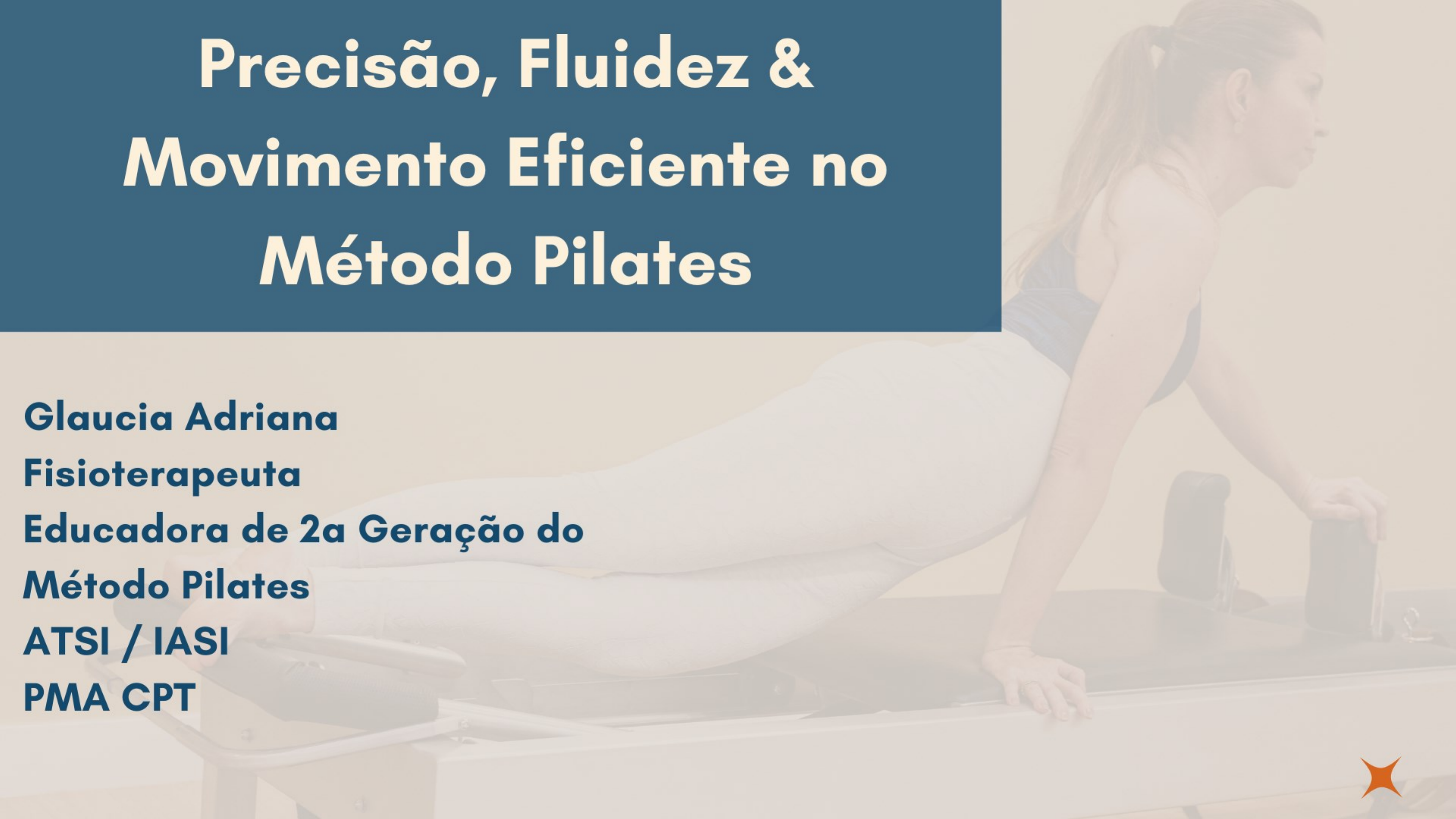 <p>Foto: Arquivo pessoal Glaucia Adriana</p><p>Objetivos</p><p>• Entender os conceitos dos</p><p>princípios do Método Pilates;</p><p>• Movimento Eficiente - objetivo</p><p>final ou consequência?</p><p>• Tensegridade;</p><p>• Meridianos Miofasciais;</p><p>• A prática.</p><p>Foto: Arquivo pessoal Glaucia Adriana</p><p>Os Princípios do Método Pilates</p><p>• Gail Eisen & Phillip Friedman x Joe;</p><p>• Concentração, Centro, Controle,</p><p>Precisão, Respiração e Fluidez;</p><p>• Ideal x Real;</p><p>• Clientes saudáveis x Clientes com</p><p>dor.</p><p>Respiração;</p><p>Posição;</p><p>Tensão - Relaxamento;</p><p>Sequência e Timing;</p><p>Posição ideal de controle.</p><p>Princípios do Movimento Eficiente</p><p>Foto: Arquivo pessoal Glaucia Adriana</p><p>O caminho até a Fáscia…</p><p>Fotos: Arquivo pessoal Glaucia Adriana</p><p>Movimento</p><p>Interação entre:</p><p>• SNC - Os mapas precisos;</p><p>• SN Periférico;</p><p>• Meridiano Miofascial e estrutura do Sistema Fascial;</p><p>• Coordenação extrapiramidal (Ganglio Basal, Cerebelo, Interneurônios)</p><p>- Refinam/Coordenam.</p><p>O Movimento e Forma</p><p>“Todo momento tem uma forma.</p><p>Toda postura tem uma forma.</p><p>Todo sentimento tem uma</p><p>forma”.</p><p>Thomas Myers</p><p>Foto: Arquivo pessoal Glaucia Adriana</p><p>• ME não pode ser</p><p>mensurado pela forma</p><p>ideal, mas por sua</p><p>capacidade de</p><p>adaptação a diferentes</p><p>situações e ambientes;</p><p>• Inteligência Motora ou</p><p>Cinestésica - ter a</p><p>resposta motora para</p><p>os mais diferentes tipos</p><p>de estímulos e</p><p>ambientes (medicina</p><p>espacial);</p><p>• ME é INDIVIDUAL.</p><p>Forma x Movimento Eficiente</p><p>Fotos:Google</p><p>Eficiência é a essência da coordenação.</p><p>Coordenação = Trabalho em equipe.</p><p>Eficiência é uma excelente</p><p>ferramenta para avaliar a</p><p>coordenação de ação do movimento.</p><p>Eficiência</p><p>• Gasto energético;</p><p>• Coordenação – Repetições;</p><p>• Movimento Parasita;</p><p>• Emoções Parasitas;</p><p>• Movimentos lentos.</p><p>A energia gerada tem que ser convertida em</p><p>movimento funcional</p><p>Gasto Energético</p><p>Movimentos lentos</p><p>para aprimorar a</p><p>coordenação.</p><p>Neuroplasticidade</p><p>Weber Fechner Rule</p><p>– relação entre</p><p>magnitude do</p><p>estímulo x habilidade</p><p>de perceber as</p><p>diferenças na</p><p>quantidade de</p><p>estímulo.</p><p>E como melhorar</p><p>a eficiência do</p><p>movimento?</p><p>Habilidades</p><p>Potência</p><p>Força</p><p>Resistência</p><p>Movimento</p><p>Estabilidade</p><p>Mobilidade</p><p>“A menos que o sistema seja estável,</p><p>não existe razão para discutimos sobre</p><p>a performance. Todo sistema instável vai</p><p>ter uma pobre performance”.</p><p>(Reeves at al, 2007)</p><p>Para gerar força</p><p>precisamos ter</p><p>MOBILIDADE e</p><p>para termos</p><p>mobilidade</p><p>precisamos de</p><p>ESTABILIDADE.</p><p>Gray Cook, The Movement</p><p>Estabilidade x Mobilidade</p><p>• Estabilidade - Você não pode atirar um canhão de uma</p><p>canoa;</p><p>• Estabilidade FUNCIONAL ou EFICIENTE.</p><p>“Estabilidade ótima, incluindo de core,</p><p>tem relação com o centro fino do</p><p>movimento, ao invés da prevenção</p><p>rígida de movimento”.</p><p>Qualidades do Movimento Eficiente</p><p>Hodges, 2007</p><p>Qualidades do Movimento Eficiente</p><p>• Coordenação - Condição para o ME;</p><p>• Flexibilidade e Mobilidade (ADM x Funcionalidade) - ME é sobre o</p><p>que você consegue fazer dentro da ADM que você já tem.</p><p>M. Feldenkrais</p><p>“Não estou a procura</p><p>de corpos flexíveis.</p><p>Estou a procura de</p><p>mentes flexíveis”.</p><p>Precisão</p><p>• É a qualidade de movimento;</p><p>• Está ligado a intenção, objetivo e</p><p>execução;</p><p>• SNC;</p><p>• Controle Motor;</p><p>• O cuidado com o excesso;</p><p>• Inteligência Cinestésica.</p><p>Precisão</p><p>Componentes do Movimento:</p><p>O peso da gravidade</p><p>Direção, vontade, desejo, intenção</p><p>Starting point - Pilates</p><p>Fuja das receitas de bolo</p><p>Correções precisas</p><p>• Correções devem ser individuais;</p><p>• A linguagem pode levar a cinesiofobia e nocebos;</p><p>• A postura ideal;</p><p>• Os diferentes tipos de aprendizagem;</p><p>• MOVEMENT MATTERS.</p><p>Incorreto ou estratégia de defesa?</p><p>Corrigir ou não?</p><p>Exemplo: Thigh Stretch</p><p>Corrigir ou não?</p><p>• Disfunção;</p><p>• Nocebo;</p><p>• Cinesiofobia;</p><p>• Conceitos</p><p>ultrapassados.</p><p>Expectativa</p><p>Realidade</p><p>Fluidez</p><p>• Body Mind Spirit;</p><p>• Recrutamento adequado;</p><p>• Dissociação;</p><p>• Leveza;</p><p>• Saber ouvir as dicas verbais.</p><p>O Sistema Nervoso</p><p>• Variabilidade;</p><p>• Adaptabilidade Progressão;</p><p>• Sistemas complexos;</p><p>• Repetição e persistência;</p><p>• Reforço positivo;</p><p>• Dor crônica.</p><p>Vamos falar</p><p>sobre a</p><p>Fáscia...</p><p>“Fáscia é o elemento que</p><p>faltava para treinar o</p><p>movimento. O</p><p>entendimento da</p><p>plasticidade e</p><p>responsividade fascial é</p><p>um elemento chave para a</p><p>mudança terapêutica</p><p>substancial e duradoura”.</p><p>Fascia in Motion, 2017</p><p>By Glaucia Adriana :)</p><p>Como o Sistema Fascial pode melhorar a eficiência na prática do</p><p>Método Pilates?</p><p>• Joseph “O visionário”;</p><p>• Estar presente;</p><p>• Power House e Centralização</p><p>– LPA;</p><p>• Simetria;</p><p>• Respiração;</p><p>• Tensegridade;</p><p>• Transmissão de Força.</p><p>TODOS OS MÚSCULOS SÃO IMPORTANTES</p><p>• Mantém tudo</p><p>separado, mas</p><p>conectado ao</p><p>mesmo tempo;</p><p>• Não existe</p><p>separação dos</p><p>dedos à cabeça</p><p>(Shultz & Feitis,</p><p>1996).</p>