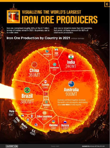 <p>4- nome do mineral bruto</p><p>• Hematita (Fe₂O₃): um dos mais importantes e ricos em teor de ferro.</p><p>•Magnetita (Fe₃O₄): outro minério com alta concentração de ferro.</p><p>•Goethita (FeO(OH)): mais comum em depósitos de menor teor de ferro.</p><p>•Limonita: geralmente encontrada em climas mais úmidos, com menor teor de ferro</p><p>5- forma de obtenção</p><p>A obtenção do ferro ocorre principalmente no alto-forno, onde o minério de ferro (hematita -</p><p>Fe_2O_3) reage com carbono (coque) e calcário em altas temperaturas. O monóxido de</p><p>carbono produzido na combustão do coque reduz o minério de ferro, formando ferro-gusa, que</p><p>é o ferro com impurezas, e escória. O ferro-gusa contém entre 2 a 5% de carbono, e é utilizado</p><p>na fabricação de aço ou purificado para se obter o ferro puro, chamado de “ferro doce”.</p><p>6- onde é mais explorado</p><p>1. Austrália: O maior produtor mundial de minério de ferro, com destaque para a região</p><p>de Pilbara.</p><p>2. Brasil: O segundo maior produtor mundial, com áreas de exploração importantes como</p><p>o Quadrilátero Ferrífero (Minas Gerais) e a Serra dos Carajás (Pará).</p><p>3. China: Um dos maiores consumidores e produtores, com grandes jazidas, mas ainda</p><p>depende de importações para suprir sua demanda.</p><p>4. Rússia: Importante produtora com grandes reservas, principalmente na região dos</p><p>Montes Urais.</p><p>5. Ucrânia: Notável por suas jazidas na região de Krivoy Rog, sendo um dos principais</p><p>exploradores de ferro na Europa.</p><p>Figura x – maiores produtores do mineral de ferro-</p><p>https://images.app.goo.gl/soUo7z8xWinUMraF6</p>