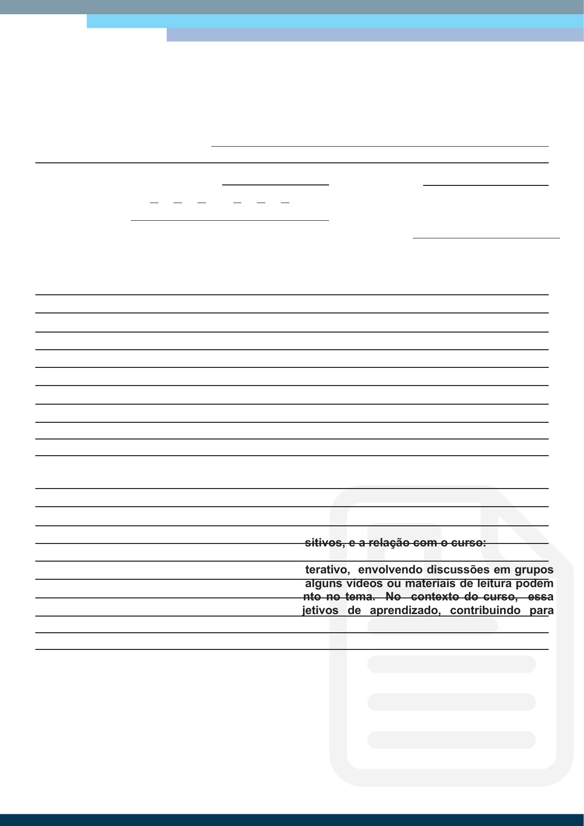 <p>MODELO DA RESENHA</p><p>Resenha conclusiva - contribuição da atividade para o curso.</p><p>Nome do aluno: Miquéias da Silva Costa</p><p>Curso: Licenciatura em Pedagogia CPF: 04253771211 Data da atividade:20 /09 /24 à 30 /09 /24 | Número de horas (conforme o documento de comprovação): 15 h Atividade (tipo conforme a tabela): Estratégias para progredir nos estudos. Certificado</p><p>Breve descrição da atividade complementar realizada:</p><p>A oficina NAIA foi realizado leituras e assisti os vídeos que foram importantes para o meu aprendizado sobre o tema. Os exercícios e desafios proporcionamuma noção clara do conteúdo e avaliaram meu conhecimento sobre o assunto.</p><p>Breve análise crítica com pontos negativos e positivos, e a relação com o curso:</p><p>No entanto, a atividade poderia ter sido mais interativo, envolvendo discussões em grupos ou feedback direto dos instrutores. Além disso, alguns vídeos ou materiais de leitura podem ter sido superficiais, limitando o aprofundamento no tema. No contexto do curso, essa atividade parece estar alinhado com os objetivos de aprendizado, contribuindo para desenvolvimento dos conhecimentos.</p><p>image1.png</p><p>image10.png</p>