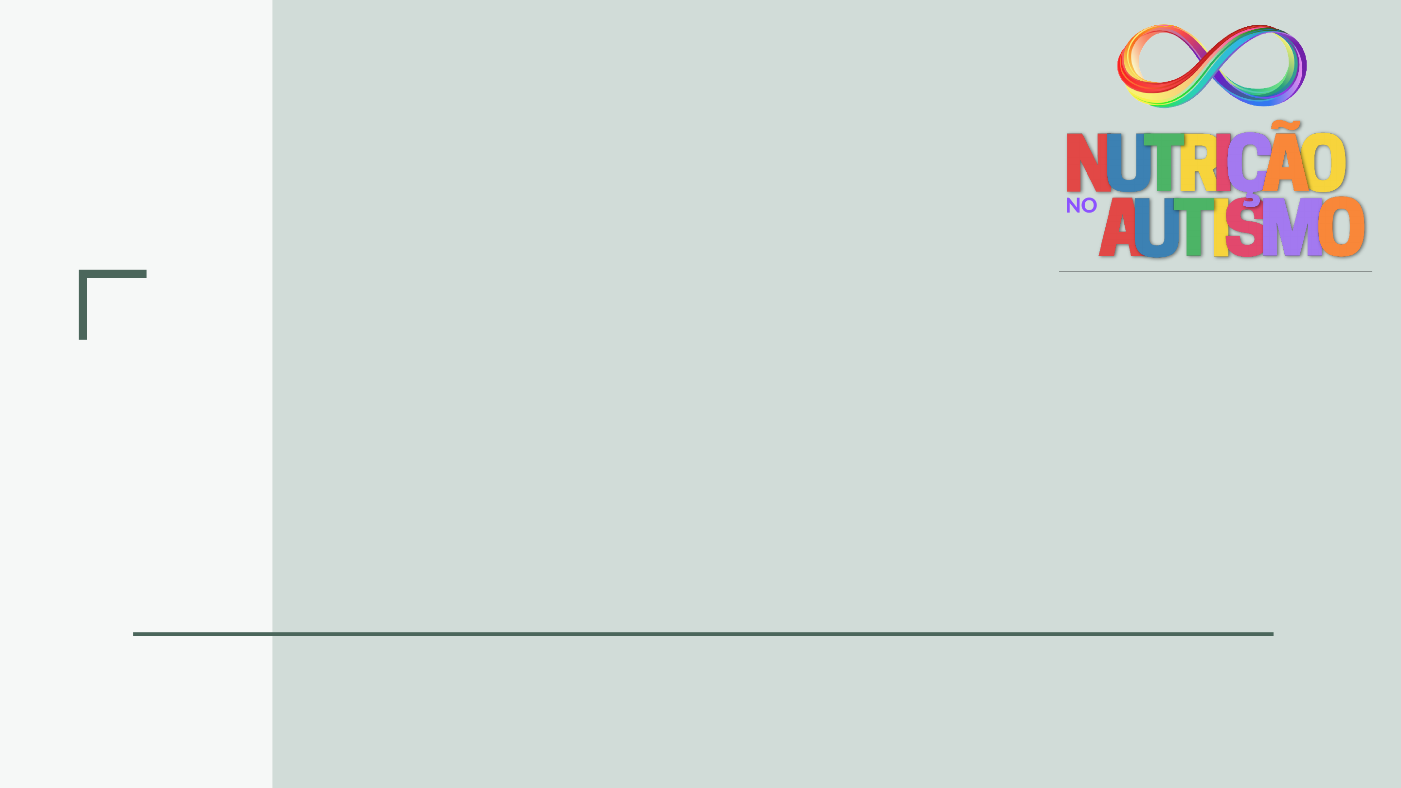 <p>COMO INICIAR SEU</p><p>ATENDIMENTO COM</p><p>CRIANÇAS COM TEA</p><p>Ana Avelino - Nutricionista</p><p>NO</p><p>Workshop Desvendando a</p><p>Ana Avelino</p><p>NUTRICIONISTA</p><p>Especialista em Seletividade Alimentar e Autismo</p><p>Graduada em Nutrição, com experiência clínica há</p><p>mais de 15 anos.</p><p>Desenvolvi o método Descomplicando a Hora das</p><p>refeições.</p><p>Atuei com docência em faculdades públicas e</p><p>privadas.</p><p>Atuei nos últimos anos em equipe multidisciplinar no</p><p>Tratamento de Seletividade Alimentar em Santa</p><p>Catarina.</p><p>Certificada em Terapia para Seletividade Alimentar</p><p>SOS Approuach to Feeding - EUA</p><p>Capacitação método Food Chaining para Seletividade</p><p>Alimentar - EUA</p><p>INSCREVA-SE AQUI NO</p><p>CANAL DO YOUTUBE</p><p>NO</p><p>Workshop Desvendando a@anaavelinonutri</p><p>#desvendandoanutricao</p><p>Compartilhe nos stories</p><p>Tire um print de momentos dessa</p><p>aula</p><p>Marque:</p><p>O que é o Transtorno</p><p>do Espectro Autista</p><p>(TEA)</p><p>O transtorno do espectro autista (TEA) é</p><p>um distúrbio do neurodesenvolvimento</p><p>caracterizado por desenvolvimento</p><p>atípico, manifestações comportamentais,</p><p>déficits na comunicação e na interação</p><p>social, padrões de comportamentos</p><p>repetitivos e estereotipados, podendo</p><p>apresentar um repertório restrito de</p><p>interesses e atividades.</p><p>Sintomas</p><p>NO</p><p>Workshop Desvendando a</p><p>Causas Multifatoriais</p><p>Modelo atual</p><p>NO</p><p>Workshop Desvendando a</p><p>Genético</p><p>Epigenético</p><p>Insvestigar</p><p>Comorbidades</p><p>Tratamentos</p><p>Terapia</p><p>Medicamento</p><p>TRANSTORNO DO ESPECTRO AUTISTA</p><p>ETIOLOGIA DO TEA</p><p>GENÉTICA</p><p>HERDABILIDADE</p><p>Gêmeos Monozigóticos Irmãos</p><p>Herdabilidade 50-90% Herdabilidade 10 - 20%</p><p>NO</p><p>Workshop Desvendando a</p><p>Funil de Eventos</p><p>NO</p><p>Workshop Desvendando a</p><p>Auxilia no entendimento das causas do Autismo.</p><p>Fator Genético</p><p>Fator</p><p>Ambiental</p><p>Toxinas</p><p>Fator</p><p>Intestinal</p><p>TRANSTORNO DO ESPECTRO AUTISTA</p><p>EPIGENÉTICA</p><p>Como nossos genes vão se comportar mediante ao meio ambiente, é a expressão genética.</p><p>NO</p><p>Workshop Desvendando a</p><p>O QUE SÃO FATORES AMBIENTAIS</p><p>Fatores Ambientais</p><p>Toxinas</p><p>Alteração na expressão</p><p>genética</p><p>Estresse</p><p>Obesidade</p><p>Diabetes</p><p>Bisphenol A</p><p>Ftalatos</p><p>PFC</p><p>Agrotóxicos</p><p>Dioxinas</p><p>Rad eletromagnética</p><p>Panelas</p><p>Antibióticos</p><p>Fungos</p><p>NO</p><p>Workshop Desvendando a</p><p>Rede ADDM, 2018</p><p>Prevalência de acordo com o sexo</p><p>1 menina para cada 4 meninos</p><p>Prevalência em meninas</p><p>O que acontece com frequência é a interpretação errada de sintomas</p><p>como ansiedade, problemas alimentares e comportamentos rígidos e</p><p>repetitivos.</p><p>Comumente são diagnosticadas com transtorno obsessivo compulsivo</p><p>(TOC) ou recebem o diagnóstico "padrão" de transtorno de</p><p>hiperatividade e défict de atenção (TDHA), que devido seus critérios</p><p>amplos e subjetivos é identificado de forma rápida e superficial, o que</p><p>ajuda mascarar as reais causas dos sintomas relacionados.</p><p>NO</p><p>Workshop Desvendando a</p><p>Rede ADDM, 2018</p><p>Critérios de Diagnóstico</p><p>Os critérios são observacionais, não tem exames para diagnosticar autismo.</p><p>Interesses</p><p>Restritivos</p><p>Comportamento</p><p>Repetitivos</p><p>DSM 5</p><p>Comunicação Social</p><p>NO</p><p>Workshop Desvendando a</p><p>O DSM — Manual Diagnóstico e</p><p>Estatístico dos Transtornos Mentais —</p><p>alterou os critérios para o diagnóstico</p><p>TEA e estabeleceu níveis de intensidade</p><p>no autismo.</p><p>Segundo o DSM existem alguns</p><p>comportamentos específ icos que</p><p>caracterizam o Transtorno do Espectro</p><p>Autista (TEA). Atualmente, em sua 5.ª</p><p>edição, foram feitas algumas alterações</p><p>nos critérios de diagnóstico do autismo.</p><p>O DSM-V combinou quatro diagnósticos</p><p>em um único diagnóstico — Transtorno</p><p>Autista; Síndrome de Asperger;</p><p>Transtorno Invasivo do Desenvolvimento</p><p>e Transtorno Desintegrativo da Infância</p><p>— em um diagnóstico denominado</p><p>Transtorno do Espectro Autista, ou TEA.</p><p>Essa mudança ocorreu, pois os quatro</p><p>diagnósticos incluídos no espectro</p><p>apresentam características</p><p>comportamentais semelhantes, mas com</p><p>diferentes níveis de gravidade.</p><p>Sinais de Alerta de Autismo</p><p>dificuldade em manter contato visual;</p><p>não responder ao sorriso ou outras expressões faciais dos pais;</p><p>não olhar para objetos para os quais os pais estão olhando ou apontando;</p><p>não apontar para objetos ou situações para fazer os pais olharem para eles;</p><p>menos probabilidade de trazer objetos de interesse pessoal para mostrar aos pais;</p><p>dificuldade em perceber o que os outros estão pensando ou sentindo através das</p><p>expressões faciais;</p><p>menos probabilidade de mostrar preocupação (empatia) pelos outros;</p><p>dificuldade em fazer e manter amigos.</p><p>NO</p><p>Workshop Desvendando a</p><p>Sinais de Alerta de Autismo</p><p>menos probabilidade de apontar coisas para indicar necessidades ou para</p><p>compartilhar com outras pessoas;</p><p>não diz nenhuma palavra aos 15 meses ou frases aos 24 meses;</p><p>repete exatamente o que os outros dizem sem entender o significado;</p><p>pode não responder quando chamado pelo nome, mas responde a outros sons</p><p>(como a buzina de um carro ou o miado de um gato);</p><p>pode referir-se a si mesmo como “você” e aos outros como “eu” e misturar</p><p>pronomes;</p><p>Em relação à comunicação:</p><p>NO</p><p>Workshop Desvendando a</p><p>Sinais de Alerta de Autismo</p><p>pode mostrar pouco interesse em se comunicar;</p><