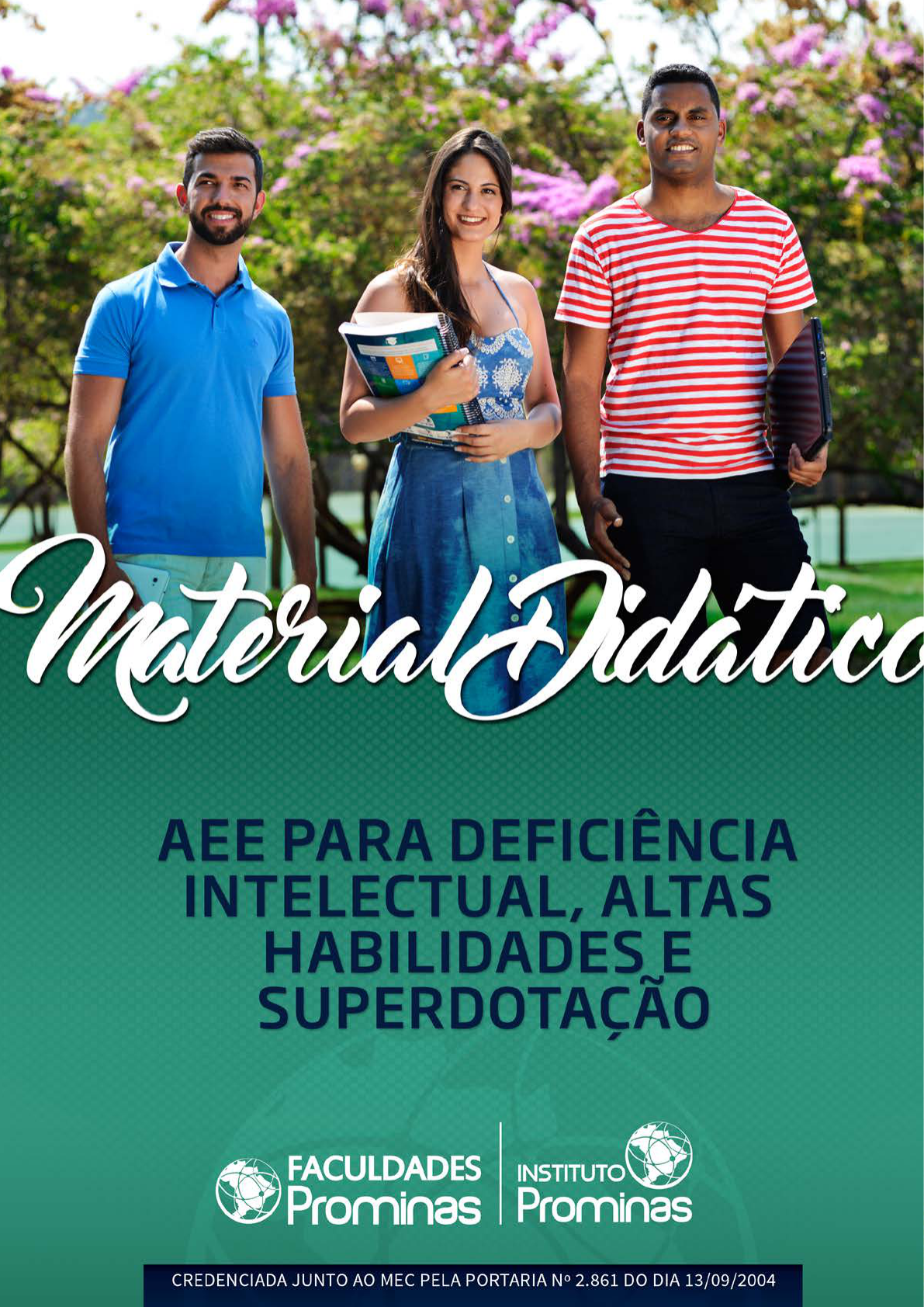 <p>AT 1</p><p>2 32</p><p>S</p><p>U</p><p>M</p><p>Á</p><p>R</p><p>IO</p><p>3 UNIDADE 1 – Introdução</p><p>7 UNIDADE 2 – Da Deficiência Mental à Intelectual</p><p>7 2.1 História</p><p>9 2.2 Conceito</p><p>11 UNIDADE 3 – Deficiência Intelectual</p><p>11 3.1 Etiologia da deficiência intelectual</p><p>16 3.2 Classificação</p><p>20 UNIDADE 4 – Altas Habilidades / Superdotação</p><p>27 UNIDADE 5 – Atendimento Educacional Especializado – AEE</p><p>28 5.1 Conceito e definição</p><p>30 5.2 As salas de recursos</p><p>32 5.3 A sala de recurso para deficiência intelectual</p><p>33 5.4 Atribuições do professor no AEE</p><p>34 5.5 A importância da revisão do PPP e do currículo escolar</p><p>36 UNIDADE 6 – Identificação/Caracterização e Trabalho com Altas Habilidades</p><p>43 UNIDADE 7 – Atividades Físicas e Fatores de Risco de Doenças para Alunos com Deficiência Intelectual</p><p>47 REFERÊNCIAS</p><p>2 33</p><p>UNIDADE 1 – Introdução</p><p>A inclusão social tem sido um desafio</p><p>para todas as esferas da sociedade, prin-</p><p>cipalmente para as pessoas portadoras de</p><p>necessidades especiais que, muito além</p><p>de poderem exercer a cidadania, deparam</p><p>com a dificuldade de acesso em todos os</p><p>sentidos.</p><p>Segundo Mantoan (2006), a inclusão es-</p><p>colar está articulada a movimentos sociais</p><p>mais amplos, que exigem maior igualdade</p><p>e mecanismos mais equitativos no acesso</p><p>a bens e serviços. Ligada a sociedades de-</p><p>mocráticas que estão pautadas no mérito</p><p>individual e na igualdade de oportunida-</p><p>des, a inclusão propõe a desigualdade de</p><p>tratamento como forma de restituir uma</p><p>igualdade que foi rompida por formas se-</p><p>gregadoras de ensino especial e regular.</p><p>A questão política e social da inclusão é</p><p>assunto que rende muitas discussões, as-</p><p>sim como entender que o tratamento dis-</p><p>pensado à diferença não quer dizer tratá-</p><p>-los como iguais, ao contrário, a diferença</p><p>propõe o conflito, o dissenso, a imprevisibi-</p><p>lidade, a impossibilidade do cálculo. O certo</p><p>é jamais desvalorizar e inferiorizar os cida-</p><p>dãos/alunos por suas diferenças, seja nas</p><p>escolas comuns ou nas especiais.</p><p>Vale enfatizar de imediato que a inclu-</p><p>são de indivíduos com necessidades edu-</p><p>cacionais especiais na rede regular de en-</p><p>sino não consiste apenas na permanência</p><p>junto aos demais alunos, nem na negação</p><p>dos serviços especializados àqueles que</p><p>deles necessitem. Ao contrário, implica</p><p>uma reorganização do sistema educacio-</p><p>nal, o que acarreta a revisão de antigas</p><p>concepções e paradigmas educacionais na</p><p>busca de se possibilitar o desenvolvimento</p><p>cognitivo, cultural e social desses alunos,</p><p>respeitando suas diferenças e atenden-</p><p>do suas necessidades (GLAT; NOGUEIRA,</p><p>2002, p. 26).</p><p>Alguns devem estar se perguntando por</p><p>que a apostila tem como título “Deficiência</p><p>intelectual” e não “Deficiência mental”?.</p><p>Pois bem, vamos de pronto deixar claro</p><p>que a deficiência intelectual, outrora co-</p><p>nhecida como deficiência mental, não é</p><p>uma doença, não pode ser contraída pelo</p><p>contato com uma pessoa sadia ou outra</p><p>com a deficiência. Não é uma doença men-</p><p>tal, portanto, não há cura e para entender</p><p>melhor a diferença entre doença e defi-</p><p>ciência, a OMS – Organização Mundial da</p><p>Saúde – propôs três níveis para esclarecer</p><p>todas as deficiências, a saber: deficiência,</p><p>incapacidade e desvantagem social.</p><p>Deficiência – perda ou anormalidade</p><p>de estrutura ou função psicológica, fisio-</p><p>lógica ou anatômica, temporária ou per-</p><p>manente. Incluem-se nessas a ocorrência</p><p>de uma anomalia, defeito ou perda de um</p><p>membro, órgão, tecido ou qualquer outra</p><p>estrutura do corpo, inclusive das funções</p><p>mentais. Representa a exteriorização de</p><p>um estado patológico, refletindo um dis-</p><p>túrbio orgânico, uma perturbação no ór-</p><p>gão.</p><p>Incapacidade – restrição, resultan-</p><p>te de uma deficiência, da habilidade para</p><p>desempenhar uma atividade considerada</p><p>normal para o ser humano. Surge como</p><p>consequência direta ou é resposta do indi-</p><p>víduo a uma deficiência psicológica, física,</p><p>sensorial ou outra. Representa a objetiva-</p><p>4 5</p><p>ção da deficiência e reflete os distúrbios da</p><p>própria pessoa, nas atividades e compor-</p><p>tamentos essenciais à vida diária.</p><p>Desvantagem – prejuízo para o in-</p><p>divíduo, resultante de uma deficiência ou</p><p>uma incapacidade, que limita ou impede</p><p>o desempenho de papéis de acordo com</p><p>a idade, sexo, fatores sociais e culturais.</p><p>Caracteriza-se por uma discordância entre</p><p>a capacidade individual de realização e as</p><p>expectativas do indivíduo ou do seu grupo</p><p>social. Representa a socialização da defi-</p><p>ciência e relaciona-se às dificuldades nas</p><p>habilidades de sobrevivência.</p><p>Em 2001, essa classificação foi revista</p><p>e reeditada não contendo mais uma su-</p><p>cessão linear dos níveis, mas indicando a</p><p>interação entre as funções orgânicas, as</p><p>atividades e a participação social (BATIS-</p><p>TA; MANTOAN, 2006).</p><p>O importante dessa nova definição é</p><p>que ela destaca o funcionamento global da</p><p>pessoa em relação aos fatores contextuais</p><p>e do meio, re-situando-a entre as demais</p><p>e rompendo o seu isolamento. Essa defi-</p><p>nição motivou a proposta de substituir a</p><p>terminologia “pessoa deficiente” por “pes-</p><p>soa em situação de deficiência” (ASSANTE,</p><p>2000 apud BRASIL, 2006). Mais recente-</p><p>mente tem-se visto o uso do termo defici-</p><p>ênci