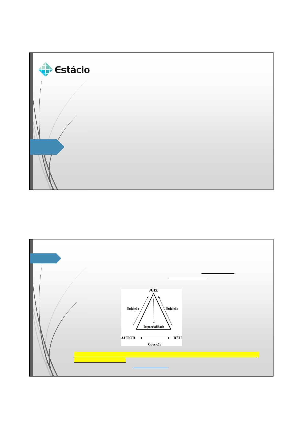 <p>ESTÁCIO NATAL - PRÁTICA SIMULADA CÍVEL</p><p>(CCJ0260) - 2024.1</p><p>26/05/2024</p><p>Aula 05</p><p>Resposta do réu.</p><p>Contestação. Preclusão.</p><p>Reconvenção. Revelia.</p><p>Profª. Cíntia de Fátima Silva</p><p>E-mail: profa.cintiafs.adv@gmail.com</p><p>NATAL/RN</p><p>2024.1</p><p>FACULDADE ESTÁCIO DE NATAL</p><p>CURSO DE DIREITO</p><p>DISCIPLINA: PRÁTICA SIMULADA CÍVEL (CCJ0260)</p><p>Aula 06 – Resposta do Réu</p><p> Para que a relação jurídica processual se aperfeiçoe, além do autor figurando</p><p>como demandante, faz-se necessária a presença do réu, que poderá (ou não)</p><p>apresentar defesa.</p><p> Após a propositura da ação pelo autor, o réu (ou demandado) será chamado</p><p>para que se manifeste acerca daquela demanda em face dele proposta. Essa</p><p>manifestação é chamada resposta do réu.</p><p>1</p><p>2</p><p>ESTÁCIO NATAL - PRÁTICA SIMULADA CÍVEL</p><p>(CCJ0260) - 2024.1</p><p>26/05/2024</p><p>Aula 06 – Resposta do Réu</p><p> Da mesma forma que o autor tem o direito de pedir a intervenção do Estado para</p><p>a solução de uma lide por intermédio da ação (direito de ação), o réu tem o</p><p>direito de estruturar sua forma de atuar no processo, defendendo-se daquilo que</p><p>pretende o autor, bem como, se for o caso, pedindo e até reconvindo.</p><p> Assim, as potenciais atitudes do réu ante uma demanda judicial, podem ser:</p><p> permanecer inerte (revelia);</p><p> contestar (através de peça processual tecnicamente defensiva); ou</p><p> reconvir (apresentar a reconvenção, demanda do réu contra o autor da</p><p>demanda originária - dentro do mesmo processo).</p><p>Aula 06 – Contestação</p><p> A contestação é a resistência do réu ao pedido do autor; é a peça processual em</p><p>que o réu irá rebater os argumentos elencados pelo autor em sua petição inicial.</p><p> O efetivo exercício do direito de defesa do réu independe de a ação ser julgada</p><p>procedente ou improcedente.</p><p> Os argumentos podem ser formais (dizem respeito à ausência de alguma</p><p>formalidade processual descumprida pelo autor na exordial) ou materiais</p><p>(relacionam-se com o mérito da causa).</p><p> A contestação é a resposta mais utilizada pelo réu, através da qual se alegará</p><p>toda matéria de defesa, com a exposição das razões de fato e de direito, a</p><p>impugnação da pretensão do autor e a especificação das provas que pretende</p><p>produzir.</p><p>3</p><p>4</p><p>ESTÁCIO NATAL - PRÁTICA SIMULADA CÍVEL</p><p>(CCJ0260) - 2024.1</p><p>26/05/2024</p><p>Aula 06 – Contestação</p><p> Estrutura da contestação:</p><p> Endereçamento;</p><p> Número do processo de referência;</p><p> Qualificação completa da parte ré, ora contestante (caso a qualificação feita</p><p>na inicial esteja incompleta ou errada);</p><p> Indicação do nome da Ação inicial;</p><p> Indicação da parte autora, “já devidamente qualificada nos autos do</p><p>processo em epígrafe”;</p><p> Pedido de justiça gratuita (se couber);</p><p> Síntese da petição inicial;</p><p> Da Realidade Fática e do Mérito;</p><p> Dos Requerimentos Finais;</p><p> Local e data;</p><p> Assinatura do advogado/OAB.</p><p>Aula 06 – Contestação: Prazos</p><p> O réu poderá oferecer contestação no prazo de 15 dias, contado a partir</p><p>(CPC/2015, art. 335):</p><p>Art. 335. O réu poderá oferecer contestação, por petição, no prazo de 15 (quinze) dias, cujo termo inicial</p><p>será a data:</p><p>I - da audiência de conciliação ou de mediação, ou da última sessão de conciliação, quando qualquer</p><p>parte não comparecer ou, comparecendo, não houver autocomposição;</p><p>II - do protocolo do pedido de cancelamento da audiência de conciliação ou de mediação</p><p>apresentado pelo réu, quando ocorrer a hipótese do art. 334, § 4º, inciso I ;</p><p>III - prevista no art. 231 , de acordo com o modo como foi feita a citação, nos demais casos.</p><p>§ 1º No caso de litisconsórcio passivo, ocorrendo a hipótese do art. 334, § 6º , o termo inicial previsto no</p><p>inciso II será, para cada um dos réus, a data de apresentação de seu respectivo pedido de</p><p>cancelamento da audiência.</p><p>§ 2º Quando ocorrer a hipótese do art. 334, § 4º, inciso II , havendo litisconsórcio passivo e o autor desistir</p><p>da ação em relação a réu ainda não citado, o prazo para resposta correrá da data de intimação da</p><p>decisão que homologar a desistência.</p><p> Prazo em dobro: Arts. 180, 183, 186 (MP, Defensoria Pública, União, Estados, Distrito</p><p>Federal, Municípios e suas respectivas autarquias e fundações de direito público,</p><p>bem como os escritórios de prática jurídica das faculdades de Direito) e 229</p><p>(litisconsortes que tiverem diferentes procuradores), todos do CPC/2015.</p><p>5</p><p>6</p><p>ESTÁCIO NATAL - PRÁTICA SIMULADA CÍVEL</p><p>(CCJ0260) - 2024.1</p><p>26/05/2024</p><p>Aula 06 – Contestação: Conteúdo formal</p><p> A contestação observará o princípio da concentração (ou da eventualidade ),</p><p>de modo que este é o momento para o réu alegar toda a matéria de defesa,</p><p>expondo as razões de fato e de direito com que impugna o pedido do autor, e</p><p>especificando as provas que pretende produzir (art. 336, CPC/2015):</p><p>Art. 336. Incumbe ao réu alegar, na contestação, toda a matéria de defesa, expondo as razões de fato</p><p>e de direito com que impugna o pedido do autor e especificando as provas que pretende produzir.</p><p> Toda a matéria é alegada de uma só vez, e, se o réu assim não fizer, sujeitar-se-á</p><p>à preclusão.</p><p> OBSERVAÇÃO:</p><p>PRECLUSÃO: instituto do Direito Processual Civil em que ocorre a perda de uma</p><p>faculdade processual, quando uma das partes de um processo perde o direito de se</p><p>manifestar em dado momento, seja pela perda do prazo, pela não observância das</p><p>no