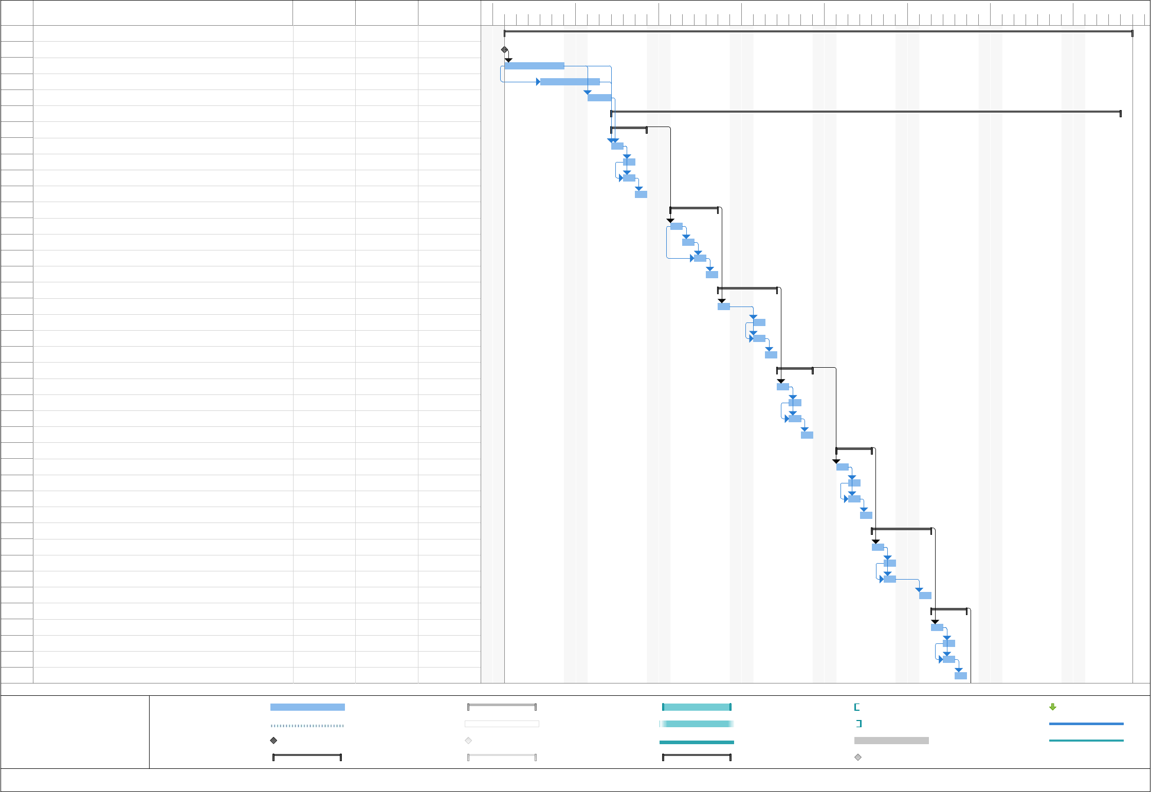 <p>Id Nome da Tarefa Duração Início Término</p><p>1 Instalação de Sistema de IT MEDICO 39 dias Seg 14/10/24Qui 05/12/24</p><p>2 Mobilização inicial 0 dias Seg 14/10/24Seg 14/10/24</p><p>3 Instalação de eletrocalha do ramal principal 5 dias Seg 14/10/24Sex 18/10/24</p><p>4 Instalação de quadros e transformadores 3 dias Qui 17/10/24Seg 21/10/24</p><p>5 Instalação de supervisor 2 dias Seg 21/10/24Ter 22/10/24</p><p>6 INSTALAÇÃO DE PONTOS NOS LEITOS 31 dias Qua 23/10/24Qua 04/12/24</p><p>7 LEITO 20 3 dias Qua 23/10/24Sex 25/10/24</p><p>8 Passagem de infraestrutura (eletroduto) 1 dia Qua 23/10/24Qua 23/10/24</p><p>9 Passagem de cabeamento PP 3 x 2,5 mm² 1 dia Qui 24/10/24Qui 24/10/24</p><p>10 Instalação de reguas 1 dia Qui 24/10/24Qui 24/10/24</p><p>11 recomposição de pintura 1 dia Sex 25/10/24Sex 25/10/24</p><p>12 LEITO 19 4 dias Seg 28/10/24Qui 31/10/24</p><p>13 Passagem de infraestrutura (eletroduto) 1 dia Seg 28/10/24Seg 28/10/24</p><p>14 Passagem de cabeamento PP 3 x 2,5 mm² 1 dia Ter 29/10/24Ter 29/10/24</p><p>15 Instalação de reguas 1 dia Qua 30/10/24Qua 30/10/24</p><p>16 recomposição de pintura 1 dia Qui 31/10/24Qui 31/10/24</p><p>17 LEITO 18 3 dias Sex 01/11/24Ter 05/11/24</p><p>18 Passagem de infraestrutura (eletroduto) 1 dia Sex 01/11/24Sex 01/11/24</p><p>19 Passagem de cabeamento PP 3 x 2,5 mm² 1 dia Seg 04/11/24Seg 04/11/24</p><p>20 Instalação de reguas 1 dia Seg 04/11/24Seg 04/11/24</p><p>21 recomposição de pintura 1 dia Ter 05/11/24Ter 05/11/24</p><p>22 LEITO 17 3 dias Qua 06/11/24Sex 08/11/24</p><p>23 Passagem de infraestrutura (eletroduto) 1 dia Qua 06/11/24Qua 06/11/24</p><p>24 Passagem de cabeamento PP 3 x 2,5 mm² 1 dia Qui 07/11/24Qui 07/11/24</p><p>25 Instalação de reguas 1 dia Qui 07/11/24Qui 07/11/24</p><p>26 recomposição de pintura 1 dia Sex 08/11/24Sex 08/11/24</p><p>27 LEITO 16 3 dias Seg 11/11/24Qua 13/11/24</p><p>28 Passagem de infraestrutura (eletroduto) 1 dia Seg 11/11/24Seg 11/11/24</p><p>29 Passagem de cabeamento PP 3 x 2,5 mm² 1 dia Ter 12/11/24Ter 12/11/24</p><p>30 Instalação de reguas 1 dia Ter 12/11/24Ter 12/11/24</p><p>31 recomposição de pintura 1 dia Qua 13/11/24Qua 13/11/24</p><p>32 LEITO 15 3 dias Qui 14/11/24Seg 18/11/24</p><p>33 Passagem de infraestrutura (eletroduto) 1 dia Qui 14/11/24Qui 14/11/24</p><p>34 Passagem de cabeamento PP 3 x 2,5 mm² 1 dia Sex 15/11/24Sex 15/11/24</p><p>35 Instalação de reguas 1 dia Sex 15/11/24Sex 15/11/24</p><p>36 recomposição de pintura 1 dia Seg 18/11/24Seg 18/11/24</p><p>37 LEITO 14 3 dias Ter 19/11/24Qui 21/11/24</p><p>38 Passagem de infraestrutura (eletroduto) 1 dia Ter 19/11/24Ter 19/11/24</p><p>39 Passagem de cabeamento PP 3 x 2,5 mm² 1 dia Qua 20/11/24Qua 20/11/24</p><p>40 Instalação de reguas 1 dia Qua 20/11/24Qua 20/11/24</p><p>41 recomposição de pintura 1 dia Qui 21/11/24Qui 21/11/24</p><p>14/10</p><p>S D S T Q Q S S D S T Q Q S S D S T Q Q S S D S T Q Q S S D S T Q Q S S D S T Q Q S S D S T Q Q S S D S T Q Q S S</p><p>13/Out/24 20/Out/24 27/Out/24 03/Nov/24 10/Nov/24 17/Nov/24 24/Nov/24 01/Dez/24</p><p>Tarefa</p><p>Divisão</p><p>Marco</p><p>Resumo</p><p>Resumo do projeto</p><p>Tarefa Inativa</p><p>Marco Inativo</p><p>Resumo Inativo</p><p>Tarefa Manual</p><p>Somente duração</p><p>Acúmulo de Resumo Manual</p><p>Resumo Manual</p><p>Somente início</p><p>Somente término</p><p>Tarefas externas</p><p>Marco externo</p><p>Data limite</p><p>Andamento</p><p>Progresso manual</p><p>Página 1</p><p>Projeto: Cronograma de execuç</p><p>Data: Ter 01/10/24</p><p>Id Nome da Tarefa Duração Início Término</p><p>42 LEITO 13 3 dias Sex 22/11/24Ter 26/11/24</p><p>43 Passagem de infraestrutura (eletroduto) 1 dia Sex 22/11/24Sex 22/11/24</p><p>44 Passagem de cabeamento PP 3 x 2,5 mm² 1 dia Seg 25/11/24Seg 25/11/24</p><p>45 Instalação de reguas 1 dia Seg 25/11/24Seg 25/11/24</p><p>46 recomposição de pintura 1 dia Ter 26/11/24Ter 26/11/24</p><p>47 LEITO 12 3 dias Qua 27/11/24Sex 29/11/24</p><p>48 Passagem de infraestrutura (eletroduto) 1 dia Qua 27/11/24Qua 27/11/24</p><p>49 Passagem de cabeamento PP 3 x 2,5 mm² 1 dia Qui 28/11/24Qui 28/11/24</p><p>50 Instalação de reguas 1 dia Qui 28/11/24Qui 28/11/24</p><p>51 recomposição de pintura 1 dia Sex 29/11/24Sex 29/11/24</p><p>52 LEITO 11 3 dias Seg 02/12/24Qua 04/12/24</p><p>53 Passagem de infraestrutura (eletroduto) 1 dia Seg 02/12/24Seg 02/12/24</p><p>54 Passagem de cabeamento PP 3 x 2,5 mm² 1 dia Ter 03/12/24Ter 03/12/24</p><p>55 Instalação de reguas 1 dia Ter 03/12/24Ter 03/12/24</p><p>56 recomposição de pintura 1 dia Qua 04/12/24Qua 04/12/24</p><p>57 TESTE E COMISSIONAMENTO GERAL 1 dia Qui 05/12/24Qui 05/12/24</p><p>S D S T Q Q S S D S T Q Q S S D S T Q Q S S D S T Q Q S S D S T Q Q S S D S T Q Q S S D S T Q Q S S D S T Q Q S S</p><p>13/Out/24 20/Out/24 27/Out/24 03/Nov/24 10/Nov/24 17/Nov/24 24/Nov/24 01/Dez/24</p><p>Tarefa</p><p>Divisão</p><p>Marco</p><p>Resumo</p><p>Resumo do projeto</p><p>Tarefa Inativa</p><p>Marco Inativo</p><p>Resumo Inativo</p><p>Tarefa Manual</p><p>Somente duração</p><p>Acúmulo de Resumo Manual</p><p>Resumo Manual</p><p>Somente início</p><p>Somente término</p><p>Tarefas externas</p><p>Marco externo</p><p>Data limite</p><p>Andamento</p><p>Progresso manual</p><p>Página 2</p><p>Projeto: Cronograma de execuç</p><p>Data: Ter 01/10/24</p>