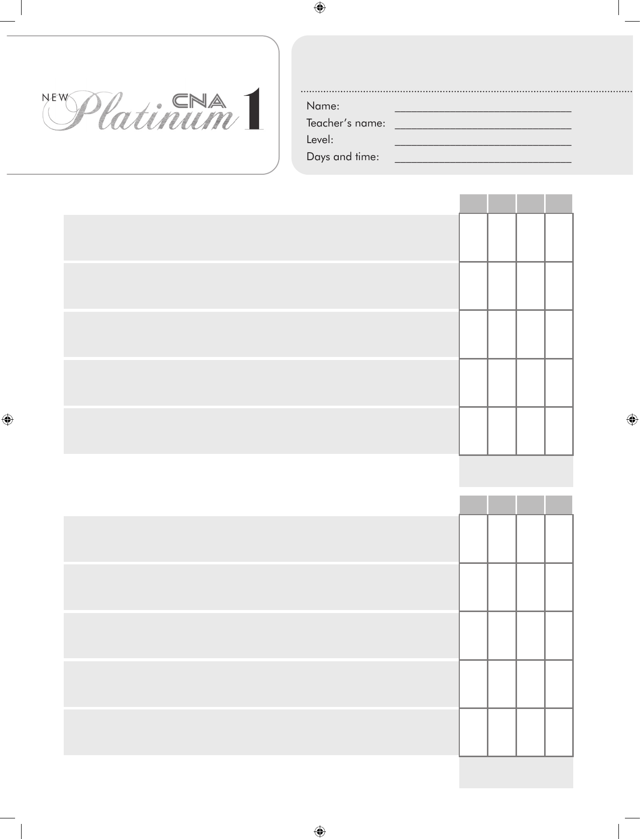 <p>ORAL TESTS CHART</p><p>KIDS TO MASTER IN ENGLISH 2</p><p>Name: ________________________________</p><p>Teacher’s name: ________________________________</p><p>Level: ________________________________</p><p>Days and time: ________________________________</p><p>0.5 1.0 1.5 2.0</p><p>COMMUNICATIVE ABILITY</p><p>• Is the student able to carry out the communicative objective of the task?</p><p>• Does the student use the appropriate register to accomplish the tasks efficiently?</p><p>GRAMMATICAL COMPETENCE</p><p>• Is the student competent in applying the grammar learned to accomplish the tasks</p><p>proposed?</p><p>VOCABULARY ADEQUACY</p><p>• Is the student competent in applying the vocabulary learned to accomplish the tasks</p><p>proposed?</p><p>PRONUNCIATION AND INTONATION</p><p>• Is the student’s pronunciation and intonation clear enough to convey meanings</p><p>required in the tasks without hindering communication?</p><p>FLUENCY</p><p>• Does the student’s speech flow naturally, without artificial pauses and without</p><p>straining the interlocutor?</p><p>Total:</p><p>......................./10</p><p>MIDTERM ORAL TEST</p><p>1.0 2.0 3.0 4.0</p><p>COMMUNICATIVE ABILITY</p><p>• Is the student able to carry out the communicative objective of the task?</p><p>• Does the student use the appropriate register to accomplish the tasks efficiently?</p><p>GRAMMATICAL COMPETENCE</p><p>• Is the student competent in applying the grammar learned to accomplish the tasks</p><p>proposed?</p><p>VOCABULARY ADEQUACY</p><p>• Is the student competent in applying the vocabulary learned to accomplish the tasks</p><p>proposed?</p><p>PRONUNCIATION AND INTONATION</p><p>• Is the student’s pronunciation and intonation clear enough to convey meanings</p><p>required in the tasks without hindering communication?</p><p>FLUENCY</p><p>• Does the student’s speech flow naturally, without artificial pauses and without</p><p>straining the interlocutor?</p><p>Total:</p><p>......................./20</p><p>FINAL ORAL TEST</p><p>MASTER IN ENGLISH 1</p><p>CNA_EvaluationCharts_OralTests - 2017.indd 1CNA_EvaluationCharts_OralTests - 2017.indd 1 07/01/2021 16:4307/01/2021 16:43</p><p>CONTINUOUS PERFORMANCE CHART</p><p>KIDS TO MASTER IN ENGLISH 2</p><p>Name: ________________________________</p><p>Teacher’s name: ________________________________</p><p>Level: ________________________________</p><p>Days and time: ________________________________</p><p>CRITERIA</p><p>Student’s</p><p>self-assessment</p><p>0-5</p><p>Teacher’s</p><p>assessment</p><p>0-5</p><p>TOTAL</p><p>O</p><p>ra</p><p>l</p><p>Pr</p><p>od</p><p>uc</p><p>tio</p><p>n</p><p>1. Ability and competence to do the tasks, expressing and</p><p>understanding ideas efficiently.</p><p>2. Adequate and competent use of structures and</p><p>vocabulary to communicate in the situations proposed.</p><p>3. Comprehensible and adequate pronunciation to</p><p>communicate satisfactorily.</p><p>W</p><p>rit</p><p>te</p><p>n</p><p>Pr</p><p>od</p><p>uc</p><p>tio</p><p>n 4. Ability and competence to write organized and coherent</p><p>texts about the situations proposed.</p><p>5. Ability to use language (structures, vocabulary, etc)</p><p>properly and competently.</p><p>/10</p><p>5.0</p><p>M</p><p>ID</p><p>TE</p><p>RM</p><p>FI</p><p>N</p><p>A</p><p>L</p><p>CRITERIA</p><p>Student’s</p><p>self-assessment</p><p>0-5</p><p>Teacher’s</p><p>assessment</p><p>0-5</p><p>TOTAL</p><p>O</p><p>ra</p><p>l</p><p>Pr</p><p>od</p><p>uc</p><p>tio</p><p>n</p><p>1. Ability and competence to do the tasks, expressing and</p><p>understanding ideas efficiently.</p><p>2. Adequate and competent use of structures and</p><p>vocabulary to communicate in the situations proposed.</p><p>3. Comprehensible and adequate pronunciation to</p><p>communicate satisfactorily.</p><p>W</p><p>rit</p><p>te</p><p>n</p><p>Pr</p><p>od</p><p>uc</p><p>tio</p><p>n 4. Ability and competence to write organized and coherent</p><p>texts about the situations proposed.</p><p>5. Ability to use language (structures, vocabulary, etc)</p><p>properly and competently.</p><p>/10</p><p>5.0</p><p>Student: ___________________________________________________ Teacher: __________________________________</p><p>Level: _____________________________________________ Days and Time: __________________________________</p><p>MASTER IN ENGLISH 1</p><p>CNA_EvaluationCharts_OralTests - 2017.indd 2CNA_EvaluationCharts_OralTests - 2017.indd 2 07/01/2021 16:4307/01/2021 16:43</p><p>1</p><p>MASTER IN ENGLISH 1</p><p>MIDTERM TEST</p><p>1. Read this article about children and imagination. For questions 1 to 6, decide which answer best</p><p>fits each gap.</p><p>(Total: 3 points, 0,5 point each correct answer)</p><p>1. A ending B watch C watching D impact</p><p>2. A wiser B fortunate C timely D wealthy</p><p>3. A fortunately B hopefully C thankfully D tragically</p><p>4. A unable B capable C available D afraid</p><p>5. A arrested B erased C restrained D forgotten</p><p>6. A despite B because C although D in spite</p><p>I read recently about a six-year-old girl falling to her death from a high building in Japan after 1.__________ a</p><p>cartoon in which children could fly. It struck a chord because I too, at about the same age (after seeing Peter</p><p>Pan), almost had an accident trying to summon the courage to fly. If I just believed it enough, I told myself, I</p><p>would be able to do it.</p><p>I couldn’t do it and was consequently more 2.__________ than the poor Japanese girl, whose belief in her</p><p>imaginative powers was 3.__________ greater than mine. Although I was horrified by the story, I am actually</p><p>surprised that such accidents don’t happen more often. We encourage tremendously the imaginative powers</p><p>of our children. We insist on Santa, fairies, magic, and much more.</p><p>Rousseau described childhood as “the sleep of reason” and childhood imagination is part of that. We all use</p><p>imagination, but when we are infant