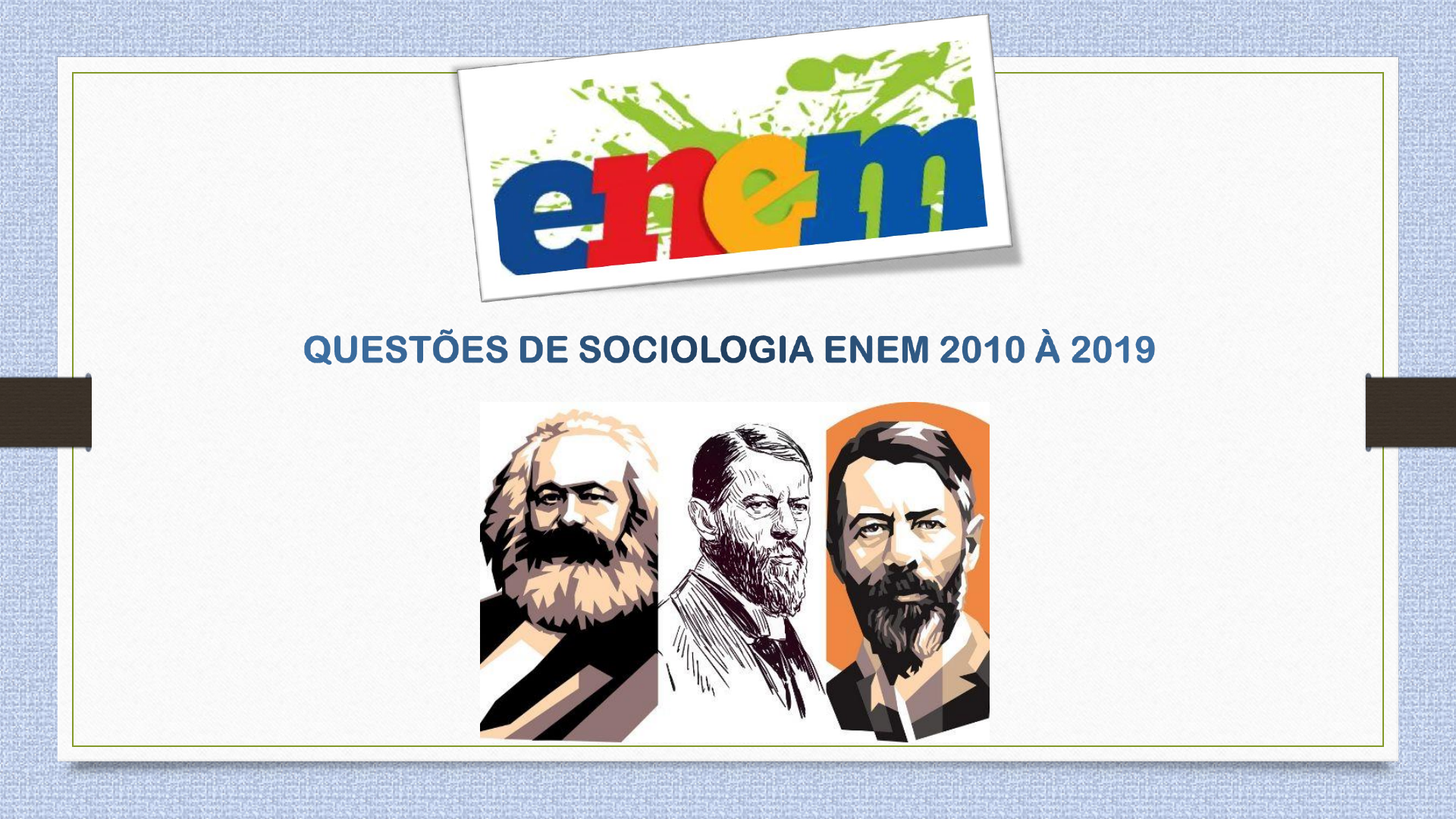 <p>Questões de sociologia ENEM</p><p>QUESTÕES A SEGUIR</p><p>FORAM TIRADAS DO</p><p>ENEM 2019/2º</p><p>APLICAÇÃO</p><p>GABARITO</p><p>QUESTÃO ALTERNATIVA</p><p>47 B</p><p>49 E</p><p>55 B</p><p>65 C</p><p>67 E</p><p>68 A</p><p>71 B</p><p>72 D</p><p>73 E</p><p>75 C</p><p>79 D</p><p>80 B</p><p>83 B</p><p>85 E</p><p>Questões de sociologia ENEM</p><p>QUESTÕES A SEGUIR</p><p>FORAM TIRADAS DO</p><p>ENEM 2018</p><p>GABARITO</p><p>QUESTÃO ALTERNATIVA</p><p>57 E</p><p>70 B</p><p>72 B</p><p>80 B</p><p>87 B</p><p>90 E</p><p>Questões de sociologia ENEM</p><p>QUESTÕES A SEGUIR</p><p>FORAM TIRADAS DO</p><p>ENEM 2018/2ª</p><p>APLICAÇÃO</p><p>GABARITO</p><p>QUESTÃO ALTERNATIVA</p><p>60 B</p><p>61 D</p><p>62 D</p><p>67 A</p><p>68 B</p><p>71 D</p><p>74 D</p><p>75 C</p><p>77 D</p><p>81 B</p><p>Questões de sociologia ENEM</p><p>QUESTÕES A SEGUIR</p><p>FORAM TIRADAS DO</p><p>ENEM 2017/1ª APLICAÇÃO</p><p>GABARITO</p><p>QUESTÃO ALTERNATIVA</p><p>50 C</p><p>58 C</p><p>64 A</p><p>74 B</p><p>84 B</p><p>89 D</p><p>90 E</p><p>Questões de sociologia ENEM</p><p>QUESTÕES A SEGUIR</p><p>FORAM TIRADAS DO</p><p>ENEM 2017/2ª</p><p>APLICAÇÃO</p><p>GABARITO</p><p>QUESTÃO ALTERNATIVA</p><p>46 D</p><p>55 B</p><p>56 C</p><p>58 A</p><p>60 A</p><p>62 E</p><p>63 E</p><p>66 5</p><p>68 C</p><p>71 A</p><p>77 C</p><p>78 B</p><p>81 A</p><p>90 D</p><p>Questões de sociologia ENEM</p><p>QUESTÕES A SEGUIR</p><p>FORAM TIRADAS DO</p><p>ENEM 2016/1ª</p><p>APLICAÇÃO</p><p>GABARITO</p><p>QUESTÃO ALTERNATIVA</p><p>05 C</p><p>07 D</p><p>11 E</p><p>15 E</p><p>19 B</p><p>22 E</p><p>24 C</p><p>25 B</p><p>32 D</p><p>41 A</p><p>Questões de sociologia ENEM</p><p>QUESTÕES A SEGUIR</p><p>FORAM TIRADAS DO</p><p>ENEM 2016/2ª</p><p>APLICAÇÃO</p><p>GABARITO</p><p>QUESTÃO ALTERNATIVA</p><p>03 B</p><p>09 B</p><p>11 B</p><p>14 B</p><p>19 B</p><p>21 E</p><p>24 B</p><p>26 D</p><p>27 E</p><p>31 A</p><p>32 B</p><p>36 B</p><p>39 B</p><p>44 E</p><p>45 C</p><p>Questões de sociologia ENEM</p><p>QUESTÕES A SEGUIR</p><p>FORAM TIRADAS DO</p><p>ENEM 2015/1ª APLICAÇÃO</p><p>GABARITO</p><p>QUESTÃO ALTERNATIVA</p><p>02 E</p><p>03 A</p><p>07 E</p><p>09 E</p><p>24 C</p><p>21 E</p><p>24 B</p><p>25 B</p><p>26 A</p><p>35 B</p><p>39 A</p><p>40 D</p><p>42 C</p><p>43 A</p><p>44 B</p><p>QUESTÕES A SEGUIR</p><p>FORAM TIRADAS DO</p><p>ENEM 2014/1ª APLICAÇÃO</p><p>GABARITO</p><p>QUESTÃO ALTERNATIVA</p><p>05 A</p><p>08 D</p><p>14 B</p><p>17 B</p><p>30 A</p><p>32 D</p><p>33 A</p><p>41 B</p><p>QUESTÕES A SEGUIR</p><p>FORAM TIRADAS DO</p><p>ENEM 2013/1ª APLICAÇÃO</p><p>GABARITO</p><p>QUESTÃO ALTERNATIVA</p><p>03 E</p><p>08 B</p><p>10 C</p><p>12 D</p><p>13 E</p><p>15 B</p><p>18 B</p><p>22 D</p><p>25 A</p><p>29 E</p><p>31 C</p><p>35 C</p><p>38 C</p><p>40 A</p><p>45 A</p><p>QUESTÕES A SEGUIR</p><p>FORAM TIRADAS DO</p><p>ENEM 2012/1ª APLICAÇÃO</p><p>GABARITO</p><p>QUESTÃO ALTERNATIVA</p><p>03 D</p><p>05 A</p><p>06 A</p><p>07 B</p><p>19 C</p><p>15 B</p><p>22 C</p><p>23 D</p><p>31 C</p><p>QUESTÕES A SEGUIR</p><p>FORAM TIRADAS DO</p><p>ENEM 2011/1ª APLICAÇÃO</p><p>GABARITO</p><p>QUESTÃO ALTERNATIVA</p><p>01 E</p><p>16 C</p><p>18 C</p><p>21 B</p><p>24 C</p><p>27 C</p><p>32 E</p><p>QUESTÕES A SEGUIR</p><p>FORAM TIRADAS DO</p><p>ENEM 2010/1ª</p><p>APLICAÇÃO</p><p>GABARITO</p><p>QUESTÃO ALTERNATIVA</p><p>30 E</p><p>38 E</p><p>39 E</p><p>40 D</p><p>43 C</p><p>45 D</p><p>2010</p><p>ESPERO QUE ESSE MATERIAL POSSA CONTRIBUIR COM O</p><p>ESTUDO DE VOCÊS!!!</p><p>FOI FEITO COM MUITO CARINHO.</p><p>BEIJOS E UMA ÓTIMA PREPARAÇÃO!</p><p>@anaclarapssc</p><p>anaclarapcarvalho@gmail.com</p>