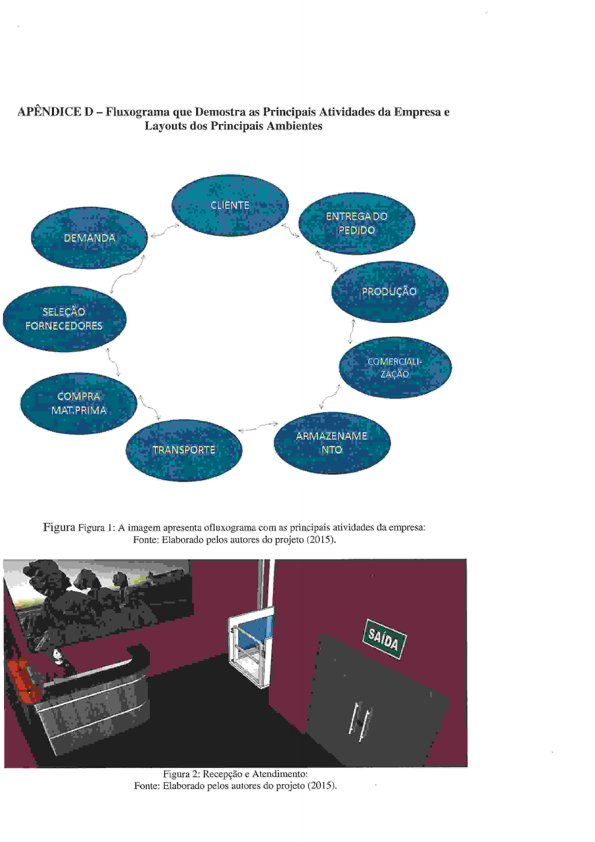 <p>APÊNDICE D - Fluxograma que Demostra as Principais Atividades da Empresa e Layouts dos Principais Ambientes CLIENTE ENTREGA DO PEDIDO DEMANDA PRODUÇÃO SELEÇÃO FORNECEDORES ZAÇÃO COMPRA MAT.PRIMA ARMAZENAME TRANSPORTE NTO Figura Figura 1: A imagem apresenta ofluxograma com as principais atividades da empresa: Fonte: Elaborado pelos autores do projeto (2015). Figura 2: Recepção e Atendimento: Fonte: Elaborado pelos autores do projeto (2015).</p>