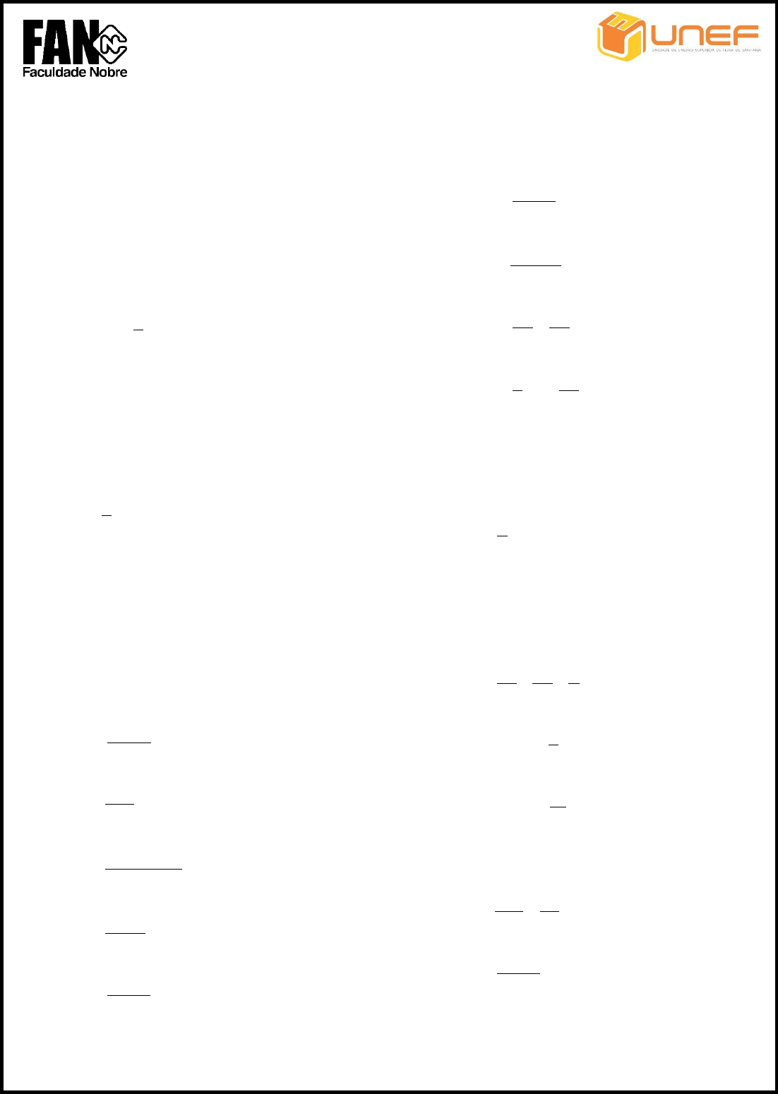 <p>1</p><p>ENGENHARIAS</p><p>CÁLCULO I</p><p>EXERCÍCIOS</p><p>A) Encontrar a derivada das funções abaixo:</p><p>1) f(r) = 2r</p><p>2) f(x) = 3x2 + 6x + 10</p><p>3) f(w) = aw2 + b</p><p>4) f(x) = 3x</p><p>2</p><p>1</p><p>14 </p><p>5) f(x) = (2x + 1)(3x2 + 6)</p><p>6) f(x) = (7x – 1)(x + 4)</p><p>7) f(x) = (3x5 – 1)(2 – x4)</p><p>8) f(x) = )3x5()3x5(</p><p>3</p><p>2 1 </p><p>9) f(x) = (x + 1)(x – 1)</p><p>10) f(x) = (x2 – 1)(3x – 1)(5x3 + 2x)</p><p>11) f(x) = 7(ax2 + bx + c)</p><p>12) f(u) = (4u2 – a)(a – 2u)</p><p>13) f(x) =</p><p>1x3</p><p>4x2</p><p></p><p></p><p>14) f(t) =</p><p>1t</p><p>1t</p><p></p><p></p><p>15) f(t) =</p><p>1t</p><p>1t5t3 2</p><p></p><p></p><p>16) f(t) =</p><p>2t</p><p>t2 2</p><p></p><p></p><p>17) f(x) =</p><p>2x5</p><p>x4</p><p></p><p></p><p>18) f(x) =</p><p>2x2</p><p>7x5</p><p></p><p></p><p>19) f(t) =</p><p>bt</p><p>)at( 2</p><p></p><p></p><p>20) f(x) =</p><p>54 x</p><p>5</p><p>x</p><p>3</p><p></p><p>21) f(x) =</p><p>6</p><p>4</p><p>x</p><p>2</p><p>x</p><p>2</p><p>1</p><p></p><p>22) y = – x2 + 3</p><p>23) s = 5t3 – 3t5</p><p>24) y = xx</p><p>3</p><p>4 3 </p><p>25) y = x2 + x + 8</p><p>26) w = 3z7 – 7z3 + 21z2</p><p>27) y =</p><p>4</p><p>x</p><p>2</p><p>x</p><p>3</p><p>x 23</p><p></p><p>28) w =</p><p>z</p><p>1</p><p>z3 2 </p><p>29) s =</p><p>2</p><p>1</p><p>t</p><p>4</p><p>t2 </p><p>30) y = 6x2 – 10x – 5x – 2</p><p>31) r =</p><p>s2</p><p>5</p><p>s3</p><p>1</p><p>2</p><p></p><p>32) y =</p><p>2x3</p><p>5x2</p><p></p><p></p><p>2</p><p>33) y =</p><p>1t</p><p>1t2</p><p></p><p></p><p>34) g(x) =</p><p>5,0x</p><p>4x2</p><p></p><p></p><p>35) u = (1 – t)(1 + t2) –1</p><p>36) y =</p><p>x</p><p>x4x1 </p><p>37) y = xx</p><p>2</p><p>3</p><p>2</p><p>x 2</p><p>4</p><p></p><p>38) y =</p><p>x</p><p>7x3 </p><p>39) f(x) =</p><p>1x3</p><p>x2</p><p></p><p>40) f(x) = xx</p><p>3</p><p></p><p>41) f(x) =</p><p>33 xx6 </p><p>42) f(x) =</p><p>1x</p><p>x</p><p>2 </p><p>43) f(x) = x)4x2(x 38 </p><p>44) f(x) =</p><p>1x</p><p>1x2</p><p></p><p></p><p>45) f(x) =</p><p>3x5</p><p>3x3 2</p><p></p><p></p><p>46) y =</p><p>1x</p><p>x</p><p></p><p>47) f(x) =</p><p>3x</p><p>1x</p><p>2 </p><p></p><p>48) y =</p><p>1x</p><p>x</p><p>x5</p><p></p><p></p><p>49) f(x) =</p><p>1x3</p><p>4x2</p><p></p><p></p><p>50) f(t) =</p><p>3</p><p>2 3t2</p><p>1t7</p><p></p><p></p><p></p><p></p><p></p><p></p><p></p><p></p><p>51) y =</p><p>x</p><p>xx</p><p>3</p><p></p><p>52) f(x) = 3 22 )2x6x3( </p><p>53) y =</p><p>3x</p><p>xx</p><p>2</p><p>4</p><p></p><p></p><p>B) Encontre a equação da reta tangente à curva xy , que seja paralela à reta 01y4x8 .</p><p>C) O raio r de uma esfera está variando, com o tempo, a uma taxa constante de 5 m/s. Com que taxa estará</p><p>variando o volume da esfera no instante em que r = 2 m?</p><p>D) A altura s (em pés) no instante t (em segundos) de um dólar de prata jogado do topo do monumento de</p><p>Washington é dada por 555t16s 2 .</p><p>1) Determine a velocidade média no intervalo [2, 3].</p><p>2) Determine as velocidades instantâneas quando t = 2 e t = 3.</p><p>3) Quanto tempo levará para a moeda atingir o chão?</p><p>4) Determine a velocidade da moeda quando ela atingir o chão.</p><p>E) Usando a definição, encontre f’(x) sabendo que</p><p>3x</p><p>2x</p><p>)x(f</p><p></p><p></p><p> .</p><p>F) A que taxa a área muda em relação ao diâmetro, quando o diâmetro é igual a 10 m?</p><p>3</p><p>G) A figura abaixo mostra a queda livre de uma bola pesada partindo do repouso no instante t = 0 s.</p><p>1) Quantos metros a bola cai nos primeiros 2 s?</p><p>2) Quais são sua velocidade, o módulo de sua velocidade e sua aceleração nesse instante?</p><p>H) Uma carga de dinamite lança uma pedra pesada para cima com uma velocidade de lançamento de</p><p>160 pés/s (aproximadamente 109 mi/h). A pedra atinge uma altura de 216160 tts pés após t segundos.</p><p>1) Qual a altura máxima atingida pela pedra?</p><p>2) Quais são a velocidade e o módulo da velocidade da pedra quando ela está a 256 pés do solo na</p><p>subida? E na descida?</p><p>3) Qual é a aceleração da pedra em qualquer instante t durante sua trajetória (depois da explosão)?</p><p>4) Quando a pedra atingirá o solo novamente?</p><p>I) Encontre uma equação da reta tangente à parábola 9x8xy 2 no ponto (3, –6) e esboce o gráfico</p><p>da função.</p><p>4</p><p>J) Sabemos que a área de um quadrado é função de seu lado. Determinar:</p><p>1) A taxa de variação média da área de um quadrado em relação ao lado quando este varia de 2,5m a</p><p>3m;</p><p>2) A taxa de variação da área em relação ao lado quando este mede 4m.</p><p>K) Sabendo que 8x12x3y 2 , determine o coeficiente angular da reta tangente ao gráfico desta</p><p>equação no ponto P(3, –1) e o ponto do gráfico em que a tangente é horizontal.</p><p>L) Uma cidade X é atingida por uma moléstia epidêmica. Os setores de saúde calculam que o número de</p><p>pessoas atingidas pela moléstia depois de um tempo t (medido em dias a partir do primeiro dia de</p><p>epidemia) é, aproximadamente, dado por </p><p>3</p><p>t</p><p>t64tf</p><p>3</p><p> .</p><p>1) Qual a razão da expansão da epidemia no tempo t = 4?</p><p>2) Qual a razão da expansão da epidemia no tempo t = 8?</p><p>3) Quantas pessoas serão atingidas pela epidemia no 5° dia?</p><p>M) Usando a definição, encontre a derivada da função 3x)x(f .</p><p>N) Analistas de produção verificaram que, em uma montadora x, o número de peças produzidas nas</p><p>primeiras t horas diárias de trabalho é dado por</p><p></p><p></p><p></p><p></p><p></p><p></p><p>8t4para),1t(200</p><p>4t0para),tt(50 2</p><p>.</p><p>1) Qual a razão de produção (em unidades por hora) após 3 horas de trabalho? E após 7 horas?</p><p>2) Quantas peças são produzidas na 8ª hora de trabalho?</p><p>O) A curva 2x2x)x(f 24 tem alguma tangente horizontal? Se tem, onde está?</p><p>P) Um reservatório de água está sendo esvaziado para a limpeza. A quantidade de água no r