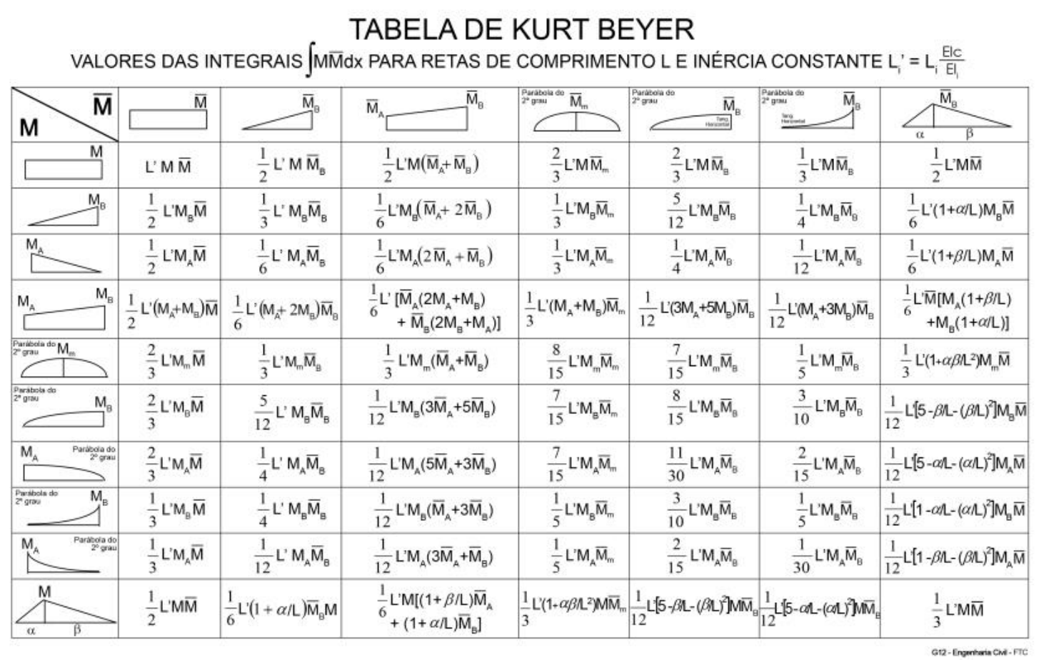 <p>KURT BEYER VALORES DAS INTEGRAIS PARA RETAS DE COMPRIMENTO L E INÉRCIA CONSTANTE Elc Parábola do do M M MB grau grau Mg grau M a B M L'MM 1/2 L'M M 2 Mg + Parábola do 3 8 15 15 do grau 3 3 12 15 10 MA Parábola do grau 2 3 11 2 30 do grau 3 4 10 M, do grau 12 1/2 3 30 M 2 a G12 Engenharia FTC</p>