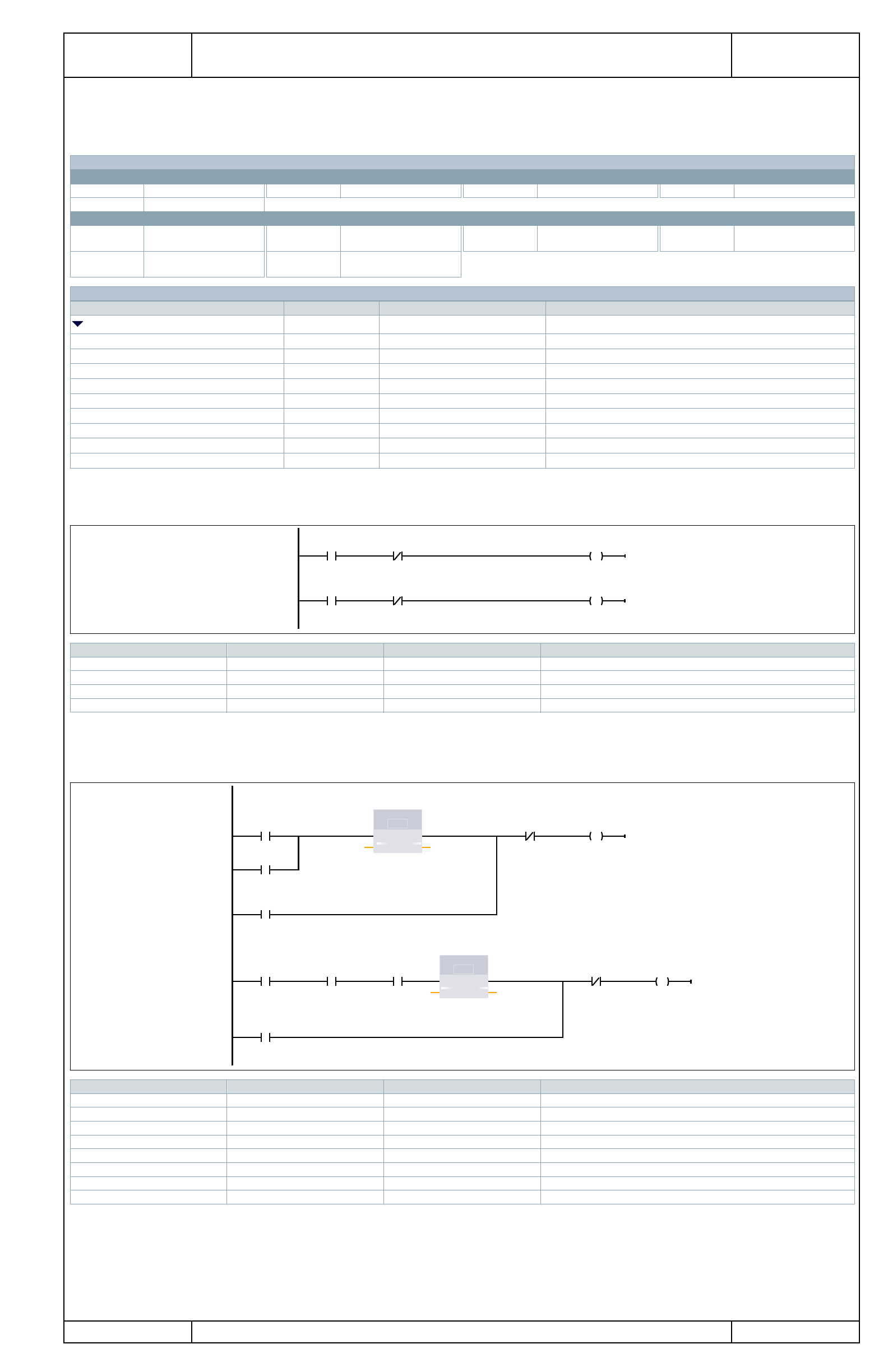 <p>Totally Integrated</p><p>Automation Portal</p><p>EXE ESTACIONAMENTO / PLC_1 [CPU 1215C AC/DC/Rly] / Program blocks</p><p>Main [OB1]</p><p>Main Properties</p><p>General</p><p>Name Main Number 1 Type OB Language LAD</p><p>Numbering automatic</p><p>Information</p><p>Title "Main Program Sweep (Cy‐</p><p>cle)"</p><p>Author Comment Family</p><p>Version 0.1 User-defined</p><p>ID</p><p>Main</p><p>Name Data type Default value Comment</p><p>Temp</p><p>ENTRAR Bool</p><p>SAIR Bool</p><p>CHEIO Bool</p><p>CANC_ABERTA Bool</p><p>CANC_FECHADA Bool</p><p>VAZIO Bool</p><p>ENTRANDO Bool</p><p>SAINDO Bool</p><p>Constant</p><p>Network 1: IDENTIFICA SE CARRO ESTÁ ENTRANDO OU SAINDO</p><p>"SP_SAIDA"</p><p>%I0.1%I0.1</p><p>"SP_ENTRADA"</p><p>%I0.0%I0.0</p><p>#ENTRAR</p><p>"SP_ENTRADA"</p><p>%I0.0%I0.0</p><p>"SP_SAIDA"</p><p>%I0.1%I0.1</p><p>#SAIR</p><p>Symbol Address Type Comment</p><p>"SP_ENTRADA" %I0.0 Bool</p><p>"SP_SAIDA" %I0.1 Bool</p><p>#ENTRAR Bool</p><p>#SAIR Bool</p><p>Network 2: LÓGICA DE ABERTURA E FECHAMENTO DE CANCELA</p><p>AO IDENTIFICAR QUE UM CARRO DESEJA ENTRAR OU SAIR É ENVIADO UM COMANDO PARA ABRIR A CANCELA</p><p>SE A CANCELA ESTIVER ABERTA E NENHUM CARRO ESTIVER PRÓXIMO AOS SENSORES APÓS4 SEGUNDOS HÁ UM COMANDO PARA FECHAR A CANCELA</p><p>TON</p><p>Time</p><p>TON</p><p>Time</p><p>#ENTRAR</p><p>"TON1"</p><p>%DB1%DB1</p><p>T#1S ...</p><p>#CANC_ABERTA "C_ABRIR"</p><p>%Q0.3%Q0.3</p><p>#SAIR</p><p>"C_ABRIR"</p><p>%Q0.3%Q0.3</p><p>#CANC_ABERTA "SP_ENTRADA"</p><p>%I0.0%I0.0</p><p>"SP_SAIDA"</p><p>%I0.1%I0.1</p><p>"TON2"</p><p>%DB2%DB2</p><p>T#3S ...</p><p>#CANC_FECHADA "C_FECHAR"</p><p>%Q0.4%Q0.4</p><p>"C_FECHAR"</p><p>%Q0.4%Q0.4</p><p>IN</p><p>PT</p><p>Q</p><p>ET</p><p>Time</p><p>IN</p><p>PT</p><p>Q</p><p>ET</p><p>Time</p><p>Symbol Address Type Comment</p><p>"C_ABRIR" %Q0.3 Bool</p><p>"C_FECHAR" %Q0.4 Bool</p><p>"SP_ENTRADA" %I0.0 Bool</p><p>"SP_SAIDA" %I0.1 Bool</p><p>#CANC_ABERTA Bool</p><p>#CANC_FECHADA Bool</p><p>#ENTRAR Bool</p><p>#SAIR Bool</p><p>Network 3: LÓGICA DE ESTADOS DA CANCELA</p><p>Como os sensores não ficam acionadosquando a cancela abre ou fecha, faz-se necessário manter o estado ativado em função do ultimo sensor atuado</p><p>Totally Integrated</p><p>Automation Portal</p><p>R</p><p>S</p><p>R</p><p>S</p><p>"C_FECHADA"</p><p>%I0.2%I0.2</p><p>#CANC_ABERTA</p><p>"C_ABERTA"</p><p>%I0.3%I0.3</p><p>#CANC_ABERTA</p><p>#CANC_FECHADA</p><p>#CANC_FECHADA</p><p>Symbol Address Type Comment</p><p>"C_ABERTA" %I0.3 Bool</p><p>"C_FECHADA" %I0.2 Bool</p><p>#CANC_ABERTA Bool</p><p>#CANC_FECHADA Bool</p><p>Network 4: CONTAGEM DE CARROS NO ESTACIONAMENTO</p><p>SE A CANCELA ESTIVER ABERTA, SE DETECTAR QUE O CARRO PASSOU PELO SENSOR DE ENTRADA, SE O SENTIDO DE DESLOCAMENTO DO CARRO NÃO FOR</p><p>"SAIR" E SE NÃO ESTIVER CHEIO, INCREMENTA A QUANTIDADE DE VAGAS UTILIZADAS.</p><p>SE A CANCELA ESTIVER ABERTA, SE NÃO ESTIVER VAZIO, SE IDENTIFICAR QUE O CARRO PASSOU PELO SENSOR DE PROXIMIDADE DA SAÍDA, SE O SENTIDO DE</p><p>DESLOCAMENTO NÃO FOR "ENTRAR", DECREMENTA A QUANTIDADE DE VAGAS UTILIZADAS.</p><p>P</p><p>CTUD</p><p>Int</p><p>P</p><p>#CANC_ABERTA "SP_ENTRADA"</p><p>%I0.0%I0.0</p><p>"Tag_3"</p><p>%M0.2%M0.2</p><p>#SAIR #CHEIO</p><p>"CONT1"</p><p>%DB3%DB3</p><p>false</p><p>false</p><p>30</p><p>#VAZIO</p><p>...</p><p>#CHEIO</p><p>#CANC_ABERTA #VAZIO "SP_SAIDA"</p><p>%I0.1%I0.1</p><p>"Tag_4"</p><p>%M0.3%M0.3</p><p>#ENTRAR</p><p>CU</p><p>CD</p><p>R</p><p>LD</p><p>PV</p><p>QU</p><p>QD</p><p>CV</p><p>Int</p><p>Symbol Address Type Comment</p><p>"SP_ENTRADA" %I0.0 Bool</p><p>"SP_SAIDA" %I0.1 Bool</p><p>"Tag_3" %M0.2 Bool</p><p>"Tag_4" %M0.3 Bool</p><p>#CANC_ABERTA Bool</p><p>#CHEIO Bool</p><p>#ENTRAR Bool</p><p>#SAIR Bool</p><p>#VAZIO Bool</p><p>Network 5: SINALIZAÇÃO DE SAÍDA</p><p>SE IDENTIFICAR QUE O CARRO VAI SAIR DO ESTACIONAMENTO, DEVE-SE ACIONAR O ALERTA DE MOVIMENTO NA PORTA DO ESTACIONAMENTO (SUBSTITUI A</p><p>SIRENE POR DOIS SINALEIROS VERDE-BRANCO).</p><p>TP</p><p>Time</p><p>TON</p><p>Time</p><p>TON</p><p>Time</p><p>#SAIR #CANC_ABERTA</p><p>"TP1"</p><p>%DB4%DB4</p><p>T#10S ...</p><p>"TON4".Q</p><p>"TON3"</p><p>%DB5%DB5</p><p>T#0.5S ...</p><p>"VERDE"</p><p>%Q0.0%Q0.0</p><p>"TON3".Q</p><p>"TON4"</p><p>%DB6%DB6</p><p>T#0.5S ...</p><p>"VERDE"</p><p>%Q0.0%Q0.0</p><p>"BRANCO"</p><p>%Q0.1%Q0.1</p><p>IN</p><p>PT</p><p>Q</p><p>ET</p><p>Time</p><p>IN</p><p>PT</p><p>Q</p><p>ET</p><p>Time</p><p>IN</p><p>PT</p><p>Q</p><p>ET</p><p>Time</p><p>Symbol Address Type Comment</p><p>"BRANCO" %Q0.1 Bool</p><p>"TON3".Q Bool</p><p>"TON4".Q Bool</p><p>"VERDE" %Q0.0 Bool</p><p>#CANC_ABERTA Bool</p><p>#SAIR Bool</p><p>Network 6: SINALIZAÇÃO DE ESTACIONAMENTO CHEIO</p><p>SE IDENTIFICAR QUE O ESTACIONAMENTO ESTÁ CHEIO ENTÃO O SINALEIRO VERMELHO FICA ACIONANDO DE FORMA INTERMITENTE PARA O OPERADOR.</p><p>Totally Integrated</p><p>Automation Portal</p><p>TON</p><p>Time</p><p>TON</p><p>Time</p><p>#CHEIO "TON7".Q</p><p>"TON6"</p><p>%DB7%DB7</p><p>T#0.5S ...</p><p>"VERMELHO"</p><p>%Q0.2%Q0.2</p><p>"TON6".Q</p><p>"TON7"</p><p>%DB8%DB8</p><p>T#0.5S ...</p><p>IN</p><p>PT</p><p>Q</p><p>ET</p><p>Time</p><p>IN</p><p>PT</p><p>Q</p><p>ET</p><p>Time</p><p>Symbol Address Type Comment</p><p>"TON6".Q Bool</p><p>"TON7".Q Bool</p><p>"VERMELHO" %Q0.2 Bool</p><p>#CHEIO Bool</p>