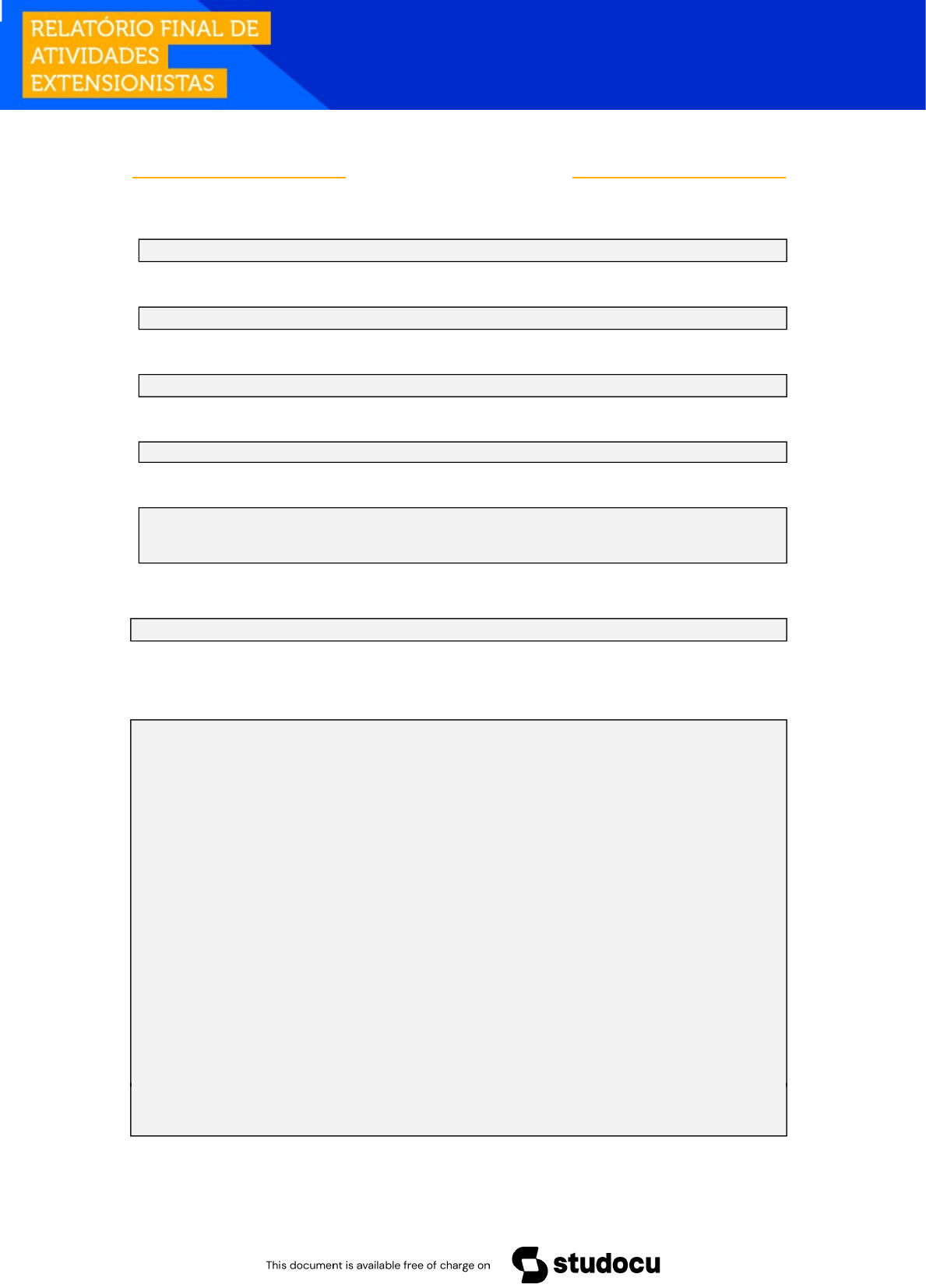 <p>DADOS DO ALUNO:</p><p>Aluno: [Nome completo]</p><p>Juliana Lopes Nogueira Campos</p><p>RA: [Número do RA do aluno]</p><p>3086049305</p><p>POLO / UNIDADE:</p><p>Trindade - Go</p><p>CURSO:</p><p>PEDAGOGIA - LICENCIATURA</p><p>COMPONENTE CURRICULAR:</p><p>COMPLEMENTARES ATIVIDADES - PROJETO DE EXTENSÃO II -</p><p>PEDAGOGIA</p><p>PROGRAMA DE EXTENSÃO:</p><p>PROGRAMA DE SUSTENTABILIDADE.</p><p>FINALIDADE E MOTIVAÇÃO:</p><p>O programa extensão voltado as ações de Sustentabilidade do curso de Pedagogia</p><p>Licenciatura possui a finalidade de apoiar a comunidade por meio da educação,</p><p>promovendo condições e reflexões para otimizar a relação da comunidade com o</p><p>ambiente natural e o ambiente construído, priorizando o cuidado e compreensão do</p><p>meio ambiente. Tais ações poderão reduzir impactos socioambientais negativos e criar</p><p>uma cultura regenerativa para gerar impactos positivos que irão refletir no meio</p><p>ambiente, que são importantes para possibilitar uma continuidade do uso de recursos</p><p>naturais de forma sustentável. Ao identificar as problemáticas ambientais da</p><p>comunidade os alunos terão a motivação para efetuar as ações de apoio relacionadas</p><p>ao curso, pelas quais poderão ser desenvolvidas competências técnicas e soft skills</p><p>específicas. Os conteúdos programáticos sugeridos para correlacionar as ações são:</p><p>Fundamentos epistemológicos e sociológicos da educação; Educação Ambiental;</p><p>Metodologias de ensino; Psicologia da Educação; Educação e diversidade; Pensamento</p><p>científico.</p><p>Os locais que poderão contemplar esse projeto são: Escolas; Instituições de Educação</p><p>Básica; Organizações não governamentais, Associações de bairro, dentre outros.</p><p>1</p><p>Baixado por Adiel Costa (adielcosta202@gmail.com)</p><p>lOMoARcPSD|28670943</p><p>https://www.studocu.com/pt-br?utm_campaign=shared-document&utm_source=studocu-document&utm_medium=social_sharing&utm_content=projeto-de-extensao-ii-juliana-lopes-nogueira-campos</p><p>COMPETÊNCIAS:</p><p>I - Executar técnicas básicas e aplicadas, em laboratório e em campo, no contexto</p><p>educacional;</p><p>II - Instrumentalizar a comunidade escolar para a prática social crítica, emancipatória e</p><p>transformadora;</p><p>III - Desenvolver produtos e processos de inovação científica, tecnológica e educacional.</p><p>PERFIL DO EGRESSO:</p><p>O perfil do egresso do curso de Pedagogia - Licenciatura idealizado pela IES</p><p>proporciona a formação docente, que valoriza a inclusão dos conhecimentos</p><p>produzidos pelas ciências para a Educação, contribuindo para a compreensão dos</p><p>processos de ensino-aprendizagem, voltado para uso de estratégias e recursos</p><p>pedagógicos, que favorecem o desenvolvimento dos saberes e eliminem as barreiras</p><p>de acesso ao conhecimento. A atuação no Programa de Sustentabilidade, demonstra</p><p>as habilidades para atuar com consciência junto a transformação social por meio da</p><p>educação, tornando o egresso um agente transformador da realidade presente, na</p><p>busca de melhoria da qualidade de vida.</p><p>SOFT SKILLS (COMPETÊNCIAS SOCIOEMOCIONAIS):</p><p>Planejamento e organização</p><p>Análise e resolução de problemas</p><p>OBJETIVOS DE APRENDIZAGEM:</p><p>O objetivo da extensão no Programa de Sustentabilidade do curso Pedagogia</p><p>Licenciatura está relacionado a transferir para a sociedade os conhecimentos</p><p>desenvolvidos no curso mediante projetos e ações de apoio na resolução de diversas</p><p>problemáticas no âmbito da sustentabilidade, auxiliando a comunidade e</p><p>potencializando o desenvolvimento do coletivo e a integração da escola com a</p><p>comunidade.</p><p>CONTEÚDOS:</p><p>I - Fundamentos epistemológicos e sociológicos da educação;</p><p>II - Educação Ambiental;</p><p>III - Metodologias de ensino;</p><p>2</p><p>Baixado por Adiel Costa (adielcosta202@gmail.com)</p><p>lOMoARcPSD|28670943</p><p>IV - Psicologia da Educação;</p><p>V - Educação e diversidade;</p><p>VI – Pensamento cientifico.</p><p>INDICAÇÕES BIBLIOGRÁFICAS:</p><p>TACHIZAWA, Takeshy. Gestão ambiental e responsabilidade social corporativa: os</p><p>paradigmas do novo contexto empresarial. 9. ed. São Paulo: Atlas, 2019.</p><p>DIAS, Reinaldo. Gestão ambiental: responsabilidade social e sustentabilidade. 3. ed.</p><p>São Paulo: Atlas, 2019.</p><p>AUGUSTINHO, Aline Michele Nascimento. Sociologia da educação. Porto Alegre:</p><p>Sagah, 2018.</p><p>FAZENDA, Ivani. Didática e interdisciplinaridade. Campinas: Papirus, 2015.</p><p>LONGAREZI, Andrea Maturano. Panorama da didática: ensino, prática e pesquisa.</p><p>Campinas: Papirus, 2017.</p><p>RODRIGUES, Ana Maria. Psicologia da aprendizagem e da avaliação. São Paulo:</p><p>Cengage, 2016.</p><p>VIANNA, Cláudia. Políticas de educação, gênero e diversidade sexual. São Paulo:</p><p>Autêntica, 2018.</p><p>RELATÓRIO FINAL:</p><p>Aluno e Aluna, após realizar suas atividades de extensão, é necessário que você o formalize,</p><p>enviando esse Relatório Final para ser avaliado junto ao seu Ambiente Virtual (AVA) e</p><p>também para você poder comprovar sua atuação.</p><p>Para o preenchimento, busque as anotações junto ao TEMPLATE PCDA para auxiliar na</p><p>apresentação das atividades desenvolvidas.</p><p>Todos os campos são de preenchimento obrigatório!</p><p>DESCRIÇÃO DA AÇÃO COM RESULTADOS ALCANÇADOS</p><p>Metas dos Objetivos de Desenvolvimento Sustentável (ODS) aderentes a este projeto:</p><p>CAMPO OBRIGATÓRIO – busque no seu template PDCA quais Metas você selecionou como</p><p>aderentes ao seu projeto, conforme cada Objetivo de Desenvolvimento Sustentável (ODS)</p><p>da Organização das Nações Unidas (ONU) que você explorou no seu planejamento.</p><p>Liste as Metas selecionadas (pelo menos uma opção):</p><p>15. Proteger, recuperar e promover o uso 
