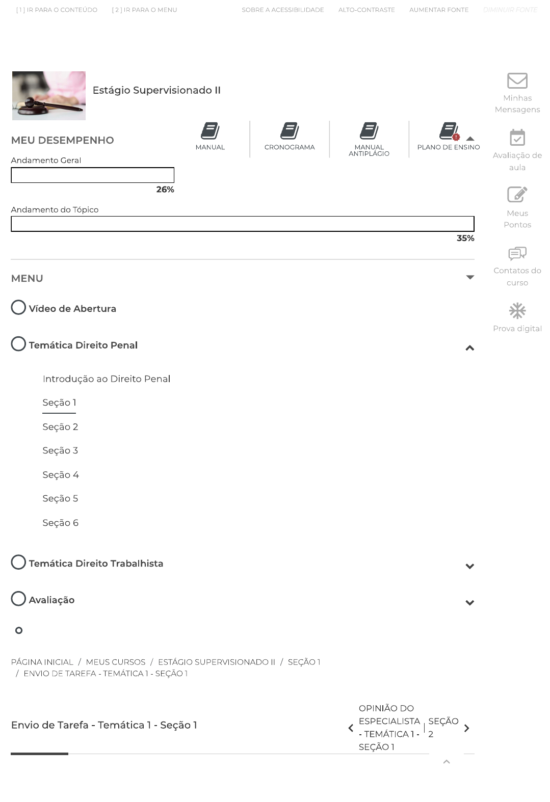 <p>[1] IR PARA CONTEÚDO [2] IR PARA MENU SOBRE A ACESSIBILIDADE ALTO-CONTRASTE AUMENTAR FONTE DIMINUIR FONTE Estágio Supervisionado II Minhas Mensagens MEU DESEMPENHO MANUAL CRONOGRAMA MANUAL PLANO DE ENSINO ANTIPLÁGIO Andamento Geral Avaliação de aula 26% Andamento do Tópico Meus Pontos 35% Contatos do MENU curso Vídeo de Abertura Prova digital Temática Direito Penal Introdução ao Direito Penal Seção 1 Seção 2 Seção 3 Seção 4 Seção 5 Seção 6 Temática Direito Trabalhista Avaliação PÁGINA INICIAL / MEUS CURSOS / ESTÁGIO SUPERVISIONADO II / SEÇÃO 1 / ENVIO DE TAREFA - TEMÁTICA 1 - SEÇÃO 1 OPINIÃO DO Envio de Tarefa - Temática 1 - Seção 1 ESPECIALISTA SEÇÃO - TEMÁTICA 2 SEÇÃO 1</p><p>[1] IR PARA CONTEÚDO [2] IR PARA MENU SOBRE A ACESSIBILIDADE ALTO-CONTRASTE AUMENTAR FONTE DIMINUIR FONTE Status de envio Número da Esta é a tentativa 2. tentativa Status de Reaberto envio Status da Não há notas avaliação Data de quinta, 13 abr 2023, 23:55 entrega Tempo 30 dias 9 horas restante Última terça, 14 mar 2023, 11:51 modificação Adicionar uma nova tentativa Feedback Pontuação 158 Avaliado em terça, 14 mar 2023, 11:51 Tentativas anteriores Tentativa 1: domingo, 12 mar 2023, 21:06 Status de Enviado para avaliação envio</p><p>[1] IR PARA CONTEÚDO [2] IR PARA O MENU SOBRE A ACESSIBILIDADE ALTO-CONTRASTE AUMENTAR FONTE DIMINUIR FONTE arquivos seção 01 - penal.docx Comentários ao envio Comentários Feedback Pontuação 900 Avaliado em terça, 14 mar 2023, 11:51 Avaliado por NPJ MARLUCE VIALE</p><p>[1] IR PARA CONTEÚDO [2] IR PARA MENU SOBRE A ACESSIBILIDADE ALTO-CONTRASTE AUMENTAR FONTE DIMINUIR FONTE de feedback Olá Rita, Segue abaixo feedback detalhado de sua atividade do NPJ. Promova a conferência dos itens com atenção, analisando na coluna "DESENVOLVIMENTO ESPERADO" os itens que deveriam constar em sua peç posteriormente, na coluna "CONSIDERAÇÕES" aqueles em que deixou de inc foram inseridos incorretamente. A conversão dos pontos, aplicada em cada seção, seguirá conforme págin Manual do Aluno. Em razão do envio tempestivo para segunda tentativa (até 7 dias úteis ant prazo de encerramento), abre-se nova possibilidade de submissão de sua com as devidas correções apontadas em feedback. Mas atenção ao prazo encerramento da seção! Qualquer dúvida estou à disposição. Atenciosamente, Marluce Viale Tutora do Núcleo de Prática Jurídica CRITÉRIOS DESENVOLVIMENTO CONSIDERAÇÕES PO ESPERADO DC Você ATENDEU de forma satisfatória ENDEREÇAMENTO AO JUÍZO DA VARA item, recebendo CORRETO CRIMINAL DA pontuação máxima no COMARCA DE BELO (100) HORIZONTE- MG quesito! Parabéns! RELAXAMENTO DA PRISÃO EM TIPO DE AÇÃO OU NÃO ATENDIDO! FLAGRANTE PEÇA (100)</p><p>[1] IR PARA CONTEÚDO [2] IR PARA MENU SOBRE A ACESSIBILIDADE ALTO-CONTRASTE AUMENTAR FONTE DIMINUIR FONTE PREÂMBULO / Fulano de tal, solteiro, Você ATENDEU brasileiro, portador da de forma QUALIFICAÇÃO carteira de identidade satisfatória o (100) XXX, residente e item, recebendo domiciliado na rua XXX, pontuação nesta capital, vem, por máxima no meio de seu quesito! advogado(a) Parabéns! (procuração anexa), apresentar RELAXAMENTO DA PRISÃO EM FLAGRANTE, com fundamento no art. 5°, LXV, da Constituição Federal e art. 310, I, do Código de Processo Penal, pelos seguintes fatos e fundamentos:</p><p>[1] IR PARA CONTEÚDO [2] IR PARA MENU SOBRE A ACESSIBILIDADE ALTO-CONTRASTE AUMENTAR FONTE DIMINUIR FONTE dos fatos, de acordo com DOS FATOS Você ATENDEU que foi apresentado no (200) enunciado. É importante de forma satisfatória o se atentar a coesão, item, recebendo coerência e precisão das informações descritas. pontuação máxima no Apresente um esquema lógico com introdução, quesito! Parabéns! desenvolvimento e conclusão. Importante mencionar que Fulano de tal foi flagrado dentro de uma cafeteria aplicando um suposto golpe por meio de seu computador pessoal que conseguia invadir outros dispositivos informáticos e fazer com que as mais variadas vítimas depositassem quantias em seu nome, achando que algum parente ou amigo estava solicitando.</p><p>[1] IR PARA CONTEÚDO PARA MENU SOBRE A ACESSIBILIDADE ALTO-CONTRASTE AUMENTAR FONTE DIMINUIR FONTE DO DIREITO DA ILEGALIDADE DA Você ATENDEU PRISÃO EM de forma (300) FLAGRANTE satisfatória item, recebendo ART. 310, caput, CPP pontuação máxima no ART. 5° LVX CF quesito! Parabéns! DA INEXISTÊNCIA DOS PRESSUPOSTOS E REQUISITOS DA PREVENTIVA ART. 312 CPP Atenção: não se trata da simples transcrição de artigos. Você deverá evidenciar seu raciocínio jurídico e argumentação.</p><p>[1] IR PARA CONTEÚDO [2] IR PARA O MENU SOBRE A ACESSIBILIDADE ALTO-CONTRASTE AUMENTAR FONTE DIMINUIR FONTE respeitosamente, requer Você ATENDEU o relaxamento da de forma DO PEDIDO prisão ilegal, haja vista satisfatória que: (100) item, recebendo pontuação máxima no a) A audiência de quesito! custódia não fora Parabéns! realizada dentro do prazo máximo de 24 horas, na forma do art. 310, caput, CPP; b) Não se enquadra a situação fática em nenhuma hipótese autorizadora da prisão preventiva prevista no art. 312 do CPP; c) Requer, ainda, a imediata expedição de alvará de soltura em nome do acusado, para que ele possa, em liberdade, defender-se no curso da ação penal, comprometendo-se a comparecer a todos os atos processuais, d) Por fim, seja ouvido ilustre representante do Ministério Público. Nestes termos, pede Você ATENDEU deferimento. de forma ENCERRAMENTO satisfatória o (100) item, recebendo Local, data. pontuação máxima no quesito! Parabéns! Nome e assinatura do advogado. N° da OAB.</p><p>[1] IR PARA CONTEÚDO [2] IR PARA MENU SOBRE A ACESSIBILIDADE ALTO-CONTRASTE AUMENTAR FONTE DIMINUIR FONTE PONTUAÇÃO FINAL DO ALUNO: Após encerramento da seção, leia também 'Espelho de e seria a peça ideal para cada situação-problema trabalhada. 2018. Todos os direitos reservados.</p>
