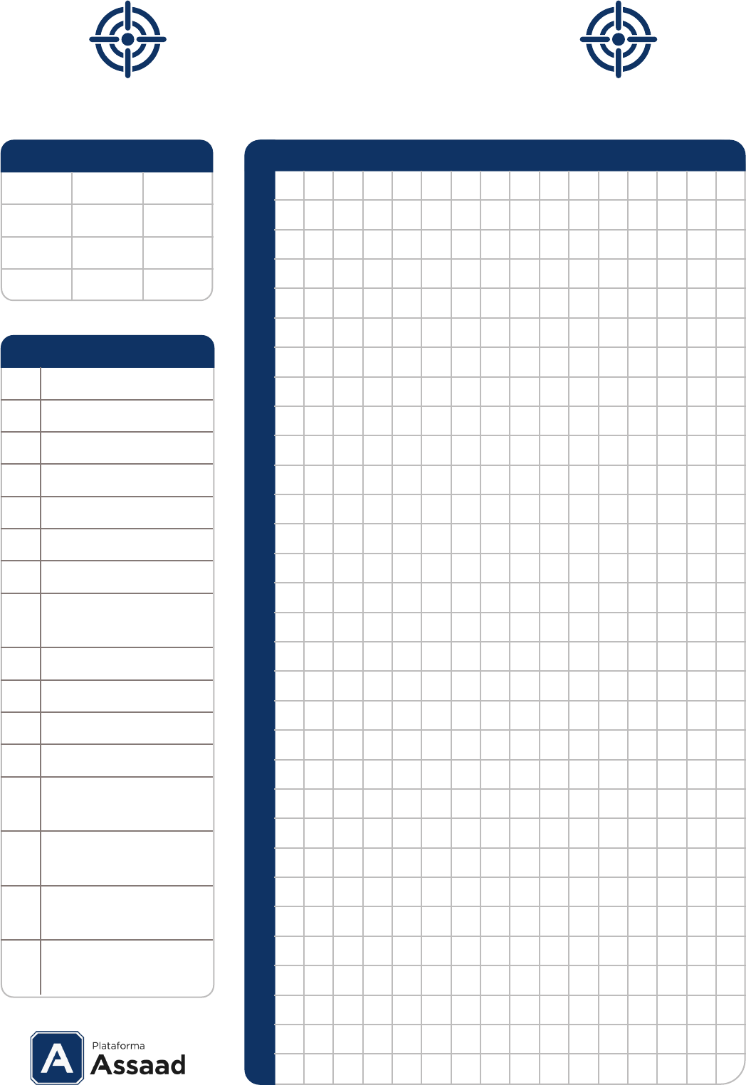 <p>Hábitos</p><p>A Acordar :</p><p>B Telas OFF</p><p>C Copo d’água</p><p>D 5 a 20 min de Sol</p><p>E Banho rápido</p><p>F Roupa bonita</p><p>G Higiene Bucal</p><p>H Oração ou prática</p><p>espiritual</p><p>I Leitura calma</p><p>J Estudo + RAD</p><p>K Almoço sem telas</p><p>L Academia</p><p>M</p><p>Beber água (peso</p><p>em kg x 0,4)</p><p>N</p><p>Mapeamento dos</p><p>pontos fortes</p><p>O</p><p>Mapeamento dos</p><p>pontos fracos</p><p>P</p><p>Planejamento dia</p><p>seguinte</p><p>A B C D E F G H I J K L M N O P</p><p>1</p><p>2</p><p>3</p><p>4</p><p>5</p><p>6</p><p>7</p><p>8</p><p>9</p><p>10</p><p>11</p><p>12</p><p>13</p><p>14</p><p>15</p><p>16</p><p>17</p><p>18</p><p>19</p><p>20</p><p>21</p><p>22</p><p>23</p><p>24</p><p>25</p><p>26</p><p>27</p><p>28</p><p>29</p><p>30</p><p>31</p><p>MÊS</p><p>JAN FEV MAR</p><p>ABR MAI JUN</p><p>JUL AGO SET</p><p>OUT NOV DEZ</p><p>Habit Tracker</p><p>MEDICINA</p><p>luuhviih10@gmail.com - IP: 187.180.168.63</p>