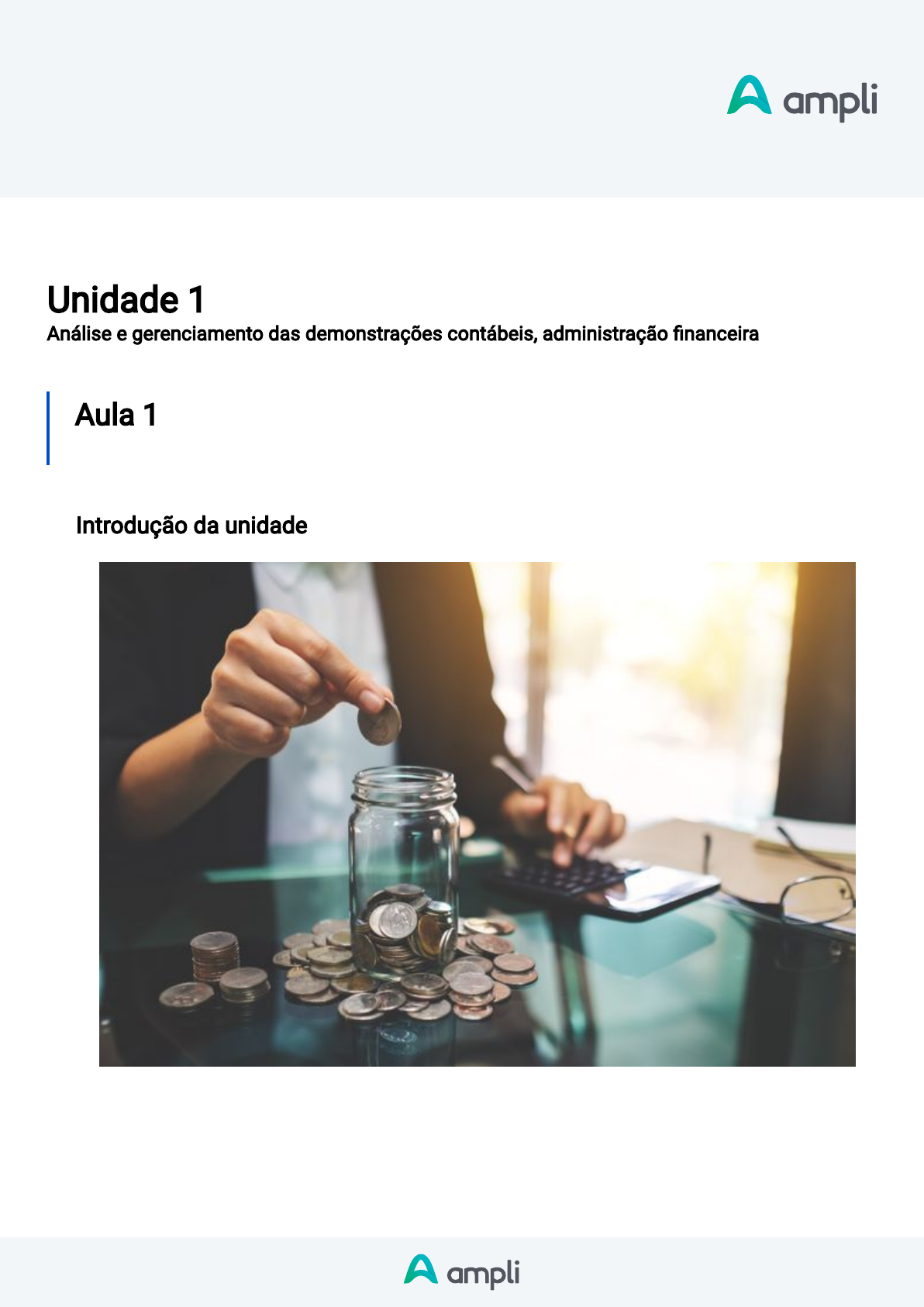 <p>Disciplina</p><p>Capital de Giro e Análise</p><p>Financeira</p><p>Unidade 1</p><p>Análise e gerenciamento das demonstrações contábeis, administração �nanceira</p><p>Aula 1</p><p>Administrador �nanceiro e organização da administração</p><p>Introdução da unidade</p><p>Nesta primeira unidade de ensino, vamos estudar a administração �nanceira e análise e</p><p>gerenciamento das demonstrações contábeis, possibilitando a você conhecer a organização da</p><p>administração �nanceira e suas funções, as dimensões a serem analisadas na avaliação</p><p>�nanceira de empresas e as demonstrações contábeis.</p><p>Disciplina</p><p>Capital de Giro e Análise</p><p>Financeira</p><p>A partir deste momento, você começa a desenvolver a competência técnica de conhecer os</p><p>conceitos e as técnicas de análise das demonstrações contábeis e de aplicações de índices</p><p>�nanceiros, para apoio à tomada de decisão na gestão �nanceira das organizações.</p><p>Para iniciar nossa jornada, apresentaremos a você a seguinte situação de realidade pro�ssional</p><p>que será o ponto de partida para o aprendizado:</p><p>Carolina era proprietária de uma empresa do setor de alimentos, em que ela mesma produzia</p><p>geleias caseiras. Seu negócio começou pequeno e também realizava a administração �nanceira,</p><p>mas com o tempo seu empreendimento prosperou e despertou interesse de um grande</p><p>concorrente. Carolina, então, tornou-se sócia desse grupo empresarial, também do ramo de</p><p>alimentos, que fez grandes investimentos na empresa. A gestão �nanceira antes realizada por</p><p>ela, com ajuda da pessoa que realizava sua contabilidade, agora é atribuída a uma diretoria</p><p>�nanceira, que decidiu estruturar o departamento e contará com sua ajuda nesse desa�o!</p><p>Prepare-se, então, para desenvolver suas competências e ajudar Carolina ao longo das aulas</p><p>desta unidade de ensino, em situações que envolvam a análise e gerenciamento das</p><p>demonstrações contábeis e administração �nanceira.</p><p>Introdução da aula</p><p>Qual é o foco da aula?</p><p>Disciplina</p><p>Capital de Giro e Análise</p><p>Financeira</p><p>Nesta aula, você estudará a evolução da administração �nanceira, suas funções e sua relação</p><p>com os objetivos da empresa.</p><p>Objetivos gerais de aprendizagem</p><p>Ao longo desta aula, você irá:</p><p>Estudar a evolução da administração �nanceira;</p><p>Examinar as funções da administração �nanceira com enfoque nas atividades de</p><p>planejamento �nanceiro;</p><p>Criar uma apresentação relacionando os objetivos da área com os objetivos da organização</p><p>e traçando o per�l de cada cargo.</p><p>Situação-Problema</p><p>Vamos relembrar a situação enfrentada por Carolina? É uma jovem que empreende no ramo</p><p>alimentício. Começou fabricando geleias de sabores exóticos e ingredientes de alta qualidade,</p><p>com as quais presenteava amigos e parentes em ocasiões especiais. Com o tempo, isso se</p><p>tornou um negócio que administrava com a ajuda de dois funcionários e uma pessoa terceirizada</p><p>que realizava a contabilidade e ajudava na administração �nanceira. Em dado momento, uma</p><p>grande empresa do setor alimentício comprou parte da empresa de Carolina. Com a entrada</p><p>dessa nova pessoa sócia, investimentos foram realizados e a empresa cresceu</p><p>signi�cativamente. Carolina continuou como principal gestora.</p><p>A empresa teve uma média de crescimento em seu faturamento nos últimos cinco anos de 10%</p><p>ao ano, realizou a abertura de uma �lial nos últimos cinco anos e possui uma linha diversi�cada</p><p>de produtos que atende a diversos segmentos no mercado nacional. Em relação ao</p><p>posicionamento da empresa no mercado interno, atualmente ela ocupa o 3º lugar em seu</p><p>segmento. A empresa pretende atuar no mercado internacional e também ocupar a 1ª posição</p><p>no mercado interno.</p><p>A gestão �nanceira, que antes era realizada por Carolina, com ajuda da pessoa que realiza sua</p><p>contabilidade, agora é atribuída a uma diretoria �nanceira que está estruturando o departamento</p><p>que desenvolve e supervisiona contratos com pessoas parceiras e prestadoras de serviços da</p><p>organização, elabora balancetes mensais, relatórios gerenciais, gerencia as atividades ligadas à</p><p>contabilidade, faturamento, controladoria e custos. Também administra a realização do</p><p>orçamento anual e assegura o cumprimento do planejamento estratégico.</p><p>Você foi a pessoa contratada para a diretoria �nanceira e vai estruturar o departamento. Já</p><p>possui um orçamento para contratar três funcionários: uma pessoa para gerente, outra para</p><p>analista e outra para estagiar, e tem um desa�o: para contratação dos funcionários qual o per�l</p><p>desejado para cada cargo?</p><p>Na próxima semana, haverá uma reunião com pessoas sócias, e você precisa fazer uma</p><p>apresentação dos objetivos e atribuições da área e seu organograma.</p><p>Disciplina</p><p>Capital de Giro e Análise</p><p>Financeira</p><p>Nessa apresentação, você deve relacionar os objetivos da área com os objetivos da organização.</p><p>Apresentará também o per�l para os cargos de gerência, análise e estágio. Como descrever o</p><p>per�l ideal para os cargos?</p><p>Para auxiliá-lo nessa tarefa, vamos estudar, nesta aula, a evolução da administração �nanceira,</p><p>suas funções e a relação da administração �nanceira com os objetivos da empresa.</p><p>Finanças diz respeito a dinheiro, não é mesmo? Praticamente todas as pessoas físicas ou</p><p>jurídicas ganham, gastam ou investem dinheiro (ainda não estamos falando de lucro). Portanto, a</p><p>administração �nanceira afeta empresas de todos os tipos. E afeta diretamente a vida de todas</p><p>as pessoas. Tod