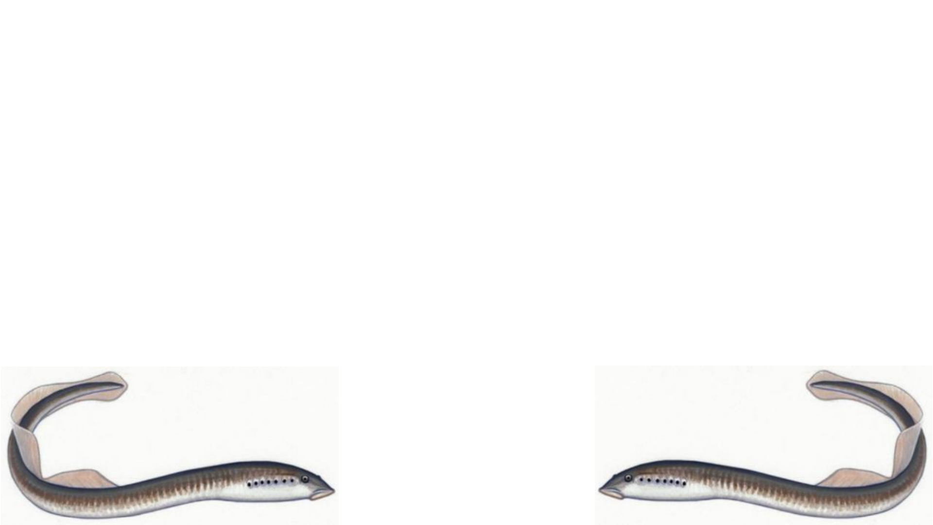 <p>ZOOLOGIA DE CORDADOS I</p><p>Agnatha: Cyclostomata</p><p>CIÊNCIAS BIOLÓGICAS</p><p>UNIVERSIDADE ESTADUAL DE SANTA CRUZ</p><p>Dr. Antônio Jorge Suzart Argôlo</p><p>Dr. Cleverson Zapelini dos Santos</p><p>Me. Leonardo Borges Ribas</p><p>DCB - Zoologia</p><p>O QUE VEREMOS HOJE</p><p>Evolução de Craniata:</p><p>• Transição de Chordata para Craniata</p><p>• Modificações musculoesqueléticas</p><p>• Músculos axiais dos cordados são usados para locomoção</p><p>• Aprimoramentos fisiológicos</p><p>Agnatha:</p><p>• Agnathas Primitivos, Ostracodermos e Conodontes;</p><p>• Classe Myxini;</p><p>• Classe Petromyzontida</p><p>Origem de Gnathostomata</p><p>REVISANDO...</p><p>DESCENDÊNCIA DOS EQUINODERMOS</p><p> Notocorda: órgão hidrostático</p><p> Tubo nervoso dorsal</p><p> Bolsas ou fendas faríngeas</p><p> Cauda pós anal</p><p> Coração ventral: circulação fechada</p><p> Endoesqueleto</p><p> Endóstilo</p><p>REVISANDO...</p><p>REVISANDO...</p><p> CEPHALOCHORDATA</p><p>Hickman, C. P. et al. Principios Integrados de Zoologia. Guanabara Koogan, (2018).</p><p>REVISANDO...</p><p> UROCHORDATA (Tunicata)</p><p>Hickman, C. P. et al. Principios Integrados de Zoologia. Guanabara Koogan, (2018).</p><p>REVISANDO...</p><p>Hickman, C. P. et al. Principios Integrados de Zoologia. Guanabara Koogan, (2018).</p><p>EVOLUÇÃO DE CRANIATA</p><p>Craniata = Vertebrata + Agnatha</p><p>Craniata, descreve mais precisamente o</p><p>grupo, pois todos têm um crânio (caixa</p><p>craniana óssea ou cartilaginosa),</p><p>enquanto alguns peixes sem</p><p>mandíbulas não possuem vértebras.</p><p>EVOLUÇÃO DE CRANIATA</p><p>Pough et al. (2022) - Vertebrate Life, 10ª edition, Oxford University Press.</p><p>Estrutura generalizada de cordados comparada com</p><p>estrutura generalizada de vertebrados</p><p>Os espinhos neurais nos vertebrados são estruturas</p><p>segmentares que flanqueiam o cordão nervoso e são</p><p>precursores das vértebras verdadeiras;</p><p>O ânus do cordado não vertebrado é agora chamado de</p><p>cloaca, porque é a saída não apenas do intestino, mas</p><p>também dos sistemas urinário e reprodutivo.</p><p>Transição de Chordata para Craniata</p><p>EVOLUÇÃO DE CRANIATA</p><p>Modificações musculoesqueléticas</p><p>O endoesqueleto permite um maior crescimento, com menor</p><p>custo para a formação estrutural;</p><p>Resistência estrutural do osso: fixação dos músculos;</p><p>Na maioria dos vertebrados, os centros vertebrais substituíram a</p><p>notocorda e possuem espinhos neurais que fornecem maior área</p><p>para os músculos segmentares (miômeros) se prenderem.</p><p>Hickman, C. P. et al. Principios Integrados de Zoologia. Guanabara Koogan, (2018).</p><p>EVOLUÇÃO DE CRANIATA</p><p>Os cordados possuem blocos sequenciais e</p><p>sobrepostos de músculos axiais chamados</p><p>miômeros (contração: ondulação do corpo);</p><p>Anfioxo: miômeros têm uma forma de V;</p><p>Craniata: miômeros têm formato de W.</p><p>Pough et al. (2022) - Vertebrate Life, 10ª edition, Oxford University Press.</p><p>Músculos axiais dos cordados são</p><p>usados para locomoção</p><p>Maior controle sobre o corpo</p><p>EVOLUÇÃO DE CRANIATA</p><p>Aprimoramentos fisiológicos</p><p>A faringe ganha músculos que servirão para bombear água;</p><p>Origina-se as brânquias, que são altamente vascularizadas.</p><p>Assim, a função da faringe passa a ser de trocas gasosas.</p><p>O coração ventral com três câmaras e eritrócitos com</p><p>hemoglobina aumentaram o transporte de nutrientes,</p><p>gases e outras substâncias;</p><p>Os vertebrados possuem sistemas</p><p>circulatórios fechados; isto é, as</p><p>artérias e veias são conectadas por</p><p>capilares.</p><p>EVOLUÇÃO DE CRANIATA</p><p>Maior complexidade do sistema nervoso e sensorial</p><p>Extremidade anterior do cordão nervoso: cérebro tripartido</p><p>(prosencéfalo, mesencéfalo e metencéfalo) protegido por</p><p>um crânio ósseo ou cartilaginoso;</p><p>Os órgãos sensoriais especiais:</p><p>• Olhos;</p><p>• Mecanorreceptores (ouvidos): equilíbrio e recepção do som;</p><p>• Quimiorreceptores (paladar e olfato);</p><p>• Linha lateral: receptores de vibrações;</p><p>• Eletrorreceptores: detecção de correntes elétricas</p><p>AGNATHA</p><p>Pough et al. (2022) - Vertebrate Life, 10ª edition, Oxford University Press.</p><p>Cyclostomata:</p><p>• Petromyzontida e Myxini</p><p>AGNATHA</p><p>AGNATHA: QUAL É SEU ANCESTRAL?</p><p>Yunnanozoon</p><p>China</p><p>Yunnanozoon tem classificação incerta:</p><p>cefalocordado, cordado-basal, hemicordado,</p><p>vertebrado-basal, deuterostômio-basal,</p><p>ambulacrário, parente de Ecdysozoa.</p><p>Pikaia gracilens</p><p>Folhelho Burgess: sítio fossilífero localizado em Colúmbia Britânica, Canadá</p><p>Pikaia: Criatura em forma de fita (cerca de 5 cm);</p><p>presença de notocorda e de miômeros identifica</p><p>claramente como um cordado e sugere que ela possa</p><p>ser um cefalocordado primitivo.</p><p>AGNATHA: QUAL É SEU ANCESTRAL?</p><p>Haikouella lanceolata</p><p>Vários registros da China</p><p>Apresenta vários caracteres que a identificam como um</p><p>cordado: notocorda, faringe e cordão nervoso dorsal,</p><p>músculos faríngeos, olhos duplicados e cérebro dilatado,</p><p>são características de vertebrados.</p><p>Porém, não é um vertebrado: faltam evidências de vários</p><p>atributos diagnósticos de vertebrados, que incluem crânio,</p><p>ouvido e um telencéfalo distinto.</p><p>Hickman, C. P. et al. Principios Integrados de Zoologia. Guanabara Koogan, (2018).</p><p>AGNATHA: QUAL É SEU ANCESTRAL?</p><p>Haikouichthys ercaicunensis(Shu, 2003)</p><p>Análise cladística indica que o animal é provavelmente um peixe agnato primitivo, mais intimamente relacionado</p><p>com as lampreias;</p><p>Possui cabeça e tronco distintos;</p><p>Cabeça tem pelo menos seis e talvez nove brânquias;</p><p>Existem vários segmentos (m