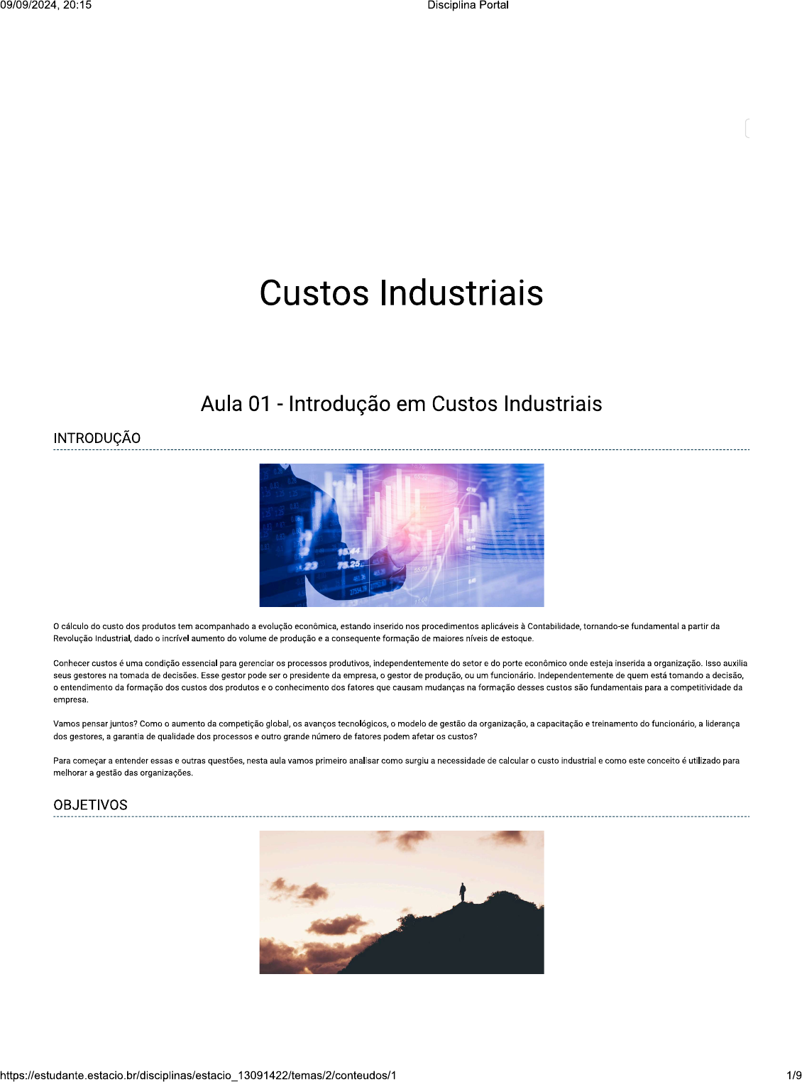 <p>09/09/2024, 20:15 Disciplina Portal Custos Industriais Aula 01 - Introdução em Custos Industriais INTRODUÇÃO o cálculo do custo dos produtos tem acompanhado a evolução econômica, estando inserido nos procedimentos aplicáveis à Contabilidade, tornando-se fundamental a partir da Revolução Industrial, dado o incrível aumento do volume de produção e a consequente formação de maiores níveis de estoque. Conhecer custos é uma condição essencial para gerenciar os processos produtivos, independentemente do setor e do porte econômico onde esteja inserida a organização. Isso auxilia seus gestores na tomada de decisões. Esse gestor pode ser o presidente da empresa, o gestor de produção, ou um funcionário. Independentemente de quem está tomando a o entendimento da formação dos custos dos produtos e o conhecimento dos fatores que causam mudanças na formação desses custos são fundamentais para a competitividade da empresa. Vamos pensar juntos? Como o aumento da competição global, os avanços tecnológicos, o modelo de gestão da organização, a capacitação e treinamento do a liderança dos gestores, a garantia de qualidade dos processos e outro grande número de fatores podem afetar os custos? Para começar a entender essas e outras questões, nesta aula vamos primeiro analisar como surgiu a necessidade de calcular o custo industrial e como este conceito é utilizado para melhorar a gestão das organizações. OBJETIVOS 1/9</p><p>09/09/2024, 20:15 Disciplina Portal Descrever a evolução do conceito de Contabilidade de Custos. Reconhecer a importância do cálculo do custo como ferramenta para cálculo do valor dos produtos. Identificar os pontos de conexão da disciplina com as demais áreas de conhecimento. https://estudante.estacio.br/disciplinas/estacio_13091422/temas/2/conteudos/1 2/9</p><p>09/09/2024, 20:15 Disciplina Portal Fonte: o comércio existiu durante todo período medieval e teve um forte crescimento a partir do século empreendedor Acesso em: 12 set. 2017. EVOLUÇÃO DOS SISTEMAS CONTÁBEIS E INFORMAÇÃO DE CUSTOS A necessidade de apurar custos tem sua origem nos procedimentos adotados na Era Renascentista (glossário), período Pós-Feudalismo, quando renascem as atividades comerciais entre cidades Com o fortalecimento do comércio, surge a preocupação em relação ao valor do patrimônio e da atividade comercial. Controlar o estoque de mercadorias e apurar o custo da mercadoria vendida era a grande dificuldade dos comerciantes, na época. A evolução do comércio trouxe, então a necessidade de modificação do processo de produção, pois era necessário ter mais produtos para atender a demanda do mercado. Com o surgimento da máquina a vapor e sua utilização na indústria e nos transportes e, posteriormente, com o uso do motor à combustão, o processo de produção Aumentou muito o volume produzido, o que deu maior produtividade aos fatores de produção, fortalecendo o crescimento das Essa fase constitui a chamada Revolução Industrial (glossário). QUE SÃO os FATORES DE PRODUÇÃO? Em um conceito mais genérico, fatores de produção são todos os recursos utilizados para obtenção de um produto (mercadoria bem tangível; ou um serviço bem intangível). Da Economia, tiramos o conceito de que esses fatores são terra, capital e trabalho, que, ao serem utilizados, dentro de um processo produtivo, geram produtos. Fatores de produção Terra Capital Trabalho No nosso caso, sempre que nos referirmos aos fatores de produção, estaremos tratando de: Fatores de produção e de de Os gastos realizados com esses fatores de produção irão compor custo dos produtos. Insumo Todo e qualquer tipo de material utilizado para a produção de um determinado tipo de produto, mas que não, necessariamente, faz parte dele. Matéria-prima Todo o material que está agregado no produto e que é empregado na sua fabricação, tornando-se parte dele. 3/9</p><p>09/09/2024, 20:15 Disciplina Portal CONSEQUÊNCIAS DA REVOLUÇÃO INDUSTRIAL Vamos entender melhor a consequência da Revolução Industrial para o cálculo do valor dos estoques. É fácil concluir que a preocupação anterior de apuração do valor do patrimônio da atividade comercial foi estendida para a avaliação do valor da produção realizada. Ou seja, surge a necessidade de compreender o custo dos recursos empregados e como eles são apropriados nos produtos industrializados. Atenção A preocupação deixa de ser somente a de controlar o estoque de mercadorias e o custo da mercadoria vendida e passa a ser o controle da produção, determinando o total de recursos consumidos pelo item produzido e a apuração do custo do produto acabado e do produto vendido. COMPLICANDO A FUNÇÃO DO CONTADOR Imagine como ficou mais complexa a função do contador! o que antes era simplesmente o registro do valor pago nas compras das mercadorias, para formação de seu estoque, passou a ser o registro de uma série de valores pagos pelos fatores de produção utilizados e que precisavam ser alocados aos produtos. Assim, acompanhando a evolução dos sistemas produtivos, os sistemas de registros de dados contábeis ganhavam importância, por representar a forma de organizar os dados e gerar para os administradores as informações necessárias para a tomada de decisão. Os sistemas de informações de apuração de custos surgem nesse contexto. PRINCIPAIS CONCEITOS DA CONTABILIDADE Agora vamos estudar os principais conceitos tratados pela Contabilidade Financeira, Contabilidade de Custos e Contabilidade Gerencial e como utilizar cada uma Contabilidade Financeira A Contabilidade Geral ou Financeira refere-se à informação contábil, sendo estruturada segundo conceitos, princípios e procedimentos legais estabelecidos pelos órgãos reguladores nacionais e internacionais. Requer uma padronização, de forma a garantir uniformidade na apresentação dos resultados para as entidades externas, ou seja, fo
