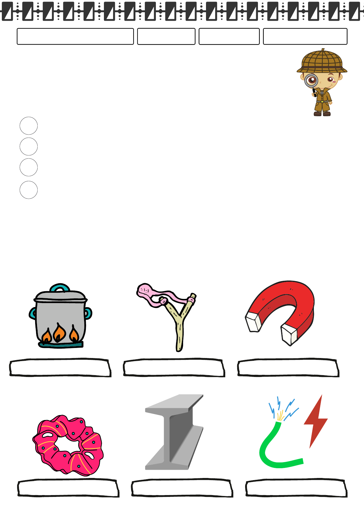 <p>Nome: Ano: Data: Prof.(a):</p><p>A capacidade que um objeto possui de atrair outros objetos.</p><p>Capacidade dos materiais de conduzir energia térmica, calor.</p><p>A relação entre a massa do objeto e o volume que ele ocupa.</p><p>1.Densidade 2.Elasticidade</p><p>3.Condutibilidade térmica 4.Magnetismo</p><p>Atividade de Ciências</p><p>Propriedades físicas dos materiais</p><p>2. Escreva a característica principal dos materiais abaixo.</p><p>1. Relacione corretamente.</p><p>Os materiais podem ser deformados e voltar à forma original.</p>