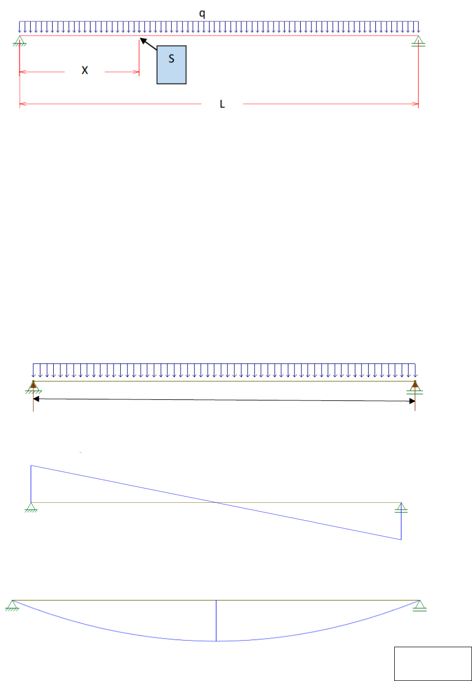 <p>Condições de equilíbrio</p><p>ΣFy = 0:</p><p>𝑉𝐴 + 𝑉𝐵 − 10 𝑘𝑁𝑚 ∙ 4,5𝑚</p><p>𝑉𝐴 + 𝑉𝐵 = 45 𝑘𝑁 …(𝑖)</p><p>Σ 𝑀𝐴 = 0:</p><p>−10 𝑘𝑁/𝑚 ∙ 4,5 𝑚 ∙ 2,25 𝑚 + 𝑉𝐵 ∙ 4,5 𝑚 = 0</p><p>𝑉𝐵 = 22,5 𝑘𝑁</p><p>Em (𝑖):</p><p>𝑉𝐴 = 22,5 𝑘𝑁</p><p>Esforço Cortante</p><p>Momentos Fletores Reais (M)</p><p>1,2 m</p><p>4,5 m</p><p>10 KN/m</p><p>10 KN/m 10 KN/m</p><p>4,5m</p><p>22</p><p>,5</p><p>0</p><p>K</p><p>N</p><p>22</p><p>,5</p><p>0</p><p>K</p><p>N</p><p>22,5</p><p>-22,5</p><p>25,31</p><p>(10x4,5²)/8</p><p>Sistema Virtual</p><p>Condições de equilíbrio</p><p>Σ𝐹𝑦 = 0:</p><p>𝑉𝐴 + 𝑉𝐵 − 1 = 0</p><p>𝑉𝐴 + 𝑉𝐵 = 1 … 𝑖</p><p>Σ𝑀𝐴 = 0:</p><p>−1 ∙ 1,2 𝑚 + 𝑉𝐵 ∙ 4,5 𝑚 = 0</p><p>𝑉𝐵 = 0,27</p><p>Em (𝑖):</p><p>𝑉𝐴 = 0,73</p><p>Momentos Fletores Virtuais (M)</p><p>1,2m</p><p>4,5m</p><p>4,5 m</p><p>1,2 m</p><p>0</p><p>,7</p><p>3</p><p>0</p><p>,2</p><p>7</p><p>0,73</p><p>-0,27</p><p>0,876</p><p>0,73 x 1,2</p><p>O deslocamento Δ resulta na integral</p><p>Parábola x Triangulo</p><p>K= 25,21 KNm</p><p>L= 4,5m</p><p>𝑖 = 0,876m 𝑎𝐿 = 1,2𝑚 → 𝑎 = 1,2𝑚/4,5𝑚 = 0,27</p><p>L= 4,5m 𝑏𝐿 = 3,3𝑚 → 𝑏 = 3,3𝑚/4,5𝑚 = 0,73</p><p>Na tabela, calcula-se a integral:</p><p>1/3 (1 + ab) KIL</p><p>= (1/3) . (1+0,27. 0,73) . (25,21KNm) . (0,876m) . (4,5m)</p><p>= 39.655 KNm³</p><p>Finalmente, calcula-se a deformação desejada:</p><p>=</p><p>39.655 KNm³</p><p>200 𝐺𝑃𝑎 .10^−4M4</p><p>= 0,001 m = 0,1 cm</p><p>Questão 2</p><p>Para a viga da questão anterior, calcule o deslocamento no meio do vão.</p><p>Condições de equilíbrio</p><p>ΣFy = 0:</p><p>𝑉𝐴 + 𝑉𝐵 − 10 𝑘𝑁𝑚 ∙ 4.5𝑚</p><p>𝑉𝐴 + 𝑉𝐵 = 45 𝑘𝑁 … 𝑖</p><p>Σ 𝑀𝐴 = 0:</p><p>−10 𝑘𝑁/𝑚 ∙ 4,5 𝑚 ∙ 2,25 𝑚 + 𝑉𝐵 ∙ 4,5 𝑚 = 0</p><p>𝑉𝐵 = 22,5 𝑘𝑁</p><p>Em 𝑖 :</p><p>𝑉𝐴 = 22,5 𝑘𝑁</p><p>Sistema Real</p><p>Esforço Cortante</p><p>Momentos Fletores Reais (M)</p><p>Sistema Virtual</p><p>Condições de equilíbrio</p><p>Σ𝐹𝑦 = 0:</p><p>𝑉𝐴 + 𝑉𝐵 − 1 = 0</p><p>𝑉𝐴 + 𝑉𝐵 = 1 … 𝑖</p><p>Σ𝑀𝐴 = 0: −1 ∙ 2,25 𝑚 + 𝑉𝐵 ∙ 4,5 𝑚 = 0</p><p>𝑉𝐵 = 0,5</p><p>Em 𝑖 :</p><p>𝑉𝐴 = 0,5</p><p>22,5</p><p>-22,5</p><p>25,31</p><p>(10x4,5²)/8</p><p>4,5m</p><p>2,25m</p><p>2,25m 2,25m</p>