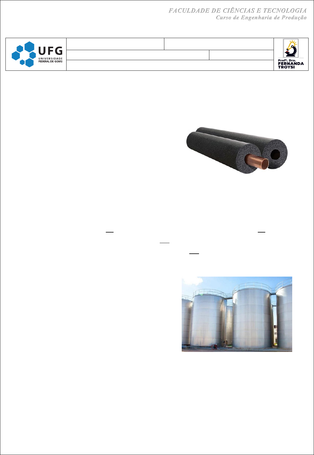 <p>FACULDADE DE CIÊNCIAS E TECNOLOGIA</p><p>Curso de Engenharia de Produção</p><p>1. Um tubo de cobre (k=372 W/mK) de ¼” de diâmetro externo e 1/32” de espessura é utilizado para conduzir</p><p>fluido refrigerante em sistemas de ar-condicionado. O tubo é isolado com polietileno expandido (0,035W/mK)</p><p>com 6mm de espessura. Sabendo-se que a temperatura da superfície interna do tubo está a -30°C e a temperatura</p><p>externa do isolante está a DUN°C, pede-se:</p><p>a) Faça o desenho esquemático.</p><p>b) Determine o fluxo de calor por unidade de</p><p>comprimento do tubo;</p><p>c) Determine a temperatura da interface entre o tubo</p><p>e o isolante;</p><p>2. Um tanque de armazenamento atmosférico é um tipo de reservatório que é projetado para armazenar líquidos</p><p>ou gases a pressão atmosférica, ou seja, à pressão da atmosfera circundante. Esses tanques são frequentemente</p><p>usados para armazenar uma variedade de substâncias, como água, petróleo, produtos químicos, produtos</p><p>alimentícios, e até mesmo gases como o oxigênio ou o nitrogênio.</p><p>Considere um tanque cilíndrico com 20 m de diâmetro externo e 40 m de altura, composto por uma espessura</p><p>interna de 45mm em inox (40</p><p>𝑊</p><p>𝑚𝐾</p><p>); e uma espessura externa de 20 mm em alumínio (205</p><p>𝑊</p><p>𝑚𝐾</p><p>); ( Sabendo-se</p><p>que a temperatura do da gasolina (ℎ𝑔𝑎𝑠𝑜𝑙𝑖𝑛𝑎 = 150</p><p>𝑊</p><p>𝑚²𝐾</p><p>) que está dentro do tanque não deve exceder a 20°C e</p><p>a temperatura externa do ar atmosférico está a 37°C (ℎ𝐴𝑅 = 20</p><p>𝑊</p><p>𝑚²𝐾</p><p>), pede-se:</p><p>a) O desenho esquemático bem como o circuito</p><p>apresentando todas as informações relevantes.</p><p>b) Calcule a taxa de transferência de calor.</p><p>c) Dê as possibilidades para redução da taxa de</p><p>transferência de calor neste sistema:</p><p>3. Um tubo de aço (k=22 Btu/h.ft.°F) de 1/2" de espessura e 10" de diâmetro externo é utilizado para</p><p>conduzir ar aquecido. O tubo é isolado com 2 camadas de materiais isolantes : a primeira de isolante</p><p>de alta temperatura (k=0,051 Btu/h.ft.°F) com espessura de 1" e a segunda com isolante à base de</p><p>magnésia (k=0,032 Btu/h.ft.°F) também com espessura de 1". Sabendo que estando a temperatura da</p><p>superfície interna do tubo a 1000 °F a temperatura da superfície externa do segundo isolante fica em</p><p>32 °F, pede-se: a) Determine o fluxo de calor por unidade de comprimento do tubo b) Determine a</p><p>temperatura da interface entre os dois isolantes c) Compare os fluxos de calor se houver uma troca de</p><p>posicionamento dos dois isolantes</p><p>ENGENHARIA DE PRODUÇÃO FÊNOMENOS DE TRANSPORTE II</p><p>LISTA 2 – Tópicos 5_6 CIT0084-2024/1</p><p>Professora: Dra. Fernanda Dias Troysi</p><p>FACULDADE DE CIÊNCIAS E TECNOLOGIA</p><p>Curso de Engenharia de Produção</p><p>4. Um tanque de aço ( k = 40 Kcal/h.m.°C ), de formato esférico e raio interno de 0,5 m e espessura de 5</p><p>mm, é isolado com 1½" de lã de rocha ( k = 0,04 Kcal/h.m.°C ). A temperatura da face interna do</p><p>tanque é 220 °C e a da face externa do isolante é 30 °C. Após alguns anos de utilização, a lã de rocha</p><p>foi substituída por outro isolante, também de 1½" de espessura, tendo sido notado então um aumento</p><p>de 10% no calor perdido para o ambiente (mantiveram-se as demais condições). Determinar: a) fluxo</p><p>de calor pelo tanque isolado com lã de rocha; b) o coeficiente de condutividade térmica do novo</p><p>isolante; c) qual deveria ser a espessura (em polegadas) do novo isolante para que se tenha o mesmo</p><p>fluxo de calor que era trocado com a lã de rocha.</p><p>5. Uma barra cilíndrica de 5 cm de diâmetro e condutividade térmica de 280W/mK é utilizada para</p><p>aumentar a taxa de calor retirada de uma superfície mantida a 120°C, exposta a um ambiente a 15°C,</p><p>com o coeficiente convectivo igual a 25W/(m².K). Se a aleta tem 80% de eficiência, calcule o seu</p><p>comprimento, considerando a aleta muito longa.</p><p>6. Considere uma superfície quadrada, de lado l=25 cm, em contato com dois fluidos diferentes, como</p><p>mostrado na figura. O lado interno é aquecido pela passagem do fluido 1, com coeficiente convectivo</p><p>ℎ1 = 50𝑊/𝑚²𝐾, que mantém a superfície da placa a uma temperatura constante de 100°C. Pelo lado</p><p>externo, aletado, passa um fluido frio (fluido 2), a uma temperatura de 20°C, proporcionando um</p><p>coeficiente convectivo igual a ℎ2 = 10𝑊/𝑚²𝐾. Foram dispostas 16 aletas circulares, de 2 cm de</p><p>diâmetro e 17 cm de comprimento cada, igualmente distribuídas pela placa. As aletas, de cobre (k =</p><p>401 W/Mk), foram isoladas na ponta. Considerando que a temperatura externa da placa é igual à</p><p>temperatura de sua superfície interna, determine:</p><p>a) A taxa de calor dissipada por uma aleta;</p><p>b) A taxa de calor dissipada pelo conjunto superfície + aletas;</p><p>c) A temperatura do fluido quente, considerando que todo o calor fornecido pelo fluido quente seja</p><p>dissipado para o fluido frio.</p><p>FACULDADE DE CIÊNCIAS E TECNOLOGIA</p><p>Curso de Engenharia de Produção</p><p>7. Um dissipador de calor, consiste em uma placa plana de alumínio (k = 175 Kcal/h.m.°C) de resistência</p><p>térmica desprezível com aletas retangulares de 1,5mm de espessura e 12mm de altura, espaçadas entre</p><p>si de 12mm, ocupando toda a largura da placa. O lado com aletas esta em contato com ar a 40°C e</p><p>coeficiente de convecção de (h = 25 Kcal/h.m².°C). O lado sem aletas está fixado sobre uma superfície</p><p>a 150°C. Calcule por unidade de área da placa o fluxo de calor.</p><p>8. Determine o aumento do calor dissipado por unidade de tempo, que poderia ser obtido de uma placa</p><p>plana, usando-se por unidade de área 6400 aletas de alumínio (k =