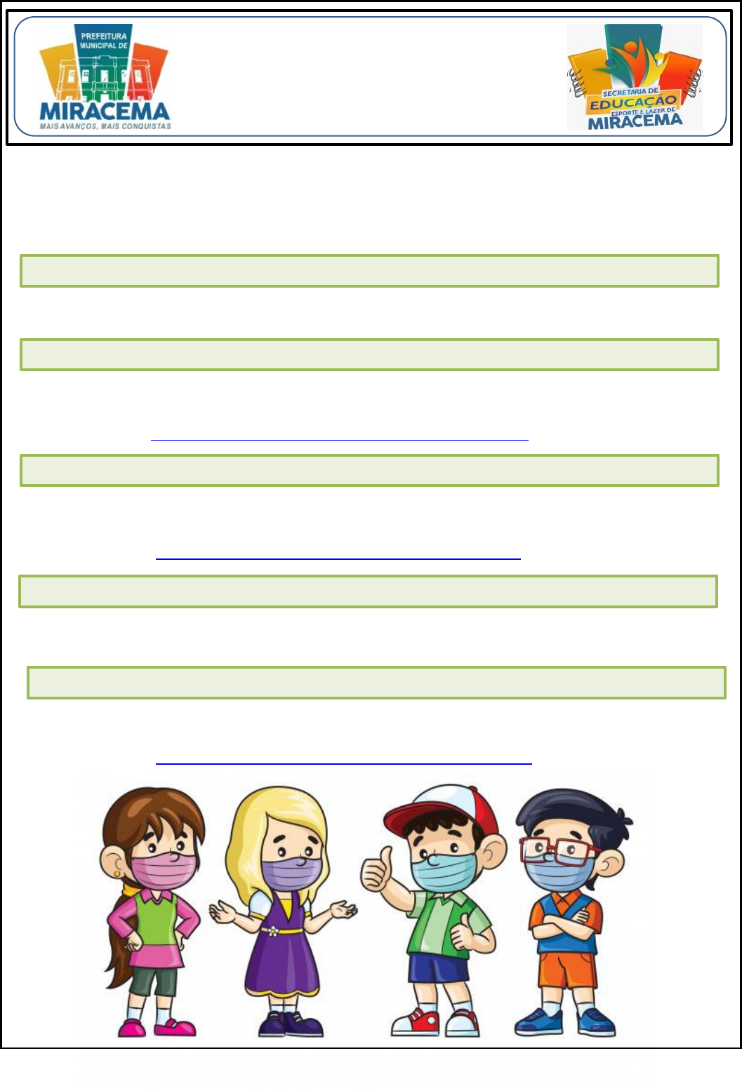 Todas as atividades da semana disponíveis na plataforma podem ser respondidas no caderno. Antes de responder a atividade, a criança deverá colocar o cabeçalho do dia. Roteiro de atividades semana 02 – 5º ano – 08/02 a 12/02 • Fazer a atividade 1 disponível na plataforma (Como usar o dicionário); • Fazer a atividade 2 disponível na plataforma (Sistema de Numeração Decimal); • Assistir ao vídeo https://www.youtube.com/watch?v=QSHuc2XKboc • Fazer a atividade 3 disponível na plataforma (Emprego das letras maiúsculas); • Assistir ao vídeo https://www.youtube.com/watch?v=TneB_u7fjUA • Fazer a atividade 4 disponível na plataforma (Resolução de Problemas); • Fazer a atividade 5 disponível na plataforma (Usos dos Porquês e Produção Textual); • Assistir ao vídeo https://www.youtube.com/watch?v=B9gYdW_Zkkk 08/02/2021 - SEGUNDA-FEIRA 09/02/2021 - TERÇA-FEIRA 10/02/2021 - QUARTA-FEIRA 11/02/2021 - QUINTA-FEIRA 12/02/2021 - SEXTA-FEIRA PREFEITURA MUNICIPAL DE MIRACEMA SECRETARIA MUNICIPAL DE EDUCAÇÃO ENSINO REMOTO MUNICIPAL - 2021 https://www.youtube.com/watch?v=QSHuc2XKboc https://www.youtube.com/watch?v=TneB_u7fjUA https://www.youtube.com/watch?v=B9gYdW_Zkkk =============================== ATIVIDADE 1 =============================== Como usar o dicionário O dicionário oferece ao usuário o significado das palavras. Elas aparecem em ordem alfabética e recebem o nome de verbete. O verbete oferece diversas informações sobre a palavra: a explicação do que ela quer dizer, mostrando exemplos, a classe gramatical (substantivo, adjetivo, verbo etc), a divisão silábica, o plural, o superlativo, a pronuncia etc. Veja um exemplo: Para facilitar a localização de um verbete, os dicionários apresentam no alto de cada página duas palavras de referência. A palavra da esquerda indica o primeiro verbete da página e a palavra da direita indica o ultimo verbete da página. Sabendo a ordem alfabética, descobrimos se a palavra que procuramos se encontra ou não entre essas duas palavras de referência. Atividades: Dicionário - Ordem Alfabética 1) Coloque as palavras de cada grupo em ordem alfabética: a) livro dado rua Carlos violão _____________________________________________________________________________ b) baleia ilha Marcelo peteca unha _____________________________________________________________________________ c) salada xarope escova Fábio galo _____________________________________________________________________________ d) zebra Thales amarelo quiabo navio _____________________________________________________________________________ PREFEITURA MUNICIPAL DE MIRACEMA SECRETARIA MUNICIPAL DE EDUCAÇÃO ENSINO REMOTO MUNICIPAL - 2021 Aluno (a):_________________________________________________________________________ Escola ___________________________________________________________________________ Data: ____/____/_____ 5º ano Professor (a) ________________________________ 2) Em cada grupo de palavras, há uma que não está corretamente colocada na ordem alfabética. Sublinhe-a usando lápis verde. a) elefante – fazenda – jardim – grama – herói – infantil b) loja – mercadoria – restaurante – teatro – cinema – urso 3) Escreva V para verdadeiro ou F para falso: No dicionário: a) Disfarce vem depois de distraído. ( ) b) Pastel vem antes de pássaro. ( ) c) Grade vem depois de grande. ( ) d) Pedreiro vem depois de pedra. ( ) 4) João estava em dúvida quanto à grafia da palavra “caridosa”. Não se lembrava se escrevia com “s” ou “z”. Decidiu procurar no dicionário, mas não encontrou. Explique por que ele não a encontrou. _____________________________________________________________________________ _____________________________________________________________________________ _____________________________________________________________________________ 5) Observe os significados da palavra planta e depois numere a segunda coluna de acordo com a primeira. a) O prego entrou na planta do meu pé. b) D.Joana rega a planta todo dia. c) A planta da casa foi feita pelo engenheiro. d) O homem planta a árvore no quintal. e) A menina planta-se na porta esperando o namorado. ( ) vegetal ( ) plano detalhado de imóvel ( ) coloca-se ( ) parte do pé que assenta no chão ( ) fincar na terra =============================== ATIVIDADE 2 =============================== SISTEMA DE NUMERAÇÃO DECIMAL O sistema de numeração decimal é de base 10, ou seja, utiliza 10 algarismos (símbolos) diferentes para representar todos os números. Formado pelos algarismos 0, 1, 2, 3, 4, 5, 6, 7, 8, 9, é um sistema posicional, ou seja, a posição do algarismo no número modifica o seu valor. É o sistema de numeração que nós usamos. Ele foi concebido pelos hindus e divulgado no ocidente pelos árabes, por isso, é também chamado de "sistema de numeração indo-arábico. • Possui símbolos diferentes para representar quantidades de 1 a 9 e um símbolo para representar a ausência de quantidade (zero). • Como é um sistema posicional, mesmo tendo poucos símbolos, é possível representar todos os números. • As quantidades são agrupadas de 10 em 10, e recebem as seguintes denominações: 10 unidades = 1 dezena 10 dezenas = 1 centena 10 centenas = 1 unidade de milhar, e assim por diante PREFEITURA MUNICIPAL DE MIRACEMA SECRETARIA MUNICIPAL DE EDUCAÇÃO ENSINO REMOTO MUNICIPAL - 2021 Aluno (a):_________________________________________________________________________ Escola ___________________________________________________________________________ Data: ____/____/_____ 5º ano Professor (a) ________________________________ Exemplos: Atividades 1) Represente com algarismos as quantidades representadas. a) b) c) d) 2) Complete: a) 200 unidades = _______ dezenas b) 200 unidades = _______ centenas c) 1 centena = _______ dezenas d) 1 centena = _______ unidades 3) Registre os numerais. =============================== ATIVIDADE 3 =============