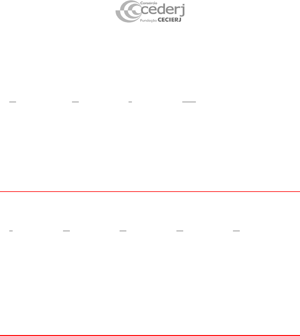 <p>Fundação Centro de Ciências e Educação Superior a Distância do Estado do Rio de Janeiro</p><p>Centro de Educação Superior a Distância do Estado do Rio de Janeiro</p><p>EP5 – Gabarito – Métodos Determińısticos I</p><p>Neste EP vamos trabalhar o conteúdo estudado na Aula 6 do Caderno Didático.</p><p>Exerćıcio 1 Escreva a expressão decimal associada ao número racional dado pela fração:</p><p>a)</p><p>12</p><p>5</p><p>b) −27</p><p>18</p><p>c)</p><p>2</p><p>6</p><p>d)</p><p>1998</p><p>6000</p><p>Solução:</p><p>a) Efetuando, a divisão obtemos 12/5 = 2, 4.</p><p>b) Efetuando, a divisão obtemos −27/18 = −1, 5.</p><p>c) Efetuando, a divisão obtemos 2/6 = 0, 33333 . . . .</p><p>d) Efetuando, a divisão obtemos 1998/6000 = 0, 333.</p><p>Exerćıcio 2 Escreva a expressão decimal associada ao número racional dado pela fração:</p><p>a)</p><p>7</p><p>9</p><p>b)</p><p>4</p><p>33</p><p>c)</p><p>44</p><p>3</p><p>d)</p><p>16</p><p>11</p><p>e)</p><p>20</p><p>7</p><p>Solução:</p><p>a) Efetuando a divisão, obtemos 7/9 = 0, 77777 . . . .</p><p>b) Efetuando a divisão, obtemos 4/33 = 0, 121212 . . . .</p><p>c) Efetuando a divisão, obtemos 44/3 = 14, 66666 . . . .</p><p>d) Efetuando a divisão, obtemos 16/11 = 1, 454545 . . . .</p><p>e) Efetuando a divisão, obtemos 20/7 = 2, 857148571485714 . . . .</p><p>Exerćıcio 3 Converta cada uma das d́ızimas dadas a seguir num número racional.</p><p>a) 14, 66666 . . . b) 1, 454545 . . . c) 2, 857142857142857142 . . .</p><p>Solução:</p><p>a) Seja x = 14, 66666 . . . , então 10x = 146, 66666 . . . . Assim,</p><p>10x− x = 146, 66666 · · · − 14, 66666 . . .</p><p>9x = 132</p><p>x = 132/9</p><p>x = 44/3 .</p><p>Métodos Determińısticos I EP5 2</p><p>b) Seja x = 1, 454545 . . . então 100x = 145, 454545 . . . . Assim,</p><p>100x− x = 145, 454545 · · · − 1, 454545 . . .</p><p>99x = 144.</p><p>x = 144/99</p><p>x = 16/11.</p><p>c) Seja x = 2, 857142857142857142 . . . então 1.000.000x = 2.857.142, 857142857142 . . . e</p><p>1.000.000x− x = 2.857.142, 857142857142 · · · − 2, 857142857142857142 . . .</p><p>999.999x = 2.857.140</p><p>x = 2.857.140/999.999 (Simplifique dividindo o numerador e o denominador por 142.857)</p><p>x = 20/7.</p><p>Exerćıcio 4 (SEFAZ – AM –2005) A fração que representa a d́ızima 3, 0121212 . . . é:</p><p>(A)</p><p>3012</p><p>99</p><p>(B)</p><p>3012</p><p>999</p><p>(C)</p><p>3012</p><p>9999</p><p>(D)</p><p>2982</p><p>990</p><p>(E)</p><p>2982</p><p>999</p><p>Solução: Seja x a fração que representa a d́ızima 3, 0121212 . . . . Isto é,</p><p>x = 3, 0121212 . . . ,</p><p>então</p><p>100x = 301, 212121 . . . .</p><p>Efetuando a diferença entre 100x e x, temos que</p><p>100x− x = 301, 212121 · · · − 3, 012121 . . .</p><p>99x = 298, 2</p><p>99x = 2982/10</p><p>x = 2982/990.</p><p>Logo, a alternativa correta é aquela dada pela letra (D).</p><p>Exerćıcio 5 (ANTT-2005) Ao fazer uma divisão entre dois números inteiros, numa calculadora,</p><p>Josimar obteve, no visor, como resultado, 0,1234123412341234. Assinale o item que pode indicar a</p><p>divisão feita por Josimar.</p><p>(A) 999/1234</p><p>(B) 1000/1234</p><p>(C) 12/34</p><p>(D) 12341234/9000000</p><p>Fundação CECIERJ Consórcio CEDERJ</p><p>Métodos Determińısticos I EP5 3</p><p>(E) 1234/9999</p><p>Solução: Chamando de x o quociente da divisão entre os dois números inteiros, temos que</p><p>x = 0, 123412341234 . . . .</p><p>Logo,</p><p>10000x = 1234, 123412341234 . . . .</p><p>Fazendo a diferenca entre 10000x e x, obtemos que</p><p>10000x− x = 1234, 123412341234 · · · − 0, 123412341234 . . .</p><p>9999x = 1234</p><p>x = 1234/9999.</p><p>Portanto, x =</p><p>1234</p><p>9999</p><p>. Logo, a alternativa correta é aquela dada pela letra (E).</p><p>Exerćıcio 6 Calcule o valor de cada uma das expressões numéricas.</p><p>a)</p><p>4</p><p>5</p><p>(</p><p>3 + 0, 4</p><p>)</p><p>− 3, 21</p><p>b) 4 + 2</p><p>[</p><p>1− 1</p><p>4</p><p>(</p><p>4</p><p>6</p><p>− 1</p><p>3</p><p>)</p><p>+ 2</p><p>]</p><p>− 61</p><p>25</p><p>(</p><p>1</p><p>2</p><p>− 1</p><p>)</p><p>÷ (0, 22 + 1)</p><p>Solução:</p><p>a)</p><p>4</p><p>5</p><p>(</p><p>3 + 0, 4</p><p>)</p><p>− 3, 21 = 0, 8(3, 4)− 3, 21 = 2, 72− 3, 21 = −0, 49 = − 49</p><p>100</p><p>b) Chamando y de 4 + 2</p><p>[</p><p>1− 1</p><p>4</p><p>(</p><p>4</p><p>6</p><p>− 1</p><p>3</p><p>)</p><p>+ 2</p><p>]</p><p>− 61</p><p>25</p><p>(</p><p>1</p><p>2</p><p>− 1</p><p>)</p><p>÷ (0, 22 + 1), temos que</p><p>y = 4 + 2</p><p>[</p><p>1− 1</p><p>4</p><p>(</p><p>4</p><p>6</p><p>− 1</p><p>3</p><p>)</p><p>+ 2</p><p>]</p><p>− 61</p><p>25</p><p>(</p><p>1</p><p>2</p><p>− 1</p><p>)</p><p>÷ (0, 22 + 1)</p><p>= 4 + 2</p><p>[</p><p>1− 1</p><p>4</p><p>(</p><p>2</p><p>3</p><p>− 1</p><p>3</p><p>)</p><p>+ 2</p><p>]</p><p>− 61</p><p>25</p><p>(</p><p>−1</p><p>2</p><p>)</p><p>÷</p><p>(</p><p>22</p><p>100</p><p>+ 1</p><p>)</p><p>= 4 + 2</p><p>[</p><p>1− 1</p><p>4</p><p>(</p><p>2</p><p>3</p><p>− 1</p><p>3</p><p>)</p><p>+ 2</p><p>]</p><p>− 61</p><p>25</p><p>(</p><p>−1</p><p>2</p><p>)</p><p>÷</p><p>(</p><p>22</p><p>100</p><p>+ 1</p><p>)</p><p>= 4 + 2</p><p>[</p><p>1− 1</p><p>4</p><p>(</p><p>1</p><p>3</p><p>)</p><p>+ 2</p><p>]</p><p>+</p><p>61</p><p>50</p><p>÷</p><p>(</p><p>11</p><p>50</p><p>+ 1</p><p>)</p><p>= 4 + 2</p><p>[</p><p>1− 1</p><p>12</p><p>+ 2</p><p>]</p><p>+</p><p>61</p><p>50</p><p>÷</p><p>(</p><p>11</p><p>50</p><p>+</p><p>50</p><p>50</p><p>)</p><p>= 4 + 2</p><p>[</p><p>12</p><p>12</p><p>− 1</p><p>12</p><p>+</p><p>24</p><p>12</p><p>]</p><p>+</p><p>61</p><p>50</p><p>÷ 61</p><p>50</p><p>= 4 + 2</p><p>[</p><p>35</p><p>12</p><p>]</p><p>+</p><p>61</p><p>50</p><p>· 50</p><p>61</p><p>= 4 +</p><p>35</p><p>6</p><p>+ 1 =</p><p>24</p><p>6</p><p>+</p><p>35</p><p>6</p><p>+</p><p>6</p><p>6</p><p>=</p><p>65</p><p>6</p><p>Portanto, y =</p><p>65</p><p>6</p><p>.</p><p>Fundação CECIERJ Consórcio CEDERJ</p><p>Métodos Determińısti