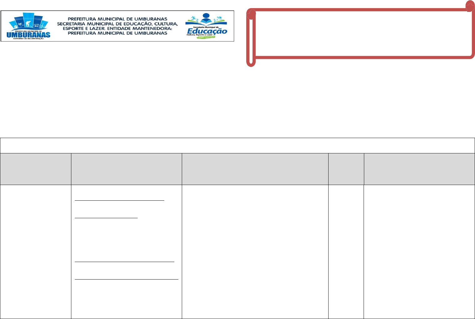 <p>Secretaria Municipal de Educação- SEMEC Coordenação de Ensino e Apoio Pedagógico- CEAP</p><p>Etapa: ENSINO FUNDAMENTAL- Anos Finais (6º AO 9º ANO)</p><p>Unidade escolar: CENTRO EDUCACIONAL DOUTOR JEOVANDO LOPES DE ALMEIDA</p><p>Assistente Pedagógico (a): MARLENE Professora: JANAI MARCILIA DE SOUZA CRUZ Componente Curricular: HISTÓRIA Turma: 7º ANO</p><p>PLANEJAMENTO TRIMESTRAL - 2023</p><p>DESEMPENHO E CONTEÚDOS ASSOCIADOS</p><p>UNIDADE TEMÁTICA</p><p>CONTEÚDO DA APRENDIZAGEM</p><p>OBJETIVOS DE APRENDIZAGEM</p><p>PERÍODO</p><p>HABILIDADES</p><p>(descritores de desempenho)</p><p>O mundo moderno e a conexão entre sociedades africanas, americanas e europeias.</p><p>ABSOLUTISMO E MERCANTILISMO</p><p>GRANDES NAVEGAÇÕES</p><p>Comercio de especiarias</p><p>Portugal pioneiro nas navegações</p><p>Navegações espanholas</p><p>AMERICA ESPANHOLA: COLONIZAÇÃO</p><p>AMERICA PORTUGUESA: COLONIZAÇÃO</p><p>Colonização do Brasil</p><p>Capitanias hereditárias</p><p>Economia colonial</p><p>Africanos</p><p>Canavial brasileiro</p><p>Explicitar as principais ideias que permeavam a mentalidade dos europeus no século XV-XVI e discutir os interesses econômicos e culturais que levaram a expansão marítima.</p><p>Identificar conexões e interações sociedade europeia no contexto das navegações e comparar as navegações no Atlântico e no Pacífico entre os séculos XIV e XVI.</p><p>II</p><p>TIMESTRE</p><p>.</p><p>(EF07HI02) Identificar conexões e interações entre as sociedades do Novo Mundo, da Europa, da África e da Ásia no contexto das navegações e indicar a complexidade e as interações que ocorrem nos Oceanos Atlântico, Índico e Pacífico.</p><p>(EF07HI03) Identificar aspectos e processos específicos das sociedades africanas e americanas antes da chegada dos europeus, com destaque para as formas de organização social e o desenvolvimento de saberes e técnicas.</p><p>(EF07HI06) Comparar as navegações no Atlântico e no Pacífico entre os séculos XIV e XVI.</p><p>(EF07HI08) Descrever as formas de organização das sociedades americanas no tempo da conquista com vistas à compreensão dos mecanismos de alianças, confrontos e resistências.</p><p>(EF07HI09) Analisar os diferentes impactos da conquista europeia da América para as populações ameríndias e identificar as formas de resistência.</p><p>(EF07HI10) Analisar, com base em documentos históricos, diferentes interpretações sobre as dinâmicas das sociedades americanas no período colonial.</p><p>(EF07HI11) Analisar a formação histórico-geográfica do território da América portuguesa por meio de mapas históricos.</p><p>PRÁTICA PEDAGÓGICA</p><p>AVALIAÇÃO</p><p>Serão usados vários instrumentos para abarcar as especificidades individuais dos educandos como: textos verbais (informativos e geográficos) e não-verbais (imagens, gráficos, tabelas), mapas, vídeos, apresentação de slides, além das atividades escritas e leituras, a fim de aprimorar o desenvolvimento do educando.</p><p>ABSOLUTISMO / MERCANTILISMO – REFORMA PROTESTANTE</p><p>* Pesquisa sobre a reforma protestante</p><p>*Vídeo sobre à contra reforma e contrarreforma</p><p>* Slides para aula – absolutismo e mercantilismo</p><p>* Aferição de aprendizagem: atividade escrita</p><p>* Caça palavras com perguntas</p><p>GRANDES NAVEGAÇÕES</p><p>* Aferição de aprendizagem: atividade escrita</p><p>*Caça tesouro – expedições Holandesas, Portuguesas, Espanhola e Francesa.</p><p>Partindo do pressuposto que a avaliação é um processo, devendo acontecer em vários momentos e de diversas formas, os alunos serão avaliados durante as aulas, mediante a realização de um conjunto de atividades, a saber: atividades individuais, uma atividade em grupo e uma avaliação escrita final (prova), conforme propõe a sistemática de avaliação da escola. Para tanto, serão escolhidos instrumentos e critérios, cuidando para que estes contemplem os objetivos e conteúdos trabalhados durante cada trimestre.</p><p>image1.png</p><p>image2.png</p><p>image3.png</p><p>image4.png</p><p>image5.png</p>