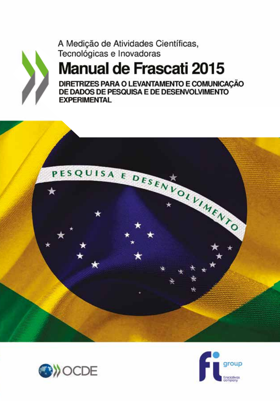 <p>I-4. MEDIÇÃO DAS DESPESAS DE P&D: EXECUÇÃO E FONTES DE FINANCIAMENTO</p><p>FRASCATI MANUAL 2015 © OECD 2016 1</p><p>M</p><p>an</p><p>ua</p><p>l</p><p>de</p><p>F</p><p>ra</p><p>sc</p><p>at</p><p>i</p><p>20</p><p>15</p><p>Manual de Frascati 2015</p><p>Diretrizes para o recolhimento e comunicação de dados de pesquisa</p><p>e de desenvolvimento experimental</p><p>Edição: FI Group</p><p>Tradução: Yes Services</p><p>Revisão: FI Group</p><p>Impressão: BMF Gráfica e Editora</p><p>Impresso em: Brasil</p><p>Depósito legal: /19</p><p>A Medição de Atividades Científicas,</p><p>Tecnológicas e Inovadoras</p><p>Manual de Frascati 2015</p><p>DIRETRIZES PARA O RECOLHIMENTO</p><p>E COMUNICAÇÃO DE DADOS DE</p><p>PESQUISA E DE DESENVOLVIMENTO</p><p>EXPERIMENTAL</p><p>POLÍTICAS MELHORES</p><p>PARA VIDAS MELHORES</p><p>A obra original é publicada sob a responsabilidade do Secretário-Geral da OCDE.</p><p>Os argumentos e opiniões aqui expressos não refletem necessariamente as</p><p>posições oficiais da Organização ou dos governos dos seus países-membros.</p><p>Este documento e qualquer mapa aqui incluído não afetam o estatuto ou soberania</p><p>de qualquer território, delimitação de fronteiras e limites internacionais ou o</p><p>nome de qualquer território, cidade ou área.</p><p>Publicado originalmente pela OCDE em inglês e em francês com os títulos:</p><p>Frascati Manual 2015 Guidelines for Collecting and Reporting Data on</p><p>Research and Experimental Development</p><p>Manuel de Frascati 2015 Lignes directrices pour le recueil et la communication</p><p>des données sur la recherche et le développement expérimental</p><p>A versão original desse livro foi publicada com o título Frascati Manual 2015: Guidelines for</p><p>Collecting and Reporting Data on Research and Experimental Development ISBN 9789264238800</p><p>© 2016 Organization for Economic Co-operation and Development (OECD), Paris.</p><p>Esta tradução é publicada com o acordo da OCDE. Não é uma tradução oficial da OCDE.</p><p>www.oecdbookshop.org – livraria da OCDE on-line</p><p>www.oecd.org/oecddirect - serviços de alerta de títulos da OCDE</p><p>© 2019 FI GROUP para essa edição em português.</p><p>FRASCATI MANUAL 2015 © OECD 2016 5</p><p>PREÂMBULO</p><p>Preâmbulo</p><p>É imprescindível dispor de uma base de conhecimentos sólidos para compreen-</p><p>der como a criação e a difusão do saber contribuem para o crescimento econômico e o</p><p>bem-estar social. Ao longo da história, os resultados da pesquisa e do desenvolvimento</p><p>transformaram de diversas maneiras a vida dos indivíduos e das sociedades, assim</p><p>como o meio natural no qual evoluímos. Os analistas das políticas e os decisores têm</p><p>uma necessidade constante de conhecer o volume e a natureza dos recursos humanos e</p><p>financeiros que são dedicados à P&D no âmbito dos países, das regiões, das empresas e</p><p>outras unidades estatísticas, encontrando um método para afetar a realização de obje-</p><p>tivos estabelecidos. Responder a essa necessidade por meio de estatísticas, permitindo</p><p>estabelecer comparações internacionais e uma terminologia comum é precisamente o</p><p>primeiro objetivo deste manual.</p><p>Em junho de 1963, a OCDE reuniu-se com especialistas de vários países na cidade</p><p>de Frascati (Itália) na Villa Falcioneri, para debater sobre estatísticas de pesquisa e de</p><p>desenvolvimento experimental (P&D). Desse encontro nasceu a primeira versão oficial</p><p>do “Método padrão proposto para sondagens sobre a pesquisa e o desenvolvimento ex-</p><p>perimental”, mais conhecido como Manual de Frascati. Essa obra está na sua sétima</p><p>edição. Apesar do Manual ter sido criado num contexto econômico e geopolítico bem</p><p>diferente da situação atual, este permanece atual após mais de meio século, devido à</p><p>vontade crescente de comparar os esforços de P&D empreendidos em numerosos países</p><p>e de identificar as características essenciais. A P&D é cada vez mais considerada um</p><p>fator de inovação no âmbito da ação global, que é realizada no seio de uma economia</p><p>global baseada no saber. Devido às suas especificidades, mantém um papel crucial e um</p><p>lugar privilegiado nas prioridades dos poderes públicos. Embora o pedido de avaliações</p><p>agregadas preside à elaboração da presente edição, é igualmente importante apresentar</p><p>um quadro geral mais detalhado dos resultados da P&D, identificando melhor as forças</p><p>em jogo e as ligações interdependentes que existem em nível mais detalhado. De fato,</p><p>convém dispor de microdados sobre a P&D não só para estabelecer indicadores agrega-</p><p>dos, mas também para analisar as suas repercussões em diferentes tipos de atuação.</p><p>Apesar do seu caráter técnico, o Manual é um dos pilares da ação empreendida</p><p>pela OCDE, ajudando a entender melhor o papel da ciência, da tecnologia e da inovação,</p><p>quando se analisam os sistemas nacionais de pesquisa e de inovação. Além disso, ao</p><p>fornecer definições da P&D reconhecidas no plano internacional e ao estabelecer no-</p><p>menclaturas para serem utilizadas na classificação das atividades de P&D, o Manual</p><p>enriquece a reflexão intergovernamental sobre as melhores práticas a seguir no âmbito</p><p>das políticas científicas e tecnológicas. No entanto, os indicadores e os dados que este</p><p>descreve não procuram deixar julgar a adequabilidade dos objetivos públicos.</p><p>A presente edição do Manual é claramente uma das mais reformuladas compara-</p><p>tivamente à versão original. Caracteriza-se por uma descrição muito detalhada, com</p><p>sugestões concretas a implementar em face da complexidade crescente da paisagem</p><p>FRASCATI MANUAL 2015 © OECD 20166</p><p>da pesquisa e da inovação nas economias atuais, tendo em conta as caraterísticas</p><p>de c