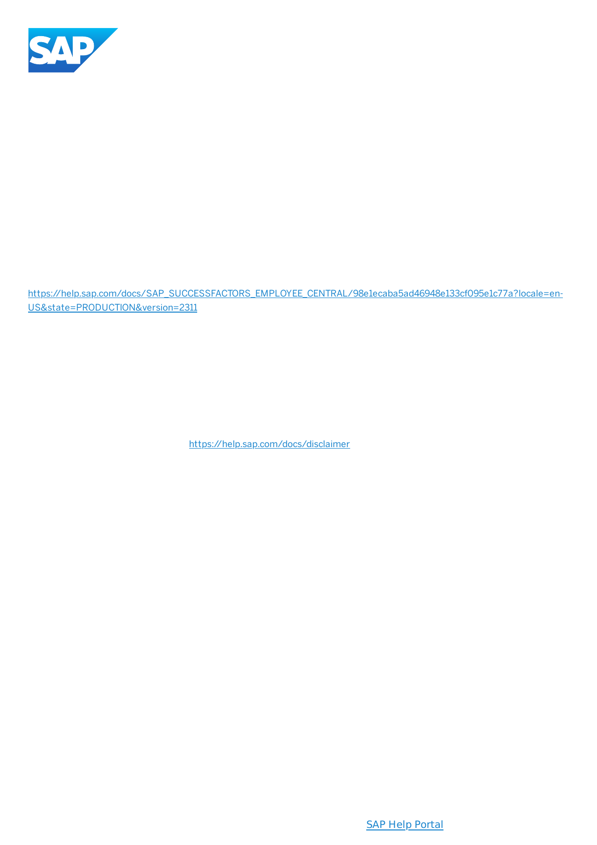 <p>4/19/2024</p><p>1This is custom documentation. For more information, please visit the SAP Help Portal</p><p>SAP Best Practices for SAP</p><p>SuccessFactors Employee Central</p><p>Generated on: 2024-04-19 13:45:48 GMT+0000</p><p>SAP SuccessFactors Employee Central | 2H 2023</p><p>PUBLIC</p><p>Original content:</p><p>https://help.sap.com/docs/SAP_SUCCESSFACTORS_EMPLOYEE_CENTRAL/98e1ecaba5ad46948e133cf095e1c77a?locale=en-</p><p>US&state=PRODUCTION&version=2311</p><p>Warning</p><p>This document has been generated from the SAP Help Portal and is an incomplete version of the official SAP product</p><p>documentation. The information included in custom documentation may not re�ect the arrangement of topics in the SAP Help</p><p>Portal, and may be missing important aspects and/or correlations to other topics. For this reason, it is not for productive use.</p><p>For more information, please visit the https://help.sap.com/docs/disclaimer.</p><p>https://help.sap.com/docs/disclaimer</p><p>https://help.sap.com/docs/SAP_SUCCESSFACTORS_EMPLOYEE_CENTRAL/98e1ecaba5ad46948e133cf095e1c77a?locale=en-US&state=PRODUCTION&version=2311</p><p>https://help.sap.com/docs/disclaimer</p><p>4/19/2024</p><p>2This is custom documentation. For more information, please visit the SAP Help Portal</p><p>Employee Central Best Practices</p><p>SAP Best Practices bring proven business process con�gurations in a fast and easy way into our</p><p>customers’ systems. The con�guration is based on experiences from real-life implementations and</p><p>designed to serve both modular and bundled (integrated) deployment approaches. Out of a broad</p><p>solution scope, you can pick and choose the con�guration blocks based on your needs. SAP Best</p><p>Practices are a good starting point of your con�guration project.</p><p>SAP Implementation Partners or SAP Professional Services can deploy the needed con�guration blocks</p><p>on behalf of our customers. For a �t-to standard analysis process �ow diagrams, task tutorials, and</p><p>test scripts will help you. To ensure a successful implementation, certain scope dependencies and</p><p>prerequisites might exist. The Con�guration Sequence, the SAP Note as well as the Con�guration</p><p>guides – getting started will provide you with the information you need to get started.</p><p>Business Bene�ts</p><p>Designed based on experience & learnings from customer projects (Leading Practices).</p><p>Built based on the intended architectural and conceptual design in-line with market proven practices</p><p>(Implementation Design Principles).</p><p>Modular deployment options allow to �exibly pick and choose the required business con�guration. Customers</p><p>can extend their solution scope over time.</p><p>Automated deployment reduces implementation risks.</p><p>Automated precon�guration shortens Time-to-Value.</p><p>Customer Scope Presentation</p><p>Find the Customer Scope Presentation that covers the scope of this solution.</p><p>Business Scope</p><p> Tip</p><p>Watch the below video that demonstates how to �lter your country/region from the Localization dropdown and see</p><p>only the Con�guration Blocks relevant for your country/region on the left navigation pane.</p><p>https://help.sap.com/docs/disclaimer</p><p>https://help.sap.com/docs/SAP_SUCCESSFACTORS_EMPLOYEE_CENTRAL/98e1ecaba5ad46948e133cf095e1c77a//docs/link-disclaimer?site=https%3A%2F%2Ffile.sapbestpractices.net%2Fb2311%2Fdocumentation%2FHelpPortal%2FAccelerators%2FBP_SFSF_EC_SFHCM_Cust_Scope_Pres_EN_XX.pdf?locale=en-US&state=PRODUCTION&version=2311</p><p>4/19/2024</p><p>3This is custom documentation. For more information, please visit the SAP Help Portal</p><p>This image is interactive. Hover over each area for a description. Click highlighted areas for more information.</p><p>Please note that image maps are not interactive in PDF output.</p><p>Available Localizations</p><p>Con�guration Sequence Document</p><p> Note</p><p>Hover over the business processes to learn more about the localization scope.</p><p>https://help.sap.com/docs/disclaimer</p><p>4/19/2024</p><p>4This is custom documentation. For more information, please visit the SAP Help Portal</p><p>Con�guration Sequence Document gives an overview of the required con�guration sequence of Upgrade Center Items to</p><p>achieve a successful scope item activation.</p><p>Solution Scope</p><p>The SAP Best Practices for SAP SuccessFactors Employee Central solution is based on the standard SAP software.</p><p>The content of the SAP Best Practices for SAP SuccessFactors Employee Central solution can be applied on a modular level in</p><p>a �exible way. That means that scope can be deployed selectively, considering certain dependencies and prerequisites which</p><p>might exist. Based on your needs, only single content can be implemented, such as Employee Central Core on top of any Talent</p><p>application, or Time Off on top of any Employee Central Core and so on. This results in a modular implementation approach.</p><p>Comprehensive Overview</p><p>Find more information on the Scope Overview as well as on the Scope Details in the following guide.</p><p>Solution Scope</p><p>Con�guration Blocks</p><p>Con�guration blocks in SAP Best Practices for Human Experience Management (HXM) are pre-con�gured, modular building</p><p>blocks designed to facilitate the rapid and efficient implementation of SAP SuccessFactors HXM solutions. These blocks allow</p><p>organizations to adopt best practices process content that caters to their business needs. In addition, customers can optimize</p><p>their HR strategies by utilizing con�guration blocks, ensuring alignment with their organizational goals.</p><p>SAP SuccessFactors implementation partners can use con�guration blocks in their projects to deliver tailored HXM solutions</p><p>more efficiently and effectively. By picking and choosing the con�guration blocks from the Upgrade Center tool in SAP</p><p>SuccessFact