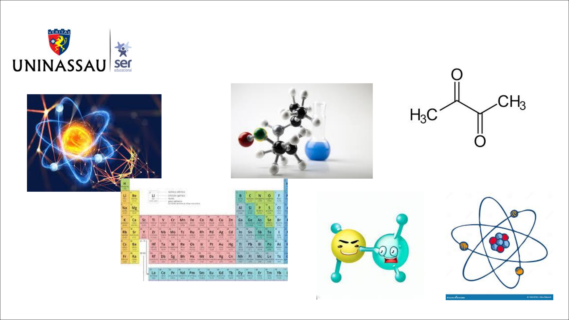 <p>Introdução à Química</p><p>Professor Me. Atanásio Neto</p><p>Átomo:</p><p>• Núcleo: Prótons e Nêutrons.</p><p>• Eletrosfera: Elétrons.</p><p>• Prótons e elétrons possuem carga</p><p>elétrica, nêutrons não!</p><p>• Prótons são posi t ivos (+1) e</p><p>elétrons são negativos (-1).</p><p>• Em seu estado não excitado,</p><p>todos os átomos são neutros.</p><p>• Número Atômico (Z) : Número de</p><p>prótons existentes no núcleo do átomo.</p><p>• Z=p.</p><p>• Cl: Z=17 (17 prótons e 17 elétrons).</p><p>• Na: Z=11 (11 prótons e 11 elétrons).</p><p>• Número de Massa (A) : Soma do</p><p>número de prótons e nêutrons no</p><p>núcleo do átomo.</p><p>• A=p+n ou A=Z+n.</p><p>• C l : Z=17 e A=35, logo possu i 18</p><p>nêutrons.</p><p>Principais características dos átomos</p><p>• É a ligação estabelecida pela transferência definitiva de elétrons entre</p><p>átomos com grande diferença de eletronegatividade. Exemplo: formação</p><p>do cloreto de sódio – NaCl.</p><p>• Sólidos a temperatura ambiente.</p><p>• Ponto de Fusão e Ebulição muito elevados, devido a presença de forças</p><p>eletrostáticas.</p><p>• Conduzem corrente elétrica fundidos ou em solução aquosa devido à</p><p>presença de íons livres.</p><p>• Quanto maior for a diferença de eletronegatividade entre os elementos</p><p>participantes, maior será o caráter iônica da ligação.</p><p>• Melhor solvente é a água.</p><p>Ligações Iônicas</p><p>Ligações Iônicas</p><p>• A ligação covalente normal baseia-se no compartilhamento de um ou</p><p>mais pares de elétrons, entre átomos que tem a tendência de ganhar</p><p>elétrons.</p><p>• Ocorre um compartilhamento ou emparelhamento de elétrons.</p><p>• Sólidos, líquidos ou gasosos a temperatura ambiente.</p><p>• Ponto de Fusão e Ebulição inferiores aos dos compostos iônicos.</p><p>• Bons isolantes: térmico e elétrico.</p><p>Ligações Covalentes</p><p>Ligações Covalentes</p>