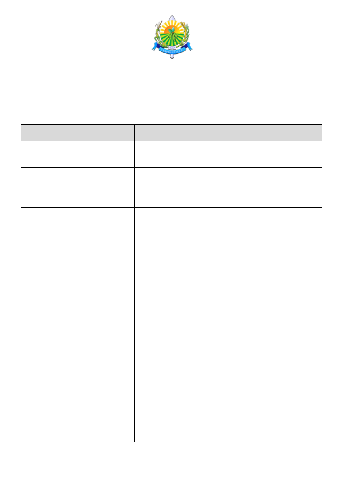 <p>ESTADO DE MATO GROSSO</p><p>PREFEITURA MUNICIPAL DE CAMPOS DE JÚLIO</p><p>1</p><p>CONCURSO PÚBLICO DE PROVAS E TÍTULOS PARA PROVIMENTO EFETIVO DO CARGO DE</p><p>PROCURADOR MUNICIPAL DO QUADRO PERMANENTE DA PREFEITURA MUNICIPAL DE CAMPOS DE</p><p>JÚLIO/MT</p><p>ANEXO I DO EDITAL N.º 03/2024 – PMCJ</p><p>CRONOGRAMA DO CONCURSO</p><p>EVENTO DATA PREVISTA LOCAL</p><p>Publicação do Edital 20/05/2024</p><p>Jornal Oficial Eletrônico dos Municípios</p><p>do Estado de Mato Grosso e</p><p>https://www.concursos.ufmt.br</p><p>Impugnação ao Edital</p><p>21/05/2024 e</p><p>22/05/2024</p><p>https://www.concursos.ufmt.br</p><p>Divulgação do resultado dos recursos</p><p>contra o Edital</p><p>28/05/2024 https://www.concursos.ufmt.br</p><p>Inscrição paga</p><p>De 03/06/2024 a</p><p>24/06/2024</p><p>https://www.concursos.ufmt.br</p><p>Solicitação de inscrição com isenção</p><p>do pagamento da taxa de inscrição</p><p>De 03/06/2024 a</p><p>05/06/2024</p><p>https://www.concursos.ufmt.br</p><p>Encaminhamento, via internet, da</p><p>documentação comprobatória para</p><p>isenção do pagamento da taxa de</p><p>inscrição</p><p>No ato da inscrição https://www.concursos.ufmt.br</p><p>Encaminhamento, via internet, do</p><p>Laudo Médico de candidato inscrito na</p><p>condição de Pessoa com Deficiência</p><p>(PcD)</p><p>No ato da inscrição https://www.concursos.ufmt.br</p><p>Encaminhamento, via internet, da</p><p>documentação comprobatória de</p><p>Títulos, para Avaliação de Títulos</p><p>No ato da inscrição https://www.concursos.ufmt.br</p><p>Disponibilização para consulta</p><p>individual da situação (deferida ou</p><p>indeferida) de cada candidato com</p><p>solicitação de inscrição com isenção</p><p>do pagamento da taxa</p><p>10/06/2024 https://www.concursos.ufmt.br</p><p>Interposição de recursos contra</p><p>indeferimento de inscrição com</p><p>solicitação de isenção do pagamento</p><p>de taxa</p><p>Das 8 horas do dia</p><p>11/06/2024 às 18</p><p>horas do dia</p><p>12/06/2024</p><p>https://www.concursos.ufmt.br</p><p>http://www.ufmt.br/concursos</p><p>http://www.ufmt.br/concursos</p><p>http://www.ufmt.br/concursos</p><p>http://www.ufmt.br/concursos</p><p>http://www.ufmt.br/concursos</p><p>http://www.ufmt.br/concursos</p><p>http://www.ufmt.br/concursos</p><p>http://www.ufmt.br/concursos</p><p>ESTADO DE MATO GROSSO</p><p>PREFEITURA MUNICIPAL DE CAMPOS DE JÚLIO</p><p>2</p><p>Divulgação do resultado da análise dos</p><p>recursos contra indeferimento de</p><p>inscrição com solicitação de isenção</p><p>do pagamento da taxa</p><p>20/06/2024 https://www.concursos.ufmt.br</p><p>Período para pagamento da taxa de</p><p>inscrição para os candidatos com</p><p>isenção indeferida</p><p>De 11/06/2024 a</p><p>25/06/2024</p><p>Agências bancárias</p><p>Data limite para o pagamento do</p><p>boleto bancário relativo à taxa de</p><p>inscrição</p><p>25/06/2024 Agências bancárias</p><p>Disponibilização para consulta</p><p>individual da situação da inscrição de</p><p>cada candidato (deferida ou indeferida)</p><p>02/07/2024 https://www.concursos.ufmt.br</p><p>Disponibilização para consulta</p><p>individual da situação (deferida ou</p><p>indeferida) de cada candidato com</p><p>pedido de inscrição na condição de</p><p>Pessoa com Deficiência (PcD)</p><p>02/07/2024 https://www.concursos.ufmt.br</p><p>Interposição de recursos contra</p><p>indeferimento de inscrição e contra</p><p>indeferimento de pedido para</p><p>concorrer na condição de Pessoa com</p><p>Deficiência (PcD)</p><p>Das 8 horas do dia</p><p>03/07/2024 às 18</p><p>horas do dia</p><p>04/07/2024</p><p>https://www.concursos.ufmt.br</p><p>Solicitação de alteração de cadastro</p><p>(na área restrita do candidato - dados</p><p>pessoais)</p><p>De 03/07/2024 a</p><p>05/07/2024</p><p>https://www.concursos.ufmt.br</p><p>Divulgação do resultado da análise dos</p><p>recursos contra indeferimento de</p><p>inscrição e contra indeferimento de</p><p>pedido para concorrer na condição de</p><p>Pessoa com Deficiência (PcD)</p><p>10/07/2024 https://www.concursos.ufmt.br</p><p>Divulgação, em lista aberta, da relação</p><p>definitiva de candidatos inscritos</p><p>10/07/2024</p><p>Jornal Oficial Eletrônico dos Municípios</p><p>do Estado de Mato Grosso e</p><p>https://www.concursos.ufmt.br</p><p>Divulgação, em lista aberta, dos locais</p><p>e horários de realização das Provas</p><p>Objetivas e de Redação</p><p>16/07/2024 https://www.concursos.ufmt.br</p><p>http://www.ufmt.br/concursos</p><p>http://www.ufmt.br/concursos</p><p>http://www.ufmt.br/concursos</p><p>http://www.ufmt.br/concursos</p><p>http://www.ufmt.br/concursos</p><p>http://www.ufmt.br/concursos</p><p>http://www.ufmt.br/concursos</p><p>ESTADO DE MATO GROSSO</p><p>PREFEITURA MUNICIPAL DE CAMPOS DE JÚLIO</p><p>3</p><p>Aplicação das Provas Objetivas</p><p>21/07/2024</p><p>(Matutino)</p><p>Aplicação da Peça Jurídica</p><p>21/07/2024</p><p>(Vespertino)</p><p>Divulgação dos gabaritos preliminares</p><p>das Provas Objetivas</p><p>22/07/2024 https://www.concursos.ufmt.br</p><p>Solicitação de alteração de cadastro</p><p>(na área restrita do candidato - dados</p><p>pessoais)</p><p>De 22/07/2024 a</p><p>24/07/2024</p><p>https://www.concursos.ufmt.br</p><p>Interposição de recursos contra</p><p>gabarito preliminar, formulação ou</p><p>conteúdo de questão da Prova Objetiva</p><p>Das 8 horas do dia</p><p>23/07/2024 às 18</p><p>horas do dia</p><p>24/07/2024</p><p>https://www.concursos.ufmt.br</p><p>Divulgação do resultado da análise dos</p><p>recursos contra gabarito preliminar,</p><p>formulação ou conteúdo de questão da</p><p>Prova Objetiva</p><p>14/08/2024 https://www.concursos.ufmt.br</p><p>Disponibilização para consulta</p><p>individual do desempenho (pontuação)</p><p>na Prova Objetiva</p><p>14/08/2024 https://www.concursos.ufmt.br</p><p>Interposição de recursos contra</p><p>desempenho 