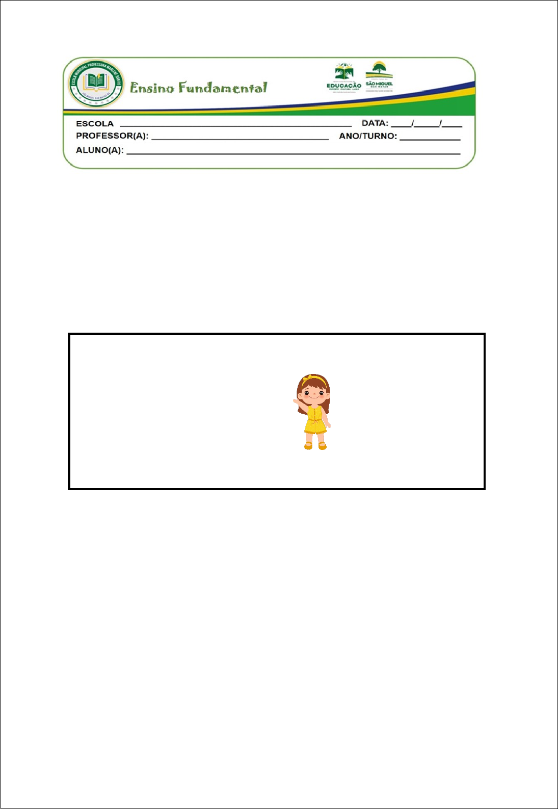 <p>AVALIAÇÃO DE MATEMÁTICA</p><p>III UNIDADE</p><p>1. OBSERVE O QUADRO ABAIXO E RESPONDA:</p><p>1 2 3 4</p><p>QUAL CRIANÇA É A MAIS ALTA DE ACORDO COM O QUADRO?</p><p>A) 1</p><p>B) 2</p><p>C) 3</p><p>D) 4</p><p>2. A TABELA ABAIXO MOSTRA A QUANTIDADE DE MAÇÃS QUE CADA ALUNO LEVOU PARA SALA:</p><p>QUAL É A QUANTIDADE TOTAL DE MAÇÃS QUE OS ALUNOS. LEVARAM PARA A SALA:</p><p>A) 20</p><p>B) 16</p><p>C) 21</p><p>D) 18</p><p>3. QUAL A FORMA GEOMÉTRICA A FIGURA ABAIXO É PARECIDA?</p><p>A) CILINDRO</p><p>B) ESFERA</p><p>C) PIRÂMIDE</p><p>D) CUBO</p><p>4. QUAL O RESULTADO DA OPERAÇÃO ABAIXO?- 378</p><p>_1_4_4__</p><p>A) 196</p><p>B) 228</p><p>C) 230</p><p>D) 234</p><p>5. OBSERVE O DESENHO NA MALHA QUADRICULADA ABAIXO:</p><p>O DESENHO ESTÁ LOCALIZADO EM QUAL POSIÇÃO:</p><p>A) (D,5)</p><p>B) (B,2)</p><p>C) (C,5)</p><p>D) (D,4)</p><p>6. PEDRO TEM 4 CAIXAS DE CHOCOLATES. CADA CAIXA POSSUI 6 CHOCOLATES. QUANTOS CHOCOLATES PEDRO TEM NO TOTAL?</p><p>A) 10</p><p>B) 24</p><p>C) 36</p><p>D) 26</p><p>7. ANA COMPROU UMA BONECA DE R$ 10,00. ELA PAGOU A BONECA COM A NOTA ILUSTRADA NA IMAGEM. QUAL O VALOR QUE ANA RECEBEU DE TROCO?</p><p>A) R$ 4,00</p><p>B) R$ 10,00</p><p>C) R$ 6,00</p><p>D) R$ 8,00</p><p>8. OBSERVE O NÚMERO DE UMA RESIDÊNCIA QUE ESTÁ MARCADO NA FIGURA ABAIXO. ESCREVA ESSE NÚMERO POR EXTENSO NAS LINHAS:</p><p>________________________________________________________________________________________________________________________</p><p>9. OBSERVE OS NÚMEROS ABAIXO E MARQUE A ORDEM CRESCENTE:</p><p>A) 42 - 18 - 09 - 74 - 15 - 29</p><p>B) 09 - 15 - 18 - 29 - 42 - 74</p><p>C) 09 - 18 - 15 - 42 - 74 - 29</p><p>D) 15 - 18 - 09 - 29 - 42 - 74</p><p>10. QUAL O TRIPLO DO NÚMERO TOTAL DE PEIXES QUE HÁ NA IMAGEM:</p><p>A) 24</p><p>B) 8</p><p>C) 16</p><p>D) 32</p><p>image3.png</p><p>image4.png</p><p>image5.png</p><p>image6.png</p><p>image7.png</p><p>image8.png</p><p>image9.png</p><p>image10.png</p><p>image11.png</p><p>image12.jpeg</p><p>image13.jpeg</p><p>image14.png</p><p>image15.jpeg</p><p>image16.jpeg</p><p>image17.png</p><p>image18.png</p><p>image1.png</p><p>image2.png</p><p>A</p><p>VALIAÇÃO</p><p>DE MATEMÁTICA</p><p>III UNIDADE</p><p>1</p><p>.</p><p>OBSERVE</p><p>O</p><p>QUADRO</p><p>ABAIXO</p><p>E</p><p>RESPONDA</p><p>:</p><p>Q</p><p>UAL</p><p>CRIANÇA</p><p>É</p><p>A</p><p>MAIS</p><p>ALTA</p><p>DE</p><p>ACORDO</p><p>COM</p><p>O</p><p>QUADRO?</p><p>A) 1</p><p>B) 2</p><p>C) 3</p><p>D) 4</p><p>2.</p><p>A</p><p>TABELA</p><p>ABAIXO</p><p>MOSTRA</p><p>A</p><p>QUANTIDADE</p><p>DE</p><p>MAÇÃS</p><p>QUE</p><p>CADA ALUNO LEVOU PARA SALA:</p><p>AVALIAÇÃO DE MATEMÁTICA</p><p>III UNIDADE</p><p>1. OBSERVE O QUADRO ABAIXO E RESPONDA:</p><p>QUAL CRIANÇA É A MAIS ALTA DE ACORDO COM O QUADRO?</p><p>A) 1</p><p>B) 2</p><p>C) 3</p><p>D) 4</p><p>2. A TABELA ABAIXO MOSTRA A QUANTIDADE DE MAÇÃS QUE</p><p>CADA ALUNO LEVOU PARA SALA:</p>
