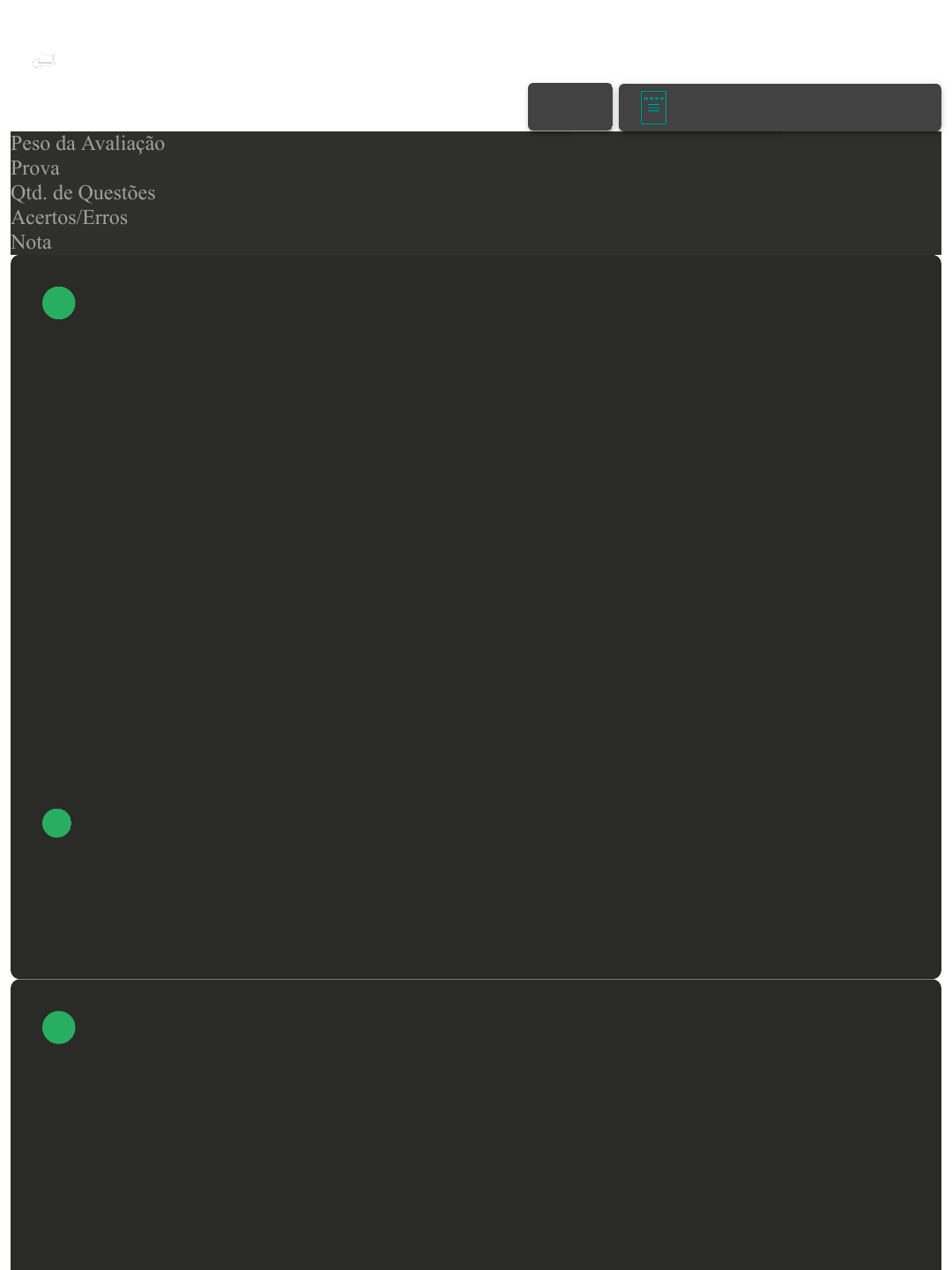 <p>Prova Impressa</p><p>GABARITO | Avaliação II - Individual (Cod.:991238)</p><p>Peso da Avaliação 2,00</p><p>Prova 88248714</p><p>Qtd. de Questões 10</p><p>Acertos/Erros 8/2</p><p>Nota 8,00</p><p>Uma determinada região do Mato Grosso apresentou, nos últimos seis meses, alguns valores para a</p><p>precipitação pluviométrica mensal (fornecidos em mm). Sobre esses valores, analise a tabela a seguir:</p><p>Maio Junho Julho Agosto setembro Outubro</p><p>65 82 74 97 129 108</p><p>Com relação à média e mediana dos dados de precipitação pluviométrica dos seis meses, assinale a</p><p>alternativa CORRETA:</p><p>A 97,5 e 82,5.</p><p>B 98,5 e 83,5.</p><p>C 92,5 e 85,5.</p><p>D 95,5 e 82,5.</p><p>Em geral, são usadas três medidas de posição: média aritmética (simples, ponderada e de dados</p><p>agrupados em intervalos), mediana e moda.</p><p>Sobre a definição de moda, assinale a alternativa CORRETA:</p><p>A É calculada multiplicando cada valor do conjunto de dados pelo seu peso.</p><p>VOLTAR</p><p>A+ Alterar modo de visualização</p><p>1</p><p>2</p><p>Avaliação II - Individual https://ava2.uniasselvi.com.br/subject/grades-and-tests/answer-book/e...</p><p>1 of 6 09/10/2024, 17:26</p><p>B É o valor mais frequente em um determinado conjunto de números.</p><p>C É o valor situado no centro da distribuição das frequências.</p><p>D É a soma dos valores ou medidas, divida pela quantidade de valores.</p><p>Em geral, as medidas de variação utilizadas são: desvio médio, desvio-padrão, variância ou quadrado</p><p>médio, coeficiente de variação, erro padrão da média, erro padrão de percentagem e separatrizes.</p><p>Sobre o conceito de desvio-padrão, assinale a alternativa CORRETA:</p><p>A É o afastamento médio com que as médias amostrais se apresentam em relação à média</p><p>aritmética da população.</p><p>B É a média aritmética do afastamento da média de um conjunto de dados populacionais.</p><p>C É o desvio padrão de um conjunto de valores elevado ao quadrado.</p><p>D É o afastamento médio em relação à média aritmética de um conjunto de valores.</p><p>Os testes não paramétricos, também conhecidos como testes de distribuição gratuita, são aqueles</p><p>baseados em certas hipóteses, mas que não possuem uma organização normal. Geralmente, contêm</p><p>resultados estatísticos provenientes de suas ordenações, o que os torna mais fáceis de entender.</p><p>Com relação aos critérios para realizar esse teste, assinale a alternativa INCORRETA:</p><p>A Os indivíduos da amostra estudada estão sob condições diferentes.</p><p>B Dados da amostra com distribuição normal.</p><p>3</p><p>4</p><p>Avaliação II - Individual https://ava2.uniasselvi.com.br/subject/grades-and-tests/answer-book/e...</p><p>2 of 6 09/10/2024, 17:26</p><p>C Variáveis qualitativas (especialmente ordinais).</p><p>D Amostras com medidas de dispersão diferentes.</p><p>No controle estatístico de processos, é a medida mais comum da dispersão estatística, representada</p><p>pelo símbolo Sigma, que mostra o quanto de variação ou dispersão existe em relação à média.</p><p>Sobre essa medida, assinale a alternativa CORRETA:</p><p>A Moda.</p><p>B Mediana.</p><p>C Média.</p><p>D Desvio padrão.</p><p>No ano de 2019, na bacia hidrográfica do Rio Tubarão, foram capturadas um total de 35 golfinhos de</p><p>ambos os sexos. Desses casos, após o exame de necropsia, foram identificados que 14 golfinhos</p><p>apresentaram arranhões e marcas de redes de pescas e outros 9 golfinhos apresentaram resíduos</p><p>sólidos nas perfurações respiratórias.</p><p>Nesse sentido, assinale a alternativa CORRETA que representa a incidência em percentual dos dois</p><p>fatores que causaram a morte dos golfinhos:</p><p>A 45 e 27,1%.</p><p>B 40 e 25,7%.</p><p>Revisar Conteúdo do Livro</p><p>5</p><p>6</p><p>Avaliação II - Individual https://ava2.uniasselvi.com.br/subject/grades-and-tests/answer-book/e...</p><p>3 of 6 09/10/2024, 17:26</p><p>C 39,2 e 23%.</p><p>D 43 e 24,5%.</p><p>As medidas de dispersão, em geral, utilizadas são: desvio médio, desvio-padrão, variância ou</p><p>quadrado médio, coeficiente de variação, erro padrão da média, erro padrão de percentagem e</p><p>separatrizes.</p><p>Sobre o conceito de quadrado médio, assinale a alternativa CORRETA:</p><p>A É a média aritmética dos afastamentos da média de um conjunto de dados.</p><p>B É o afastamento médio em relação à média aritmética de uma série de valores.</p><p>C É o desvio padrão de um conjunto de valores elevado ao quadrado.</p><p>D É o afastamento médio com que as médias amostrais se apresentam em relação à população.</p><p>É um valor situado no centro da distribuição de frequências e tem como objetivo encontrar um valor</p><p>que permita conter 50% dos dados acima deste valor e 50% abaixo. É especialmente útil quando se</p><p>trata de séries assimétricas, isto é, quando alguns valores são exageradamente baixos ou altos.</p><p>Assinale a alternativa CORRETA que apresenta a definição descrita no enunciado:</p><p>A Média.</p><p>B Variância.</p><p>C Mediana.</p><p>7</p><p>8</p><p>Avaliação II - Individual https://ava2.uniasselvi.com.br/subject/grades-and-tests/answer-book/e...</p><p>4 of 6 09/10/2024, 17:26</p><p>D Moda.</p><p>Para testes não paramétricos, não é necessário conhecer a distribuição da variável investigativa, e os</p><p>pressupostos de normalidade e homogeneidade de variância não precisam ser atendidos.</p><p>Considerando as vantagens e desvantagens dos testes não paramétricos, classifique V para as</p><p>sentenças verdadeiras e F para as falsas:</p><p>( ) Como vantagem dos testes não paramétricos, podemos citar que podem ser úteis quando</p><p>conhecemos a distribuição da variável investigada.</p><p>( ) Os testes não paramétricos apresentam como desvantagem o fato de levar a perda de informação</p><p>da variabilidade do