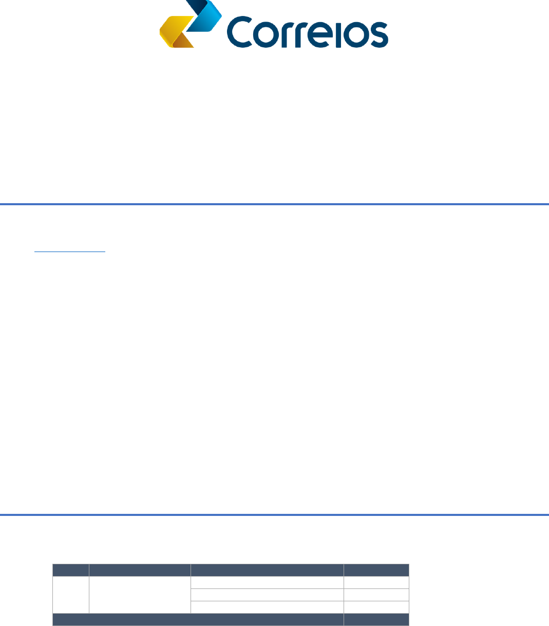 <p>MINISTÉRIO DAS COMUNICAÇÕES</p><p>EMPRESA BRASILEIRA DE CORREIOS E TELÉGRAFOS</p><p>CONCURSO PÚBLICO NACIONAL PARA PROVIMENTO DE VAGAS</p><p>Página 1 de 47</p><p>EDITAL Nº 270, DE 09 DE OUTUBRO DE 2024</p><p>A EMPRESA BRASILEIRA DE CORREIOS E TELÉGRAFOS, no exercício de suas atribuições legais, nos termos do</p><p>Decreto-Lei nº 509/1969 e suas alterações posteriores, torna pública a realização de CONCURSO PÚBLICO</p><p>NACIONAL, para o provimento de vagas, sob o regime celetista, em cargo, do quadro de pessoal da Empresa Brasileira</p><p>de Correios e Telégrafos, mediante as condições estabelecidas neste Edital e seus Anexos.</p><p>1. DAS DISPOSIÇÕES PRELIMINARES</p><p>1.1. O concurso público nacional será regulado pelas normas contidas no presente edital e em seus anexos, avisos, atos</p><p>complementares e eventuais retificações, e será executado pelo Instituto Brasileiro de Formação e Capacitação –</p><p>IBFC - www.ibfc.org.br.</p><p>1.2. O presente Concurso Público destina-se a selecionar candidatos para provimento de vagas imediatas do cargo de</p><p>Agente de Correios de Nível Médio, do quadro de pessoal da Empresa Brasileira de Correios e Telégrafos,</p><p>especificamente de acordo com a distribuição de vagas imediatas constante no Anexo I – Quadro de Vagas deste Edital,</p><p>durante o prazo de validade do concurso.</p><p>1.3. O prazo de validade do concurso público é de 1 (um) ano, contados da data da publicação da homologação do</p><p>resultado final do concurso, podendo ser prorrogado uma única vez, por igual período, a critério da Empresa Brasileira</p><p>de Correios e Telégrafos, nos termos do art.37, inciso III, da Constituição Federal.</p><p>1.3.1. As retificações, republicações ou outras modificações no resultado, por força de recursos, não invalidam a data da</p><p>primeira publicação oficial.</p><p>1.4. Os seguintes Anexos integram o presente Edital:</p><p>Anexo I - Quadro de Vagas;</p><p>Anexo II – Municípios que compõem a Macrorregião e cidade de realização das Provas;</p><p>Anexo III - Requerimento de Atendimento Especial;</p><p>Anexo IV - Modelo de Atestado para a Avaliação por Equipe Multiprofissional - Pessoas com Deficiência;</p><p>Anexo V - Conteúdo Programático;</p><p>Anexo VI - Cronograma Previsto.</p><p>2. DA CARREIRA, DO CARGO E VAGAS, DA JORNADA DE TRABALHO E DA REMUNERAÇÃO</p><p>2.1. O Concurso de que trata este Edital oferece um total de 3.099 vagas imediatas, distribuídas conforme tabela a</p><p>seguir:</p><p>Nível Cargo Concorrência Vagas</p><p>Médio</p><p>Agente de Correios</p><p>- Carteiro</p><p>Ampla Concorrência 1.851</p><p>Pessoas com Deficiência 312</p><p>Negros/Indígenas 936</p><p>Total 3.099</p><p>2.1.1. As vagas para cada Localidade (Macrorregião) e os Municípios que compõem essas Macrorregiões,</p><p>encontra-se disposto no Anexo I – Quadro de Vagas e Anexo II – Municípios que compõem a Macrorregião deste</p><p>edital.</p><p>2.1.2. Às Pessoas com Deficiência ficam reservadas 10% (dez por cento) das vagas.</p><p>2.1.3. Às Pessoas Negras/Indígenas ficam reservadas 30% (trinta por cento) das vagas.</p><p>2.1.4. O candidato aprovado no concurso público terá classificação por Localidade (Macrorregião), de acordo com a sua</p><p>opção no momento da inscrição.</p><p>2.1.5. O provimento das vagas estará sujeito ao planejamento estratégico e às necessidades dos CORREIOS.</p><p>2.1.6 A convocação dos candidatos ocorrerá exclusivamente para o suprimento das vagas previstas no Anexo I – Quadro</p><p>de Vagas.</p><p>http://www.ibfc.org.br/</p><p>MINISTÉRIO DAS COMUNICAÇÕES</p><p>EMPRESA BRASILEIRA DE CORREIOS E TELÉGRAFOS</p><p>CONCURSO PÚBLICO NACIONAL PARA PROVIMENTO DE VAGAS</p><p>Página 2 de 47</p><p>2.1.7. Os CORREIOS poderá, excepcionalmente, convocar candidatos adicionais para o suprimento das vagas previstas</p><p>no Anexo I – Quadro de Vagas.</p><p>2.1.8. A convocação seguirá a ordem de classificação dos candidatos aprovados, respeitando os critérios de alternância</p><p>e proporcionalidade das vagas reservadas às ações afirmativas.</p><p>2.2. Da lotação: os candidatos aprovados, convocados, que vierem a ser devidamente contratados serão lotados em</p><p>uma das Macrorregiões, de acordo com a natureza e as atribuições do cargo e as necessidades dos CORREIOS.</p><p>2.2.1. O candidato que, no ato da inscrição, selecionar concorrer à determinada Localidade (Macrorregião) de acordo</p><p>com o Anexo I deste Edital estará automaticamente vinculado a ela, para fins de realização das provas, de classificação,</p><p>de contratação e demais condições deste Edital.</p><p>2.3. Do Regime Jurídico: o candidato aprovado no concurso público, que vier a ser contratado, será admitido sob o</p><p>regime da Consolidação das Leis do Trabalho – CLT, mediante Contrato de Experiência (art. 443, § 2º, e art. 445,</p><p>parágrafo único, do Decreto-Lei n.º 5.452/1943 e alterações posteriores), estando subordinados ao Plano de Cargos,</p><p>Carreiras e Salários - PCCS e aos normativos específicos da EMPRESA BRASILEIRA DE CORREIOS E TELÉGRAFOS.</p><p>2.3.1. Nesse período, serão avaliados, para efeito de conversão ao Contrato por Prazo Indeterminado, a adequação do</p><p>candidato ao cargo e o desempenho obtido nas atividades vinculadas, inclusive nos treinamentos que o cargo exigir,</p><p>conforme os critérios de avaliação de desempenho utilizados pelos CORREIOS.</p><p>2.3.1.1. A realização dos treinamentos que o cargo exigir poderá ocorrer fora do município de lotação do empregado.</p><p>2.4. O salário e a carga horária semanal do cargo, são os estabelecidos a seguir:</p><p>Nível Cargo Carga Horária Salário</p><p>Médio Agente de Correios - Carteiro 44h R$ 2.429,26</p><p>2.4.1. Poderá ser oferecido os seguintes benefícios, condicionados à previsão e os requisitos estabelecidos