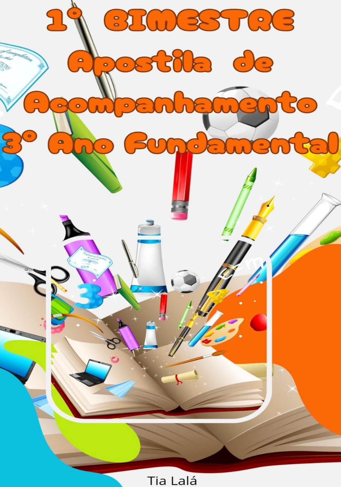 <p>1</p><p>2</p><p>1 - LEIA AS CHARGES E RESPONDA AS QUESTÕES</p><p>A)</p><p>1)</p><p>_____________________________________________________________________</p><p>2)</p><p>_______________________________________________________________</p><p>_______________________________________________________________</p><p>_______________________________________________________________</p><p>3</p><p>B)</p><p>1)</p><p>_______________________________________________________________</p><p>2)</p><p>______________________________________________________________</p><p>3) Que outras siglas você conhece?</p><p>______________________________________________________________</p><p>_______________________________________________________________</p><p>4</p><p>2) SUBSTANTIVOS PRÓPRIOS E COMUNS</p><p>5</p><p>6</p><p>4)</p><p>EXERCÍCIO 5</p><p>7</p><p>CAMPANHA DE CONSCIENTIZAÇÃO</p><p>8</p><p>_______________________________________________________________</p><p>_______________________________________________________________</p><p>O que o leitor pode fazer para obter mais informações sobre o assunto divulgado</p><p>pela campanha publicitária?</p><p>____________________________________________________________</p><p>____________________________________________________________</p><p>9</p><p>PALAVRAS COM C E QU</p><p>10</p><p>11</p><p>12</p><p>Diário do coelho</p><p>Querido diário.</p><p>Hoje ao acordar, vi que o sol brilhava no horizonte, indicando bom tempo.</p><p>Pensando em Florita, coelha que balança este coração, disparei em direção ao</p><p>campo que fica perto de casa. Colhi lindas flores e fiz com elas um belo buquê</p><p>para Florita.</p><p>Ela ficou encantada e aceitou o convite para um passeio.</p><p>Fiquei de patas bambas e a abracei, completa felicidade.</p><p>Dizem que pé de coelho da sorte e... Esta é a pura verdade!</p><p>Coelhudo sortudo.</p><p>Questões</p><p>1) Qual é o título do texto?</p><p>___________________________________________________</p><p>2) Quem falava com o diário?</p><p>___________________________________________________</p><p>3) Quem estava pensando em Florita?</p><p>___________________________________________________</p><p>4) Quem é Florita?</p><p>___________________________________________________</p><p>5) O que o coelho colheu para Florita?</p><p>___________________________________________________</p><p>6) Como Florita reagiu ao buquê?</p><p>___________________________________________________</p><p>13</p><p>14</p><p>?</p><p>CONFIRA SEU TEXTO:</p><p>SIM NÃO</p><p>Escreveu um título?</p><p>Inseriu nome completo?</p><p>Usou letra maiúscula no começo das frases?</p><p>Contou alguma situação curiosa pela qual passou?</p><p>Escreveu as palavras corretamente?</p><p>15</p><p>16</p><p>17</p><p>18</p><p>19</p><p>COMPLETE AS PALAVRAS COM C, QU,G E GU:</p><p>LEIA AS PALAVRAS:</p><p>Marginal – ninguém – genro – geladeira – ginástica</p><p>Garagem – gentil – girafa</p><p>Observando o som que se repete em cada palavra, qual delas não faz parte do</p><p>grupo? ___________________________________________________</p><p>COMPLETE AS PALAVRAS COM GE, GI</p><p>OU GUE, GUI:</p><p>a) ________lherme</p><p>b) cole________nha</p><p>c) ________ada</p><p>d) ________léia</p><p>e) ________lado</p><p>f) pre__________çoso</p><p>g) se__________da</p><p>h) ________rassol</p><p>i) ________ratório</p><p>20</p><p>21</p><p>QUAL É O ASSUNTO DO POEMA?</p><p>_______________________________________________________________</p><p>_______________________________________________________________</p><p>QUANTOS VERSOS COMPÕEM O POEMA? NUMERE-OS</p><p>_______________________________________________________________</p><p>QUANTAS ESTROFES TEM O POEMA?</p><p>_______________________________________________________________</p><p>PROCURE NO POEMA AS RIMAS DAS PALAVRAS A SEGUIR:</p><p>Gato: _______________________</p><p>Sapato: ______________________</p><p>Ato: _________________________</p><p>Mato: ________________________</p><p>22</p><p>23</p><p>24</p><p>25</p><p>26</p><p>27</p><p>28</p><p>NÚMEROS NO DIA A DIA</p><p>De acordo com o texto acima, reescreva os números de acordo com o seu uso:</p><p>29</p><p>30</p><p>31</p><p>1º → primeiro</p><p>→ décimo 30º →trigésimo</p><p>2º →</p><p>→ décimo segundo 36º →</p><p>→ quinto</p><p>→ décimo quarto 40º → quadragésimo</p><p>→ sétimo</p><p>20º → vigésimo → quadragésimo oitavo</p><p>9º →</p><p>→ vigésimo segundo 50º → quinquagésimo</p><p>32</p><p>33</p><p>34</p><p>35</p><p>36</p><p>37</p><p>38</p><p>39</p><p>40</p><p>41</p><p>42</p><p>43</p><p>44</p><p>45</p><p>46</p><p>47</p><p>48</p><p>49</p><p>50</p><p>51</p><p>Leia as situações a seguir, complete as respostas corretamente</p><p>e</p><p>pinte as palavras escolhidas.</p><p>a) Em uma gaveta, há apenas 36 meias pretas e 28 meias brancas. Rafael vai</p><p>tirar uma meia sem olhar.</p><p> A chance de Rafael tirar uma meia preta é ____________________ do</p><p>que a chance de ele tirar uma meia branca.</p><p>maior menor</p><p> Rafael ________________________ tirar uma meia vermelha.</p><p>poderá não poderá</p><p>b) A professora Cássia vai sortear um livro na turma do 3º Ano. São 13 meninos</p><p>e 18 meninas na turma.</p><p> A chance de ser sorteado um menino é ______________________ do</p><p>que a chance de ser sorteada uma menina.</p><p>maior menor</p><p> Se esse sorteio fosse na sua turma, a chance de sortear uma menina seria</p><p>______________________________ a chance de sortear um menino.</p><p>igual menor do que maior do que</p><p>c) Em uma roleta estão os números de 1 a 12.</p><p> A chance de sair o número 7 é __________________ à chance de sair o</p><p>número 10.</p><p>igual menor do que maior do que</p><p>52</p><p>53</p><p>54</p><p>55</p><p>Ciências</p><p>Todos os dias, ingerimos diferentes tipos de alimentos. De acordo</p><p>com o que comemos, podemos ser divididos em certos grupos.</p><p>Agora, leia as frases abaixo e classif