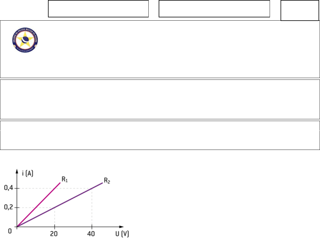 <p>COLÉGIO DA POLÍCIA MILITAR DO PARANÁ</p><p>“CEL PM FELIPPE DE SOUSA MIRANDA”</p><p>DIREÇÃO PEDAGÓGICA</p><p>Nome:____________________________________________________ Série: 2 º ano Turma: _____</p><p>Data: ___/___/_____ Professor: Murilo Valor: 0,5 Nota: _____</p><p>Lista de exercícios</p><p>Orientações:</p><p>-Todas as questões devem conter as justificativas, equações e cálculos que o levaram à resposta final, sem esses (as) a</p><p>resposta será invalidada;</p><p>-A resolução desta lista deverá ser entregue por meio desta própria lista impressa ou em folha de caderno sem picotes e</p><p>devidamente identificada.</p><p>Conteúdos:</p><p>-Leis de Ohm;</p><p>-Potência e consumo de energia elétrica;</p><p>-Associação de resistores em circuitos elétricos.</p><p>1. Observe o gráfico seguinte.</p><p>O comportamento de R1 e R2 não se altera para</p><p>valores de ddp até 100 V. Ao analisar esse gráfico,</p><p>um aluno concluiu que, para valores abaixo de</p><p>100 V,</p><p>I. a resistência de cada um dos condutores é</p><p>constante, isto é, eles são ôhmicos;</p><p>II. o condutor R1 tem resistência elétrica maior que</p><p>o condutor R2;</p><p>III. ao ser aplicada uma ddp de 80 V aos extremos</p><p>de R2, nele passará uma corrente de 0,8 A.</p><p>Quais as conclusões corretas?</p><p>a. Apenas I e III</p><p>b. Apenas II</p><p>c. Apenas II e III</p><p>d. Apenas I</p><p>e. Todas</p><p>2. Um resistor ôhmico, quando submetido a uma</p><p>ddp de 40 V, é atravessado por uma corrente</p><p>elétrica de intensidade 20 A. Quando a corrente</p><p>que o atravessa for igual a 4 A, a ddp, em volts,</p><p>nos seus terminais será:</p><p>a) 8 d) 20</p><p>b) 12 e) 30</p><p>c) 16</p><p>3. Num trecho de um circuito, um fio de cobre é</p><p>percorrido por uma corrente elétrica de intensidade</p><p>i, quando aplicada uma ddp U. Ao substituir esse</p><p>fio por outro, também de cobre, de mesmo</p><p>comprimento, mas com o diâmetro duas vezes</p><p>maior, verifica-se que a intensidade da nova</p><p>corrente elétrica:</p><p>a) permanece constante</p><p>b) se reduz à metade</p><p>c) se duplica</p><p>d) se triplica</p><p>e) se quadruplica</p><p>4. Um forno elétrico, ligado a uma tensão de 120 V,</p><p>é percorrido por uma corrente de 15 A, durante</p><p>6 minutos. Uma lâmpada comum, de 60 W, ligada</p><p>na mesma tensão de 120 V, consumiria a mesma</p><p>energia que o forno num intervalo de tempo, em</p><p>horas, igual a:</p><p>a) 1,0 d) 4,0</p><p>b) 2,0 e) 5,0</p><p>c) 3,0</p><p>N° ______</p><p>FÍSICA 2º TRIMESTRE</p><p>5. Uma jovem mudou-se da cidade do Rio de</p><p>Janeiro para a capital de Pernambuco. Ela levou</p><p>consigo um chuveiro elétrico, cuja potência</p><p>nominal é de 4 400 W, que funcionava</p><p>perfeitamente quando ligado à rede elétrica do Rio</p><p>de Janeiro, cuja tensão é de 110 V. Ao chegar a</p><p>Recife, ela soube que a tensão da rede elétrica</p><p>local é de 220 V. Para que o chuveiro elétrico</p><p>continue a dissipar, por efeito Joule, a mesma</p><p>potência que era obtida no Rio de Janeiro, a sua</p><p>resistência elétrica deve ser:</p><p>a) diminuída em 50%</p><p>b) mantida inalterada</p><p>c) duplicada</p><p>d) triplicada</p><p>e) quadruplicada</p><p>6. Um resistor dissipa o equivalente a 1 kWh,</p><p>quando acionado por uma ddp de 120 V e ligado por</p><p>4 minutos. A resistência, em W, do resistor é</p><p>a. 9,60</p><p>b. 1,96</p><p>c. 0,69</p><p>d. 0,96</p><p>7. A figura representa um trecho de um circuito</p><p>elétrico em que a diferença de potencial entre os</p><p>pontos A e B vale 12 V.</p><p>O valor da intensidade da corrente elétrica i, em</p><p>ampères, e a resistência elétrica do resistor R, em</p><p>ohms, valem, respectivamente,</p><p>a. 2,0 e 6,0.</p><p>b. 4,0 e 2,0.</p><p>c. 6,0 e 2,0.</p><p>d. 6,0 e 4,0.</p><p>8. Ligando quatro lâmpadas de características</p><p>idênticas, em série, com uma fonte de força</p><p>eletromotriz de 220 V, é correto afirmar que a</p><p>diferença de potencial elétrico em cada lâmpada,</p><p>em volts, vale</p><p>a. 55</p><p>b. 110</p><p>c. 220</p><p>d. 330</p><p>e. 880</p><p>9. Um enfeite de árvore de natal contém 30</p><p>lâmpadas associadas em série, cada uma com uma</p><p>resistência elétrica de 5 Ω. Ligam-se os terminais do</p><p>conjunto em uma tomada que fornece uma tensão</p><p>total de 120 V. Nesse caso, a corrente elétrica que</p><p>atravessa cada lâmpada vale</p><p>a. 0,8 A</p><p>b. 1,2 A</p><p>c. 1,8 A</p><p>d. 24 A</p><p>e. 40 A</p><p>10. A figura representa as resistências elétricas</p><p>ôhmicas de partes do corpo de uma pessoa:</p><p>500Ωpara cada braço, 100Ω para cabeça e</p><p>pescoço, 500 Ω para o abdome e 1 000 Ω para cada</p><p>perna. O coração, representado em vermelho,</p><p>permite a passagem de corrente elétrica.</p><p>a. Indique o par de pontos que, ao ser conectado a</p><p>uma tensão elétrica, não provoque o risco de a</p><p>corrente elétrica afetar o batimento cardíaco.</p><p>Justifique sua resposta.</p><p>b. Suponha que a pessoa da figura esteja com os</p><p>dois pés aterrados (sem isolantes elétricos entre os</p><p>pés e a Terra) e segure com uma das mãos um fio</p><p>elétrico de potencial 300 volts. Calcule, para essa</p><p>situação, a corrente elétrica, em ampères, que</p><p>atravessa o coração dessa pessoa.</p>