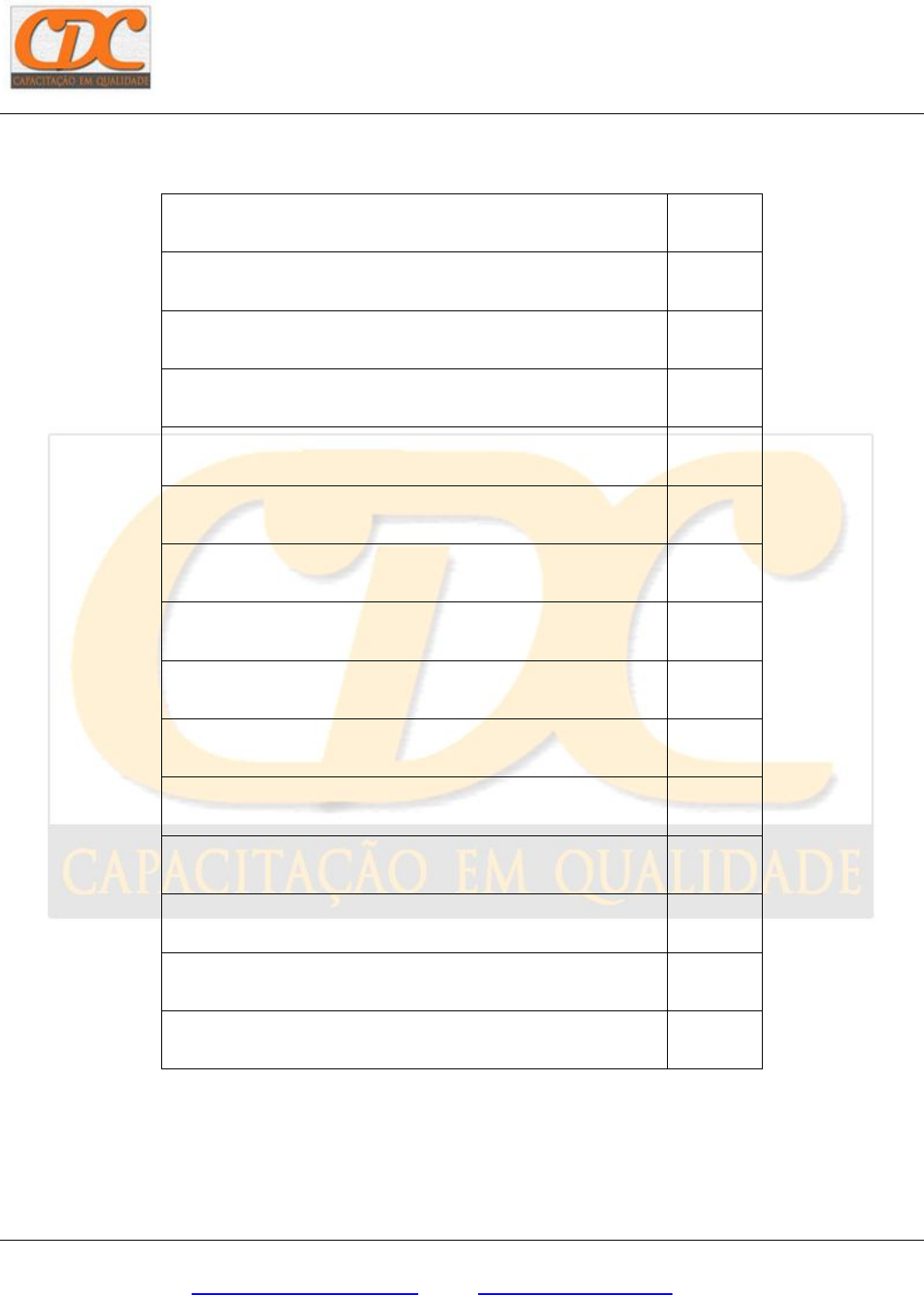 APOSTILA TEÓRICA Contagem / MG (31)30328340 (31)84981643 - Rio de Janeiro (21)3684-1230 (21)79744951 (21)9949-1429 contato@cdccursos.com.br - www.cdccursos.com.br 1 ÍNDICE Introdução 02 Terminologia 05 Simbologia 19 Processos 61 Consumíveis 83 Metalurgia 95 Controle de Deformações 104 Metais de Base 117 Ensaios Mecânicos 120 Ensaios Não Destrutivos 124 Qualificações 131 Instrumental e Técnicas de Medidas 139 Documentos Técnicos 153 Proteção 161 Gabarito 165 APOSTILA TEÓRICA Contagem / MG (31)30328340 (31)84981643 - Rio de Janeiro (21)3684-1230 (21)79744951 (21)9949-1429 contato@cdccursos.com.br - www.cdccursos.com.br 2 INTRODUÇÃO 1 – Um Inspetor de Soldagem Nível 1 foi indicado para participar de uma qualificação de um procedimento de soldagem. Das alternativas apresentadas abaixo, marque a única que realmente representa a sua atuação. (a) Interpretar os requisitos da norma técnica, no que se refere à soldagem, que conduzirá a qualificação; (b) Analisar os resultados dos ensaios não destrutivos realizados durante a qualificação; (c) Acompanhar a execução das peças de teste; (d) Aprovar a qualificação ao final de todo o processo; (e) Testemunhar a execução do ensaio mecânico de tração. 2 – Durante a soldagem de uma junta de um determinado equipamento, qual das alternativas abaixo não condiz com a atuação de um Inspetor de Soldagem Nível 2. (a) Verificar a atuação dos soldadores na execução dos serviços; (b) Verificar se a Especificação de Procedimento de Soldagem, que está sendo utilizada, está adequada ao serviço que se encontra em execução; (c) Verificar se o soldador, que está executando a soldagem, está qualificado para a realização do serviço; (d) Emitir laudo do ensaio não destrutivo Líquido Penetrante executado na face do chanfro antes do início da soldagem; (e) Verificar se os equipamentos de soldagem utilizados estão de acordo com o especificado. 3 – Após a finalização da soldagem de uma junta de topo, um Inspetor de Soldagem Nível 1 foi chamado para acompanhar a realização de um tratamento térmico. Assinale a única atividade que não condiz com a sua atuação. (a) Verificar se a execução do tratamento térmico está sendo conduzido de acordo com os procedimentos de tratamento térmico e as instruções de fabricação e /ou execução; (b) Permitir que o tratamento térmico seja realizado após a soldagem, independentemente do resultado dos ensaios não destrutivos; (c) Verificar se os ensaios não destrutivos realizados após o tratamento térmico foram realizados por profissionais qualificados. (d) O Inspetor de Soldagem Nível 1 não pode verificar se o tratamento térmico está sendo executado de acordo com as normas e especificações técnicas, tendo em vista que esta atividade só pode ser realizada por um Inspetor de Soldagem Nível 2. (e) Não é obrigatória a presença do Inspetor de Soldagem Nível 1 durante a realização do tratamento térmico. 4 – Dentre as muitas atividades existentes durante a qualificação de um procedimento de soldagem, assinale a única atividade que um Inspetor de Soldagem Nível 2 não pode realizar. (a) Realizar os dois ensaios de tração transversal; (b) Testemunhar a execução do ensaio de impacto; (c) Avaliar os resultados de todos os ensaios mecânicos em comparação com os critérios estabelecidos pelas normas técnicas; (d) Emitir laudo do ensaio macrográfico realizado; (e) Testemunhar as condições de preparação dos corpos-de-prova. APOSTILA TEÓRICA Contagem / MG (31)30328340 (31)84981643 - Rio de Janeiro (21)3684-1230 (21)79744951 (21)9949-1429 contato@cdccursos.com.br - www.cdccursos.com.br 3 5 – Correlacionando a atuação do Inspetor de Soldagem Nível 2 com os ensaios mecânicos que fazem parte da qualificação de um procedimento de soldagem, marque a alternativa incorreta. (a) O Nível 2 pode testemunhar a execução do ensaio de dobramento; (b) O Nível 2 está autorizado a determinar o ensaio de dureza por meio de medidores portáteis; (c) O Nível 2 pode emitir laudos dos corpos-de-prova referentes aos ensaios macrográficos; (d) O Nível 2 pode testemunhar as condições de preparação de todos os corpos-de-prova confeccionados para a qualificação em questão; (e) O Nível 2 pode testemunhar a execução do ensaio de tração. 6 – Quando se refere aos temas “Consumíveis de Soldagem” e “Material de Base”, indique qual das alternativas abaixo é de responsabilidade única do Inspetor de Soldagem Nível 2: (a) Contatar o Setor de Vendas do fabricante do material de base (aço) para solicitar o material de base necessitado; (b) Através da comparação entre marcações e documentos aplicáveis, checar se o material de base comprado foi exatamente o especificado; (c) Verificar se os consumíveis de soldagem estão sendo corretamente armazenados, conforme recomendação do fabricante ou outros documentos aplicáveis; (d) Verificar se os consumíveis de soldagem recebidos na fábrica estão corretos, comparando entre os certificados de qualidade dos consumíveis e os requisitos das normas e especificações técnicas dos produtos; (e) Verificar se, dependendo do teor da umidade relativa do ar, haverá a necessidade de aumentar o tempo de ressecagem dos eletrodos revestidos básicos, conforme estabelecido no catálogo do revendedor do consumível. 7 – Em relação ao Termo de Conduta e Ética que regem o Sistema Nacional de Qualificação e Certificação de Inspetores de Soldagem, marque a alternativa incorreta. (a) Caso um dos itens que constam no Termo de Conduto e Ética não seja respeitado, a penalidade que será imposta ao Inspetor de Soldagem é a revogação de sua certificação; (b) O Certificado obtido pelo Inspetor de Soldagem só será válido se o profissional atender os critérios exigidos pela Norma NBR 14842; (c) Em nenhuma hipótese, tanto os Inspetores de Soldagem quanto os Empregadores, não podem