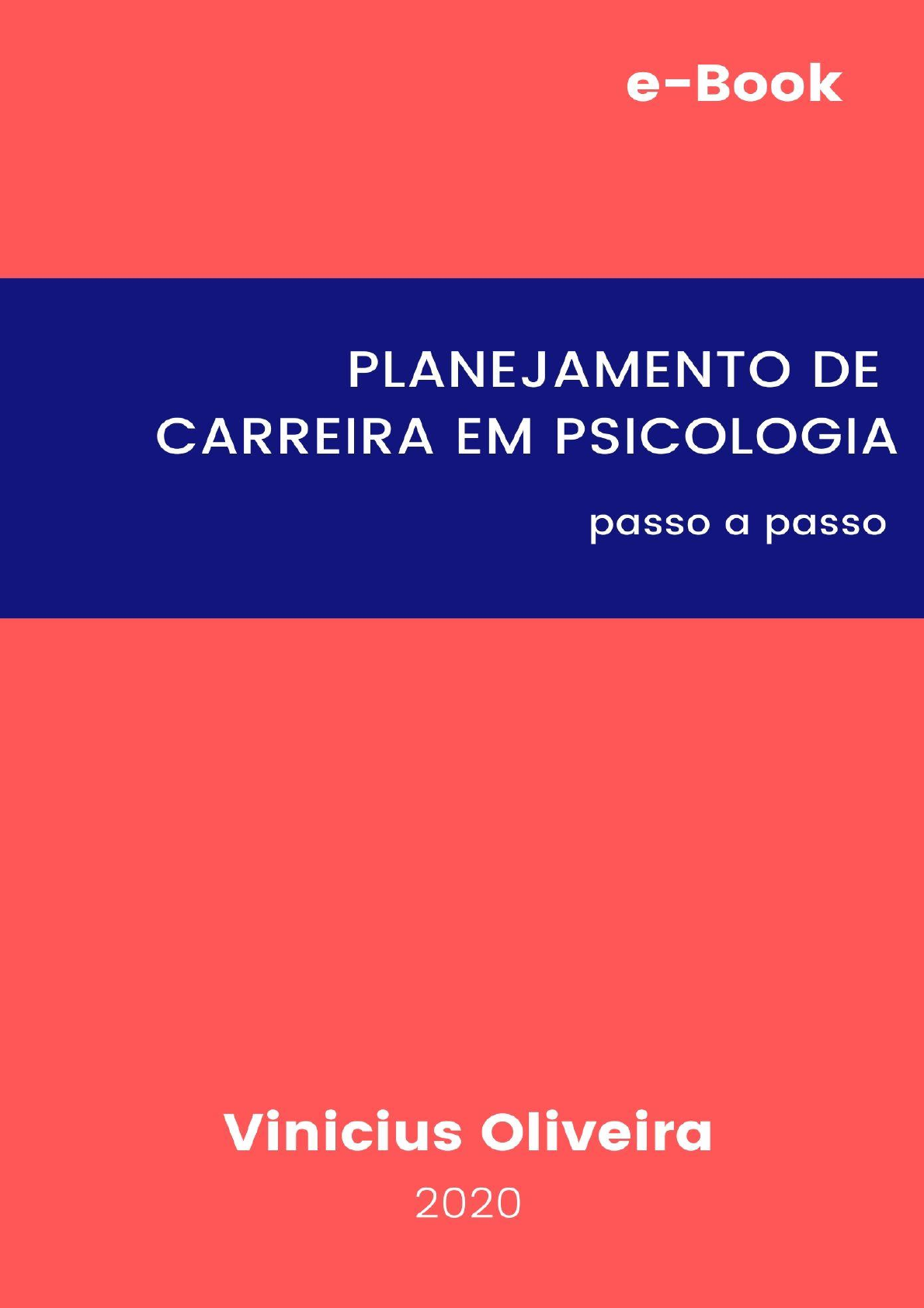 <p>CLIQUE @VINICIUSOLIVEIRAPROF</p><p>https://www.instagram.com/viniciusoliveiraprof/</p><p>CLIQUE @VINICIUSOLIVEIRAPROF</p><p>SOBRE O E-BOOK</p><p>Planejamento de Carreira em Psicologia: passo a passo</p><p>Este material é fruto de um minicurso ministrado pelo professor</p><p>Vinicius Oliveira, por isso cada capítulo é constituído por um texto</p><p>extraído de uma videoaula.</p><p>Ressalto que este material é indicado para Planejamento de</p><p>Carreira em Psicologia. Mas nada impede de ser replicado para</p><p>carreiras diversas. Use a vontade e distribua GRATUITAMENTE.</p><p>Objetivo do e-Book e das Aulas</p><p>Este material tem como objetivo ajudar a você, jovem,</p><p>profissional da psicologia ou estudante da área a traçar uma rota de</p><p>onde você está até onde você quer chegar na vida profissional.</p><p>ÍNDICE</p><p>https://www.instagram.com/viniciusoliveiraprof/</p><p>CLIQUE @VINICIUSOLIVEIRAPROF</p><p> AULA DE APRESENTAÇÃO</p><p> AULA 1 - AS CINCO QUESTÕES</p><p> AULA 2 – COMO E ONDE ESTOU?</p><p> AULA 3 – MEU OBJETIVO PROFISSIONAL</p><p> AULA EXTRA– ESTUDOS, SUPERVISÃO E TERAPIA</p><p> AULA 4 – PRIMEIROS PLANOS</p><p> ALGUNS INSIGHTS QUE AJUDAM NA CARREIRA</p><p> PRIMEIRO INSIGHT</p><p> SEGUNDO INSIGHT</p><p> TERCEIRO INSIGHT</p><p> QUARTO INSIGHT</p><p> QUINTO INSIGHT</p><p> SEXTO INSIGHT</p><p> GUIA PASSO A PASSO PARA PLANEJAR O INÍCIO DA SUA</p><p>CARREIRA EM PSICOLOGIA</p><p>https://www.instagram.com/viniciusoliveiraprof/</p><p>CLIQUE @VINICIUSOLIVEIRAPROF</p><p>SOBRE O AUTOR</p><p>Vinicius Oliveira é Professor</p><p>Universitário, Mestre em Educação</p><p>pela Unesp (2017), Psicólogo (2014),</p><p>Orientador Profissional e de Carreira.</p><p>Atualmente cursa Doutorado em</p><p>Psicologia pela UEM. Orienta</p><p>pesquisas e atividades de extensão na</p><p>área de orientação profissional e de</p><p>carreira, planejamento e</p><p>desenvolvimento de carreira. É supervisor de estágio em orientação</p><p>profissional e de carreira.</p><p>Receba mais conteúdos do professor Vinícius pelas Redes Sociais</p><p>@viniciusoliveiraprof</p><p>youtube.com/violiveirapp</p><p>Partilhar a Psicologia</p><p>https://www.instagram.com/viniciusoliveiraprof/</p><p>https://www.instagram.com/viniciusoliveiraprof/</p><p>https://www.youtube.com/user/violiveirapp/videos</p><p>https://t.me/partilharapsicologia</p><p>CLIQUE @VINICIUSOLIVEIRAPROF</p><p>AULA DE APRESENTAÇÃO</p><p>Agradeço muito por você ter chego até aqui, isso significa que</p><p>você é da área da psicologia ou de áreas afins, ou pelo menos gosta</p><p>dessa área, então desde já muito obrigado por estar aqui. Esse</p><p>material tem muito a acrescentar ao desenvolvimento da sua carreira.</p><p>Irei te ajudar através de um passo a passo a sair de onde você</p><p>está a pensar em um planejamento e uma organização para a sua</p><p>carreira; para você definir seus objetivos e tentar implementar o mais</p><p>rápido que você conseguir, e falo isso sendo você desde estudante a</p><p>um(a) profissional no início da carreira.</p><p>Na maioria dos casos muitos de nós nos sentimos perdidos no</p><p>início da nossa carreira. Eu já passei por isso, e eu tive algumas</p><p>pessoas que me ajudaram no início da minha carreira e, nesse</p><p>momento, eu gostaria de ser essa pessoa na tua vida e te ajudar.</p><p>Dessa forma, eu gostaria de te dizer que se você está aqui, então você</p><p>precisa saber qual é o objetivo desse material.</p><p>O objetivo é te ajudar a entender onde é que você está na sua</p><p>carreira, seja você estudante ou profissional, para assim, poder</p><p>identificar alguns objetivos para a sua carreira, o que você quer, suas</p><p>metas, suas ambições, seus interesses. Seguindo essa ideia, nós</p><p>precisamos falar um pouquinho sobre vida pessoal e sobre propósito</p><p>de vida; sobre quem você é, quem você pretende ser e qual é o</p><p>percurso que você precisa seguir para chegar onde você almeja.</p><p>https://www.instagram.com/viniciusoliveiraprof/</p><p>CLIQUE @VINICIUSOLIVEIRAPROF</p><p>Muitas vezes, nós precisamos entender que entre o que nós</p><p>somos e o que nós queremos ser, existem muitos obstáculos e</p><p>inúmeras intercorrências. Nesse sentido, o planejamento é necessário;</p><p>e existe um passo a passo para que a gente consiga alcança-lo. Digo</p><p>isso, pois, sou prova viva disso; eu planejei muito bem a minha carreira</p><p>para alcançar alguns dos meus objetivos e tenho muitos outros ainda</p><p>pela frente. Mas desses que eu consegui conquistar irei compartilhar</p><p>com você ao longo dessa jornada. O principal deles é que eu consegui</p><p>sair do papel de aluno de psicologia para o papel de professor de</p><p>psicologia na mesma universidade. O caminho não foi fácil, mas foi</p><p>planejado.</p><p>Resumindo: eu quero te ajudar a encontrar um caminho para</p><p>chegar aos objetivos profissionais que você tem, e se você não tem</p><p>quero te ajudar a definir esses objetivos.</p><p>No último tópico desse e-book, tem um material-base que eu</p><p>irei que material contém cinco perguntinhas básicas que são: “o que”,</p><p>“por que”, “como”, “quando” e “onde”. Talvez você já tenha tido</p><p>acesso a esse material que é um guia passo a passo para planejar o</p><p>início da minha carreira, e eu irei comentar esse guia e ajudar vocês</p><p>através das aulas com atividades.</p><p>Algo que gostaria de ressaltar é que eu quero você muito mais</p><p>fazendo as atividades propostas do que assistindo os vídeos (do</p><p>minicurso). Por esse motivo, alguns vídeos serão um pouco mais</p><p>curtos e outros um pouco mais longos; para que você possa em</p><p>determinados momentos passar mais tempo fazendo do que me</p><p>https://www.instagram.com/viniciusoliveiraprof/</p><p>CLIQUE @VINICIUSOLIVEIRAPROF</p><p>assistindo, e sabe por quê? Porque a carreira não é algo que sai do</p