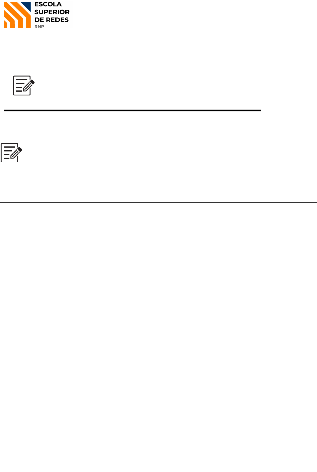 <p>NUV5 – Infraestrutura e Segurança</p><p>com Firewalls Fortinet</p><p>Tarefa 6</p><p>Módulo 6</p><p>Descreva aqui a tarefa:</p><p>(indique páginas, textos e ou ferramentas que o (a) aluno (a) deverá acessar para a realização)</p><p>Tarefa:</p><p>Sua empresa está passando por problemas com o serviço de Internet: diversas obras foram iniciadas na região da</p><p>sede, e regularmente elas causam acidentes e perda de conectividade. Além disso, o tráfego de dados vem crescendo</p><p>bastante nos últimos meses, especialmente com a adoção de serviços VoIP.</p><p>Em virtude disso, seu departamento conseguiu aprovar orçamento para mais dois links de acesso, que foram</p><p>conectados às interfaces port4 e port5 do seu FortiGate. Os dados do link da port4 (provedor 1) são:</p><p>IP interface: 200.222.7.2/29</p><p>IP gateway: 200.222.7.1</p><p>Os dados do link da port5 (provedor 2) são:</p><p>IP interface: 200.225.8.2/29</p><p>IP gateway: 200.225.8.1</p><p>Você precisa implementar as seguintes configurações e documentar sua execução:</p><p>1. Configuração das interfaces de rede para os dois novos provedores.</p><p>2. Implementação de uma interface SD-WAN usando os links dos dois novos provedores. IMPORTANTE: o link</p><p>do provedor 1 tem O DOBRO da banda do provedor 2.</p><p>3. Garantir que todos os pontos de sua rede interna possam acessar a Internet via conexão SD-WAN.</p><p>Ao fim do processo, é uma boa ideia fazer um backup de suas configurações, para que no caso de qualquer problema,</p><p>você possa continuar os próximos exercícios a partir do ponto em que parou.</p><p>Ao fim do processo, é uma boa ideia fazer um backup de suas configurações, para que no caso de qualquer problema,</p><p>você possa continuar os próximos exercícios a partir do ponto em que parou.</p><p>NOTA: Depois de configurar a interface SD-WAN, você pode verificar o que acontece com seu roteamento, editando</p><p>as propriedades de sua VM e desconectando as interfaces-membro da SD-WAN (desmarque a caixa “Connected” em</p><p>cada interface).</p><p>NUV5 – Infraestrutura e Segurança</p><p>com Firewalls Fortinet</p><p>NUV5 – Infraestrutura e Segurança</p><p>com Firewalls Fortinet</p><p>NUV5 – Infraestrutura e Segurança</p><p>com Firewalls Fortinet</p>